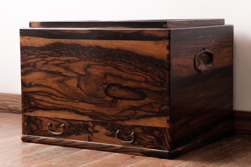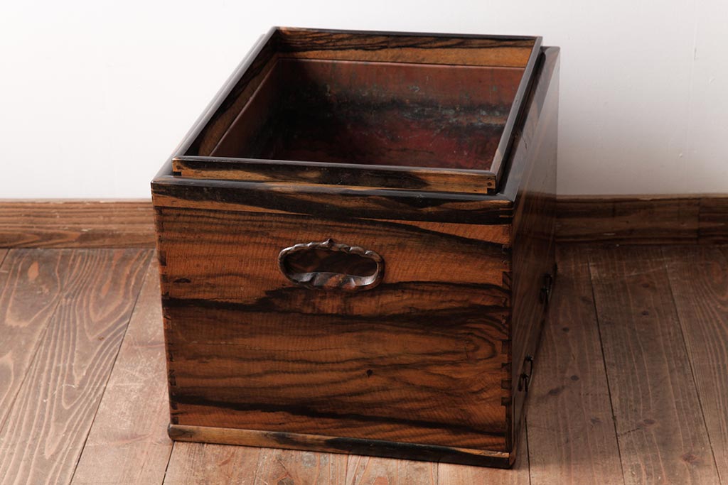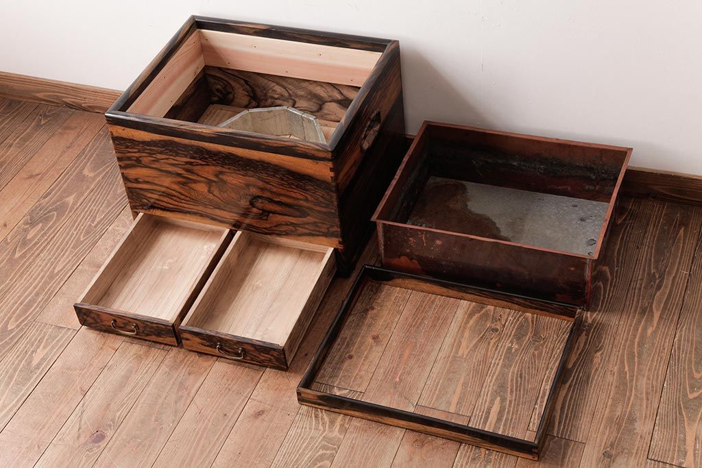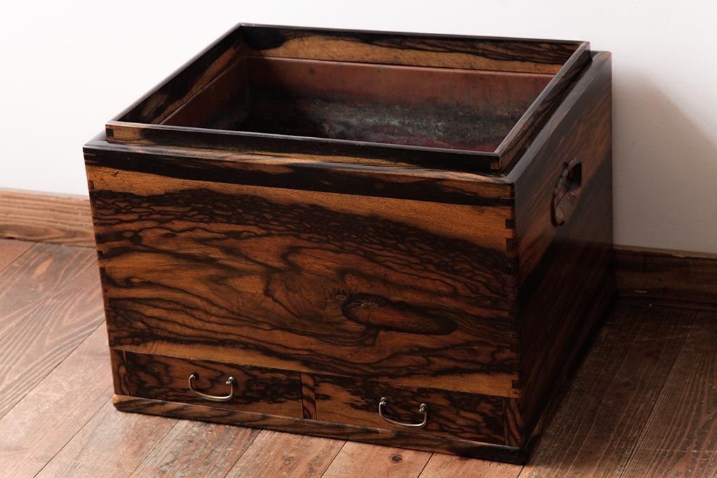 火鉢> 長火鉢 > アンティーク雑貨 和製アンティーク 総黒柿無垢材 高級品 独特の杢目が存在感を放つ火鉢