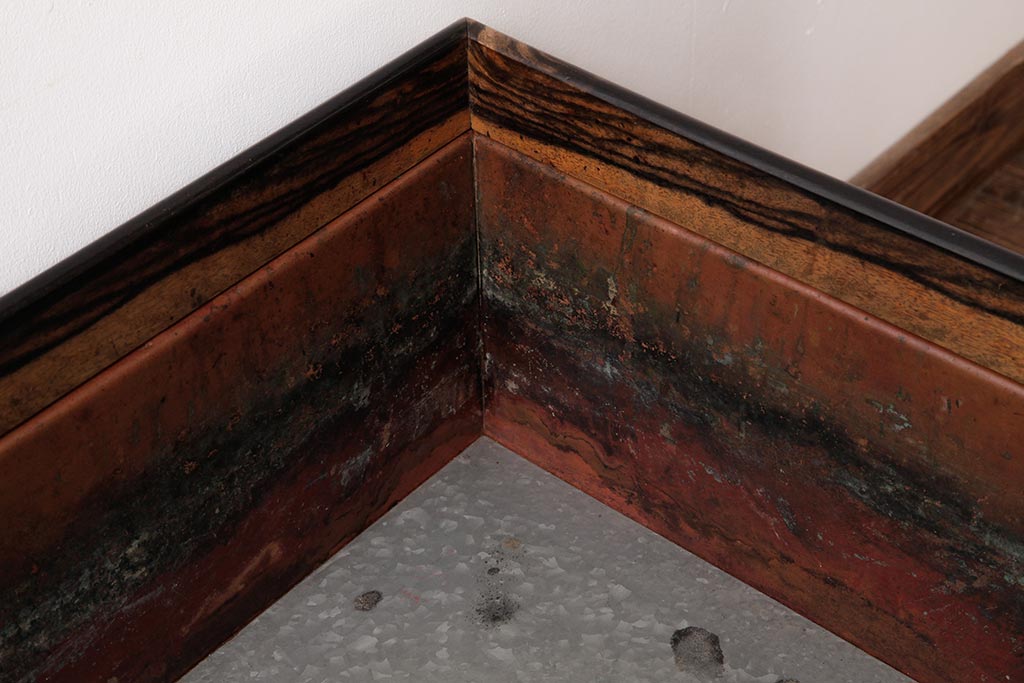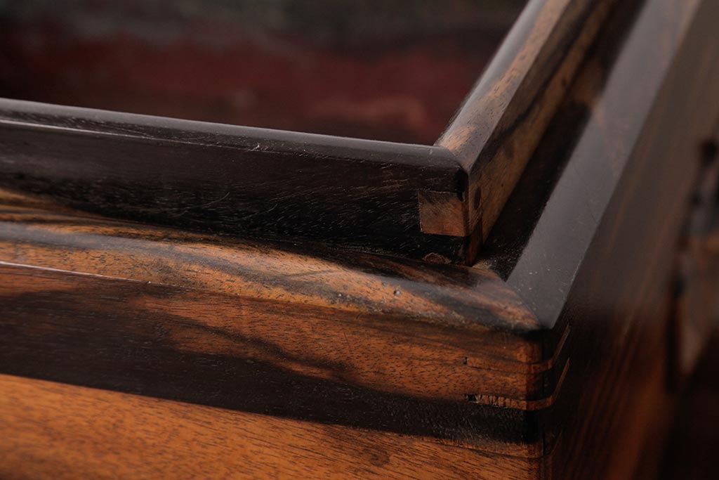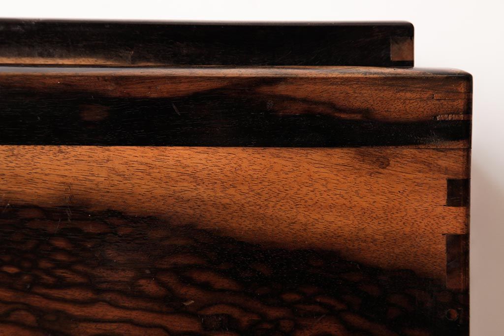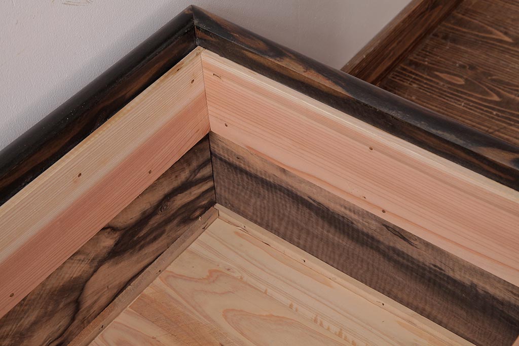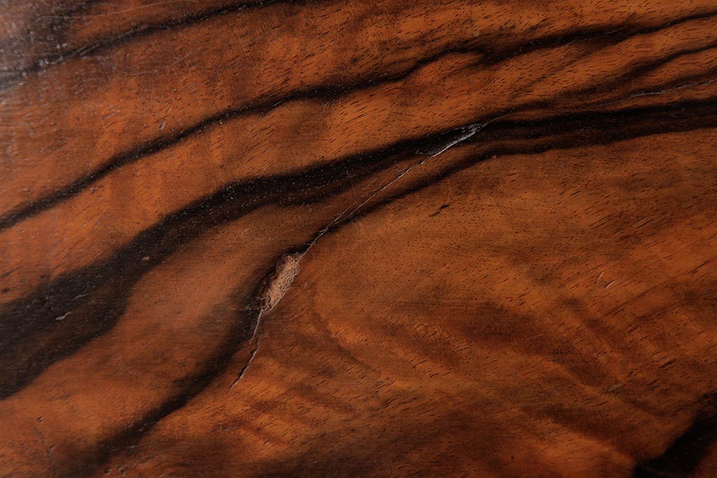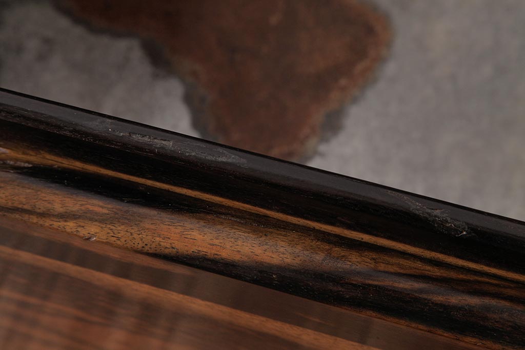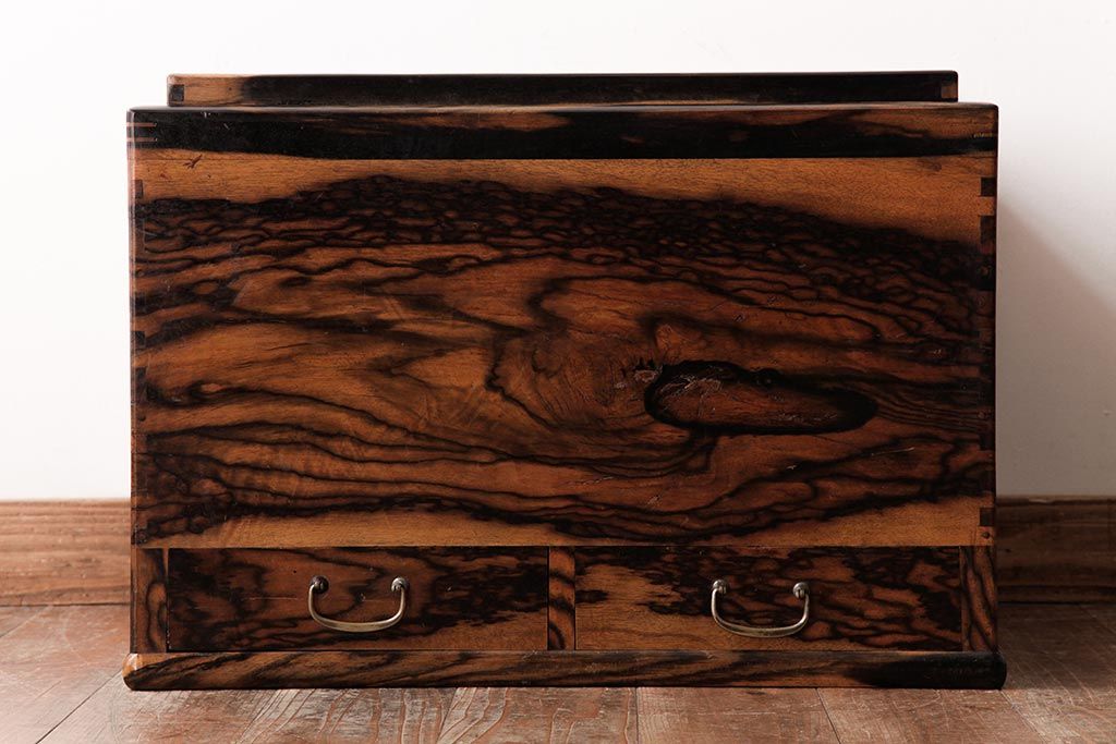 黒い杢目が美しい黒柿の無垢材が使われています。