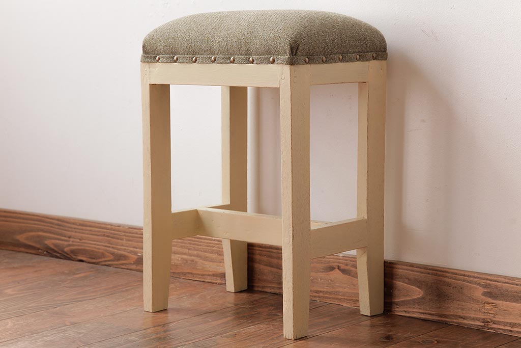 ペイント家具 あたたかなカラーが魅力的なクッションスツール(角スツール、チェア、椅子)