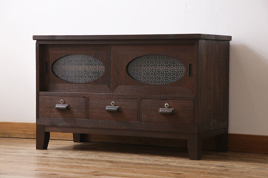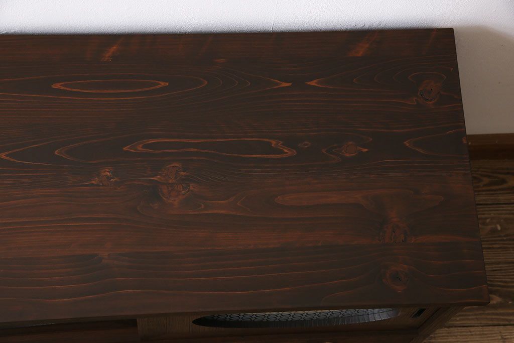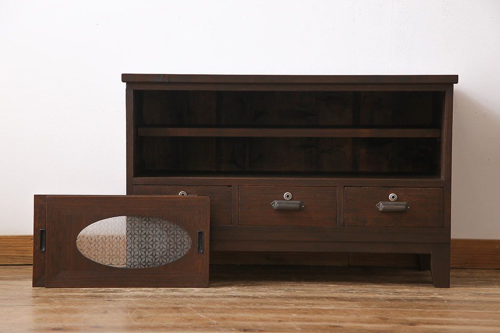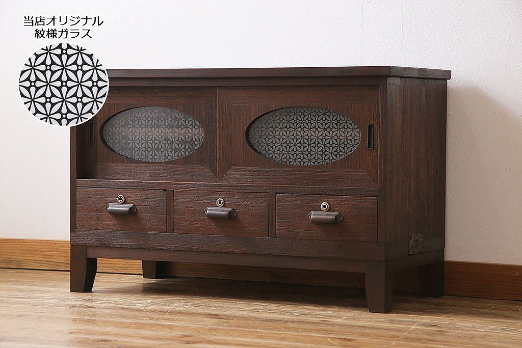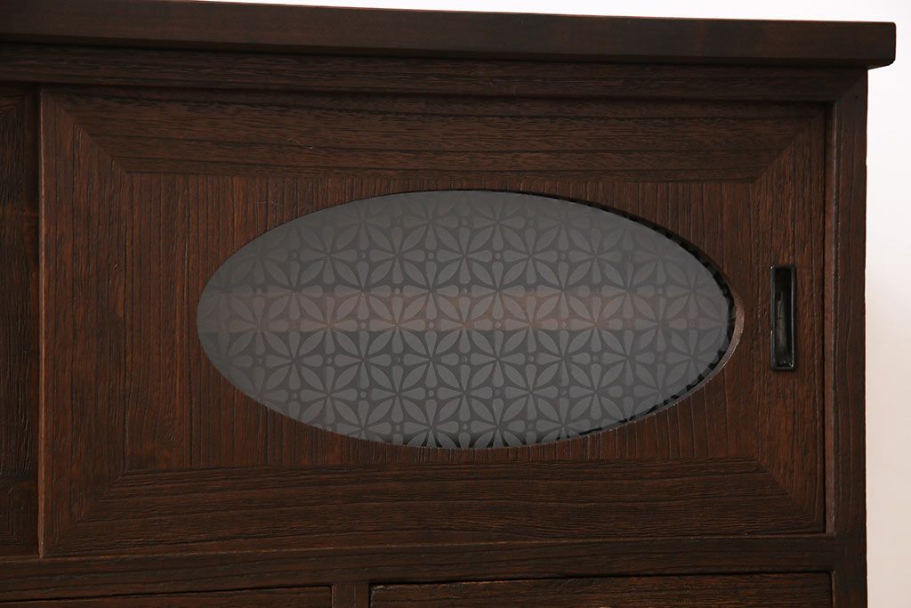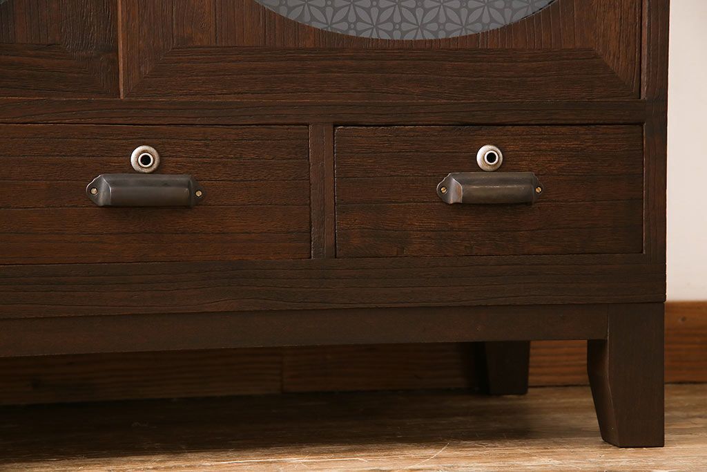 レトロ家具 昭和レトロ 当店オリジナル花菱ガラス 丸窓が目を引くリメイク戸棚(ローボード)