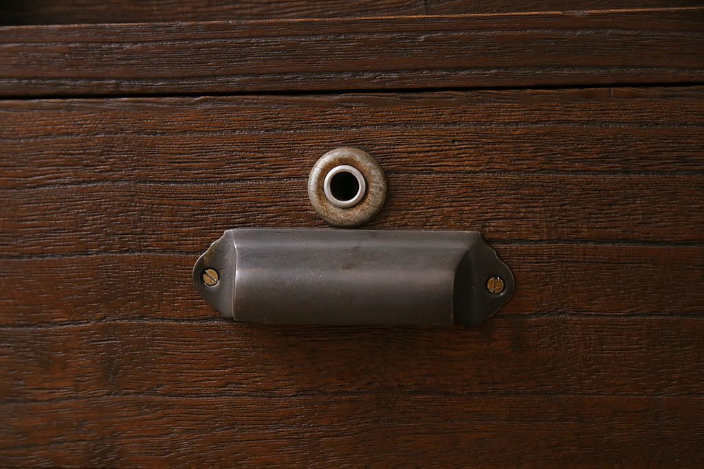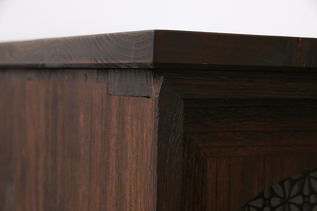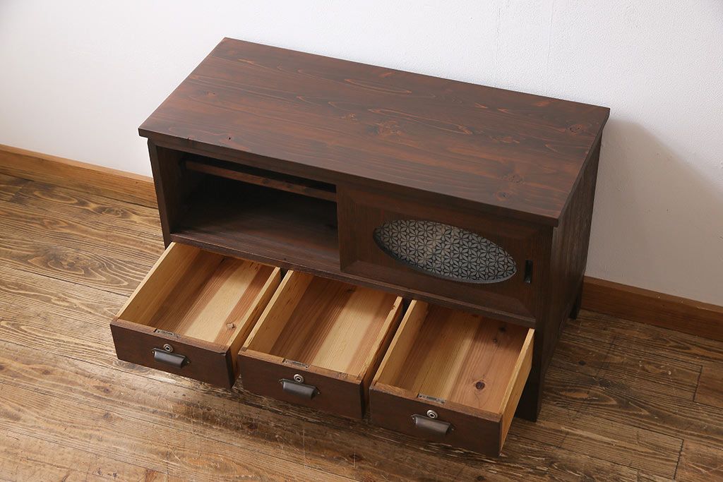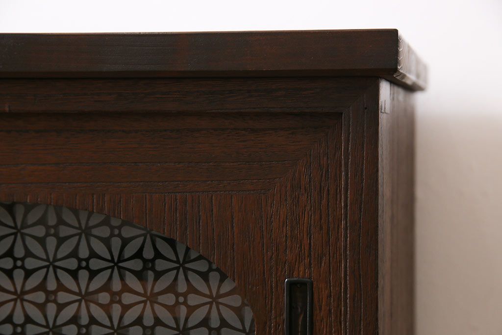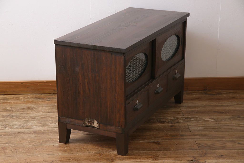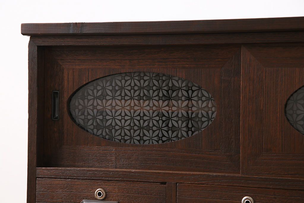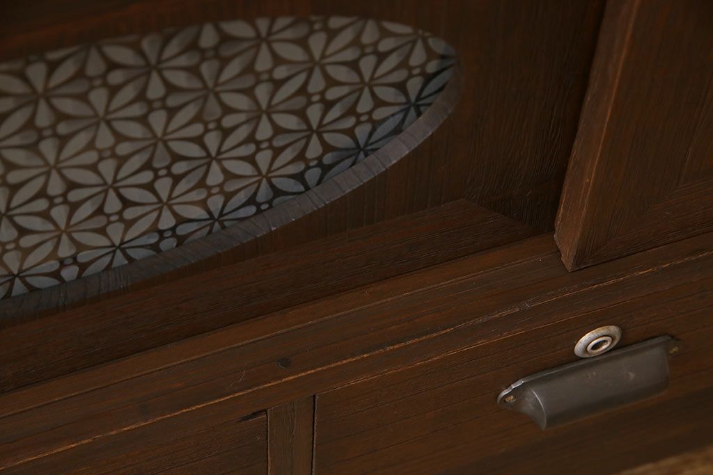 レトロ家具 昭和レトロ 当店オリジナル花菱ガラス 丸窓が目を引くリメイク戸棚(ローボード)