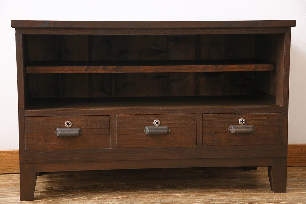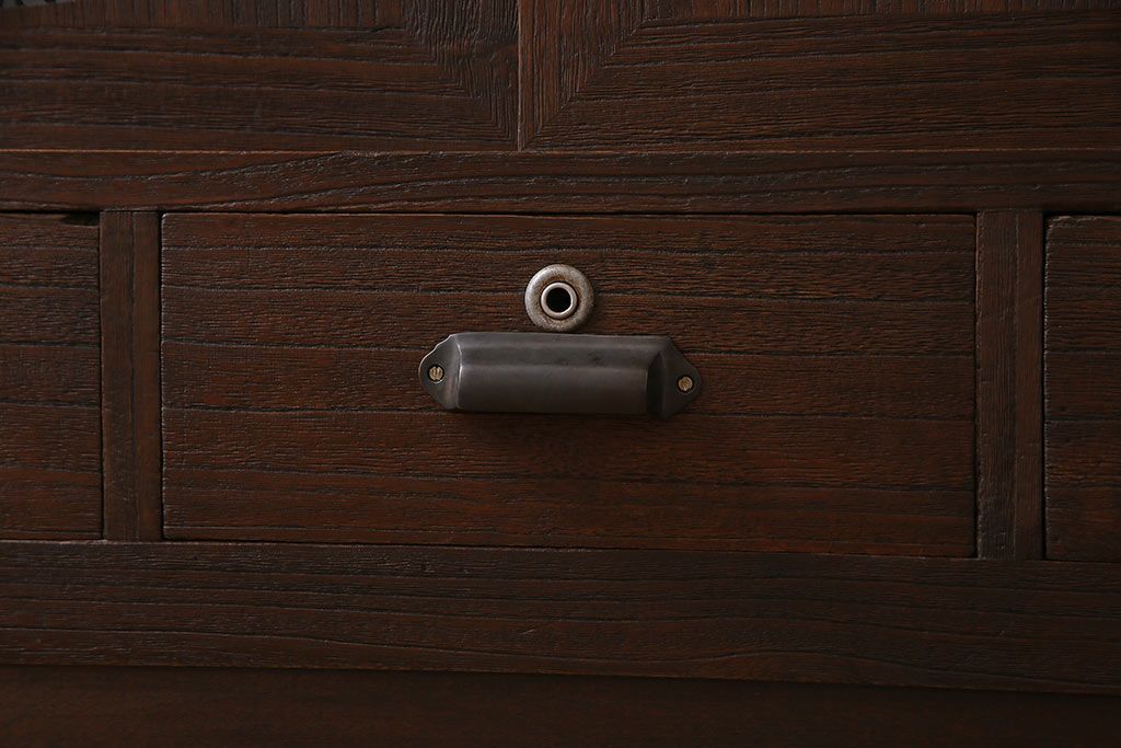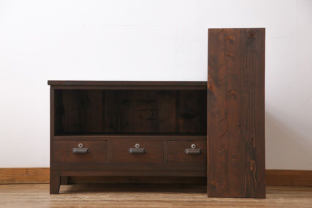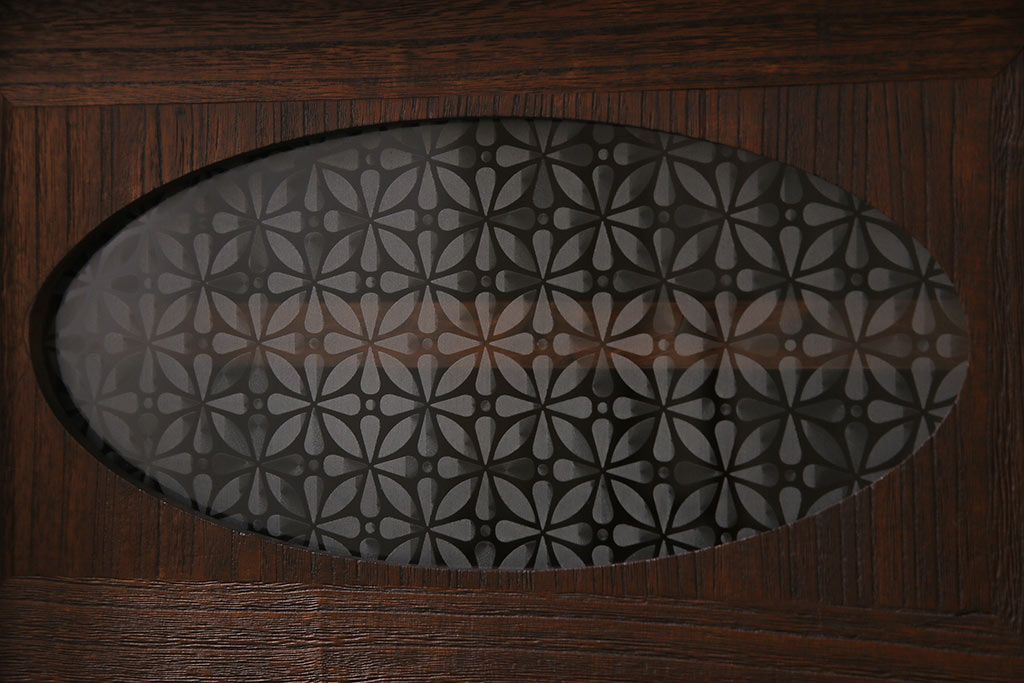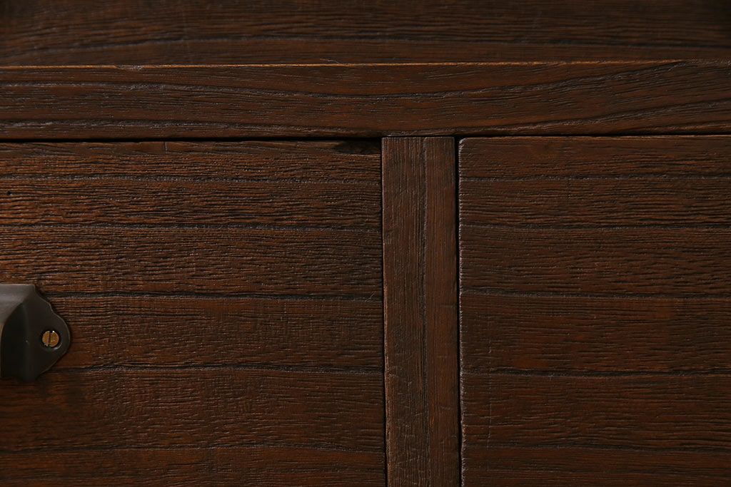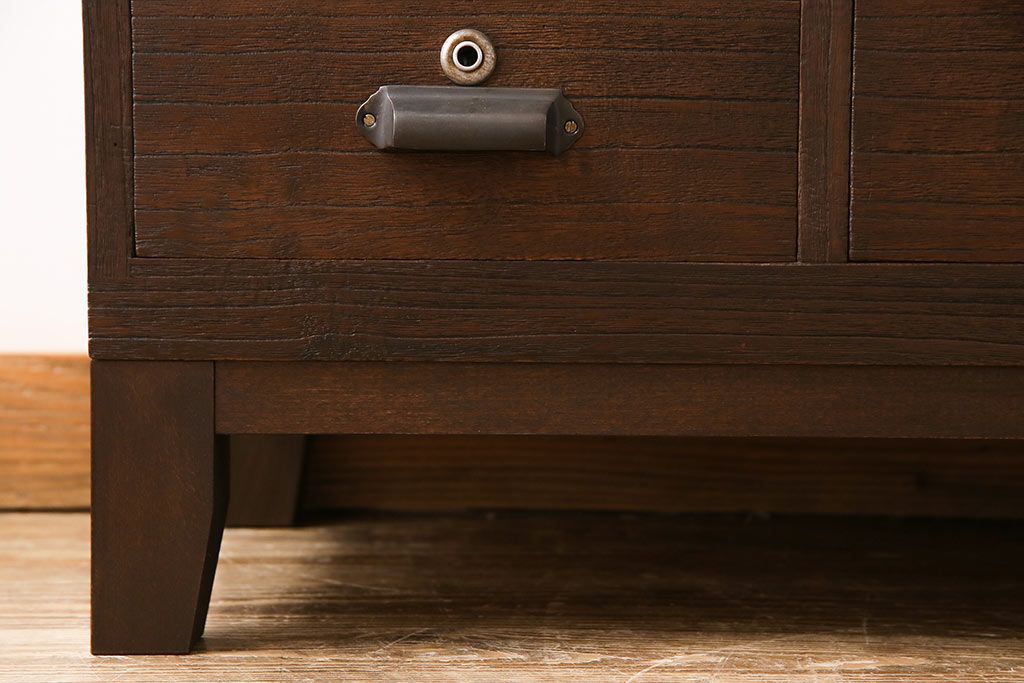 レトロ家具 昭和レトロ 当店オリジナル花菱ガラス 丸窓が目を引くリメイク戸棚(ローボード)