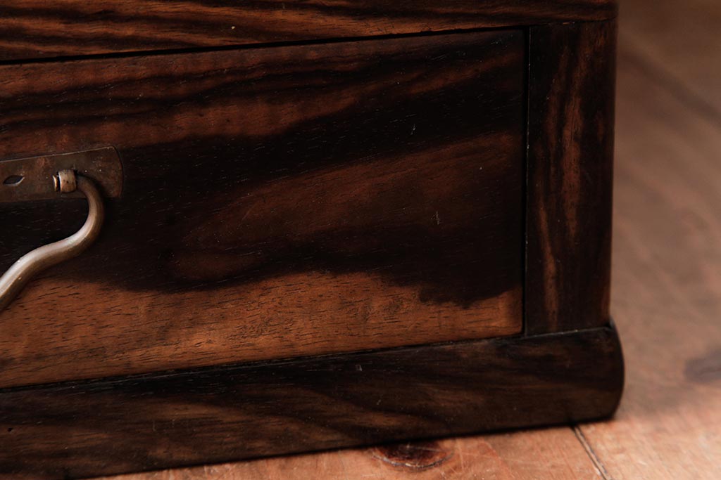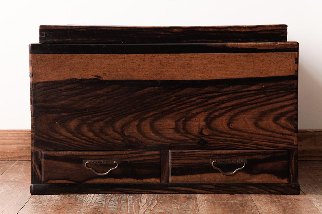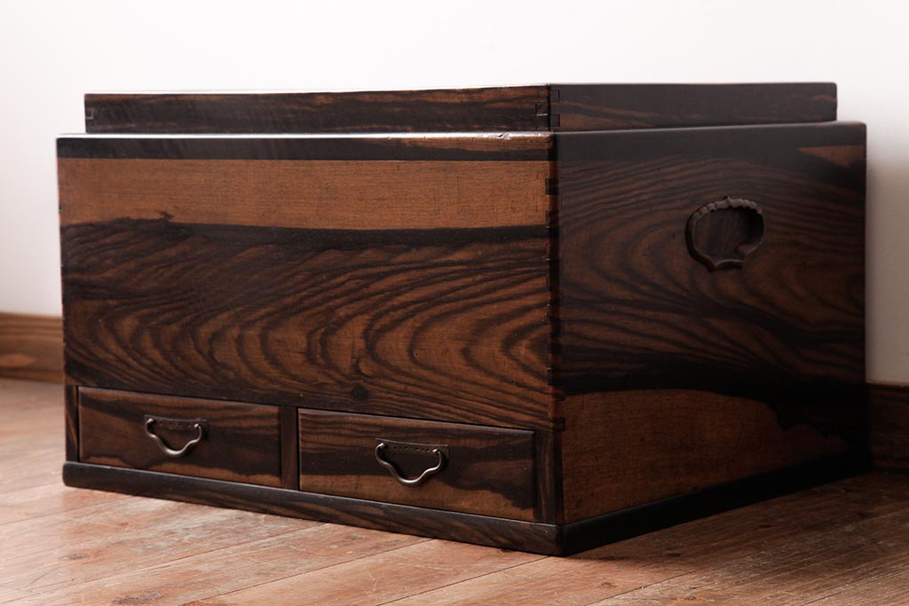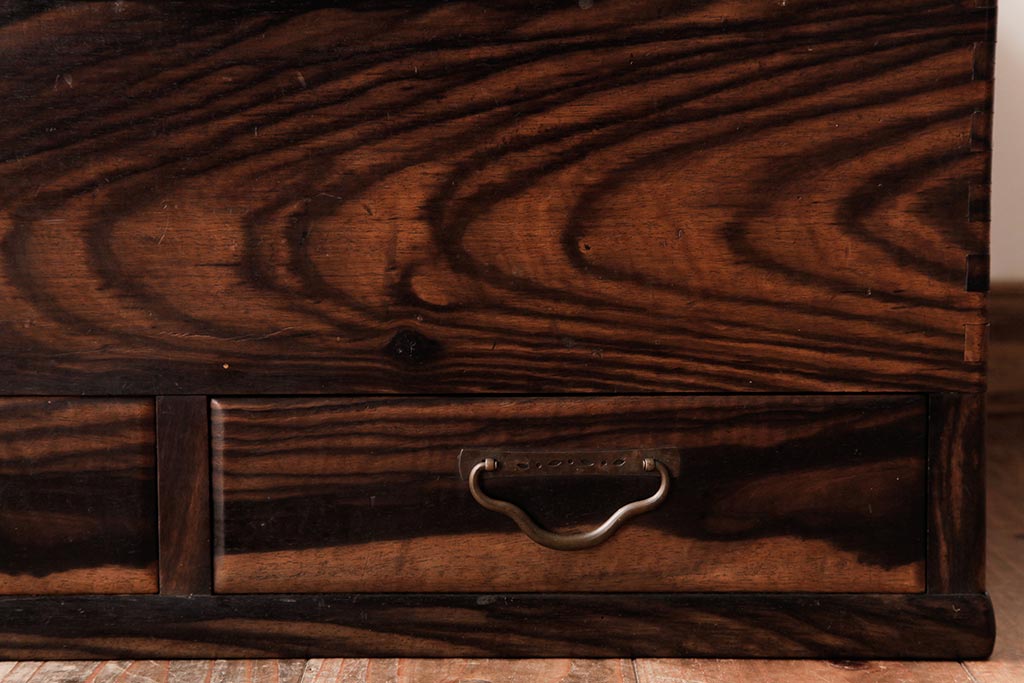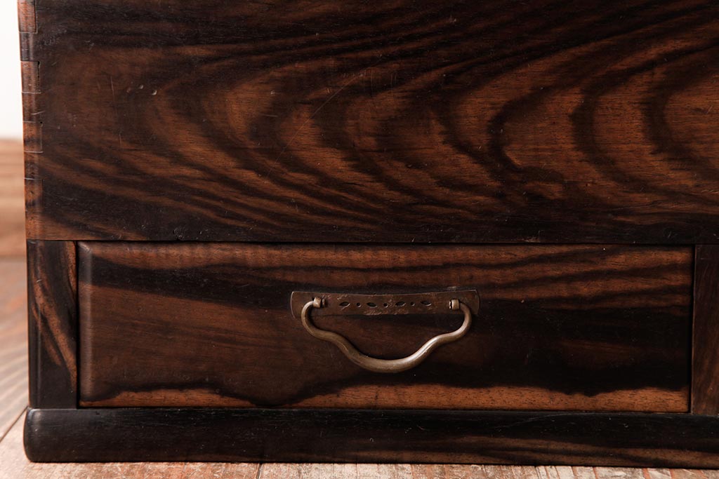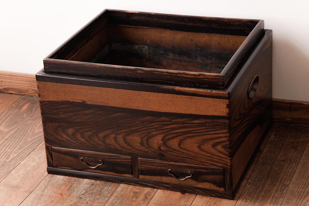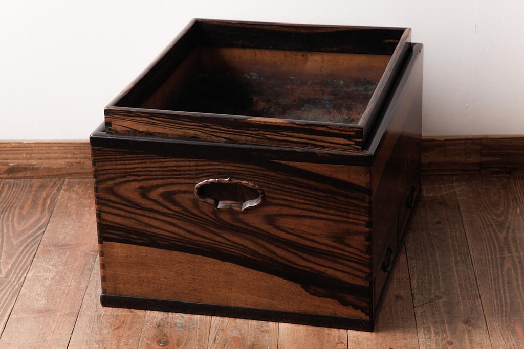 ラフジュ工房> 火鉢> 長火鉢 > アンティーク雑貨 和製アンティーク 総黒柿無垢材 高級品 独特の杢目が存在感を放つ火鉢(1)