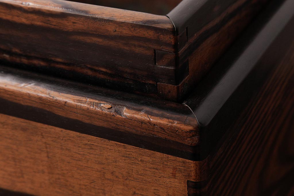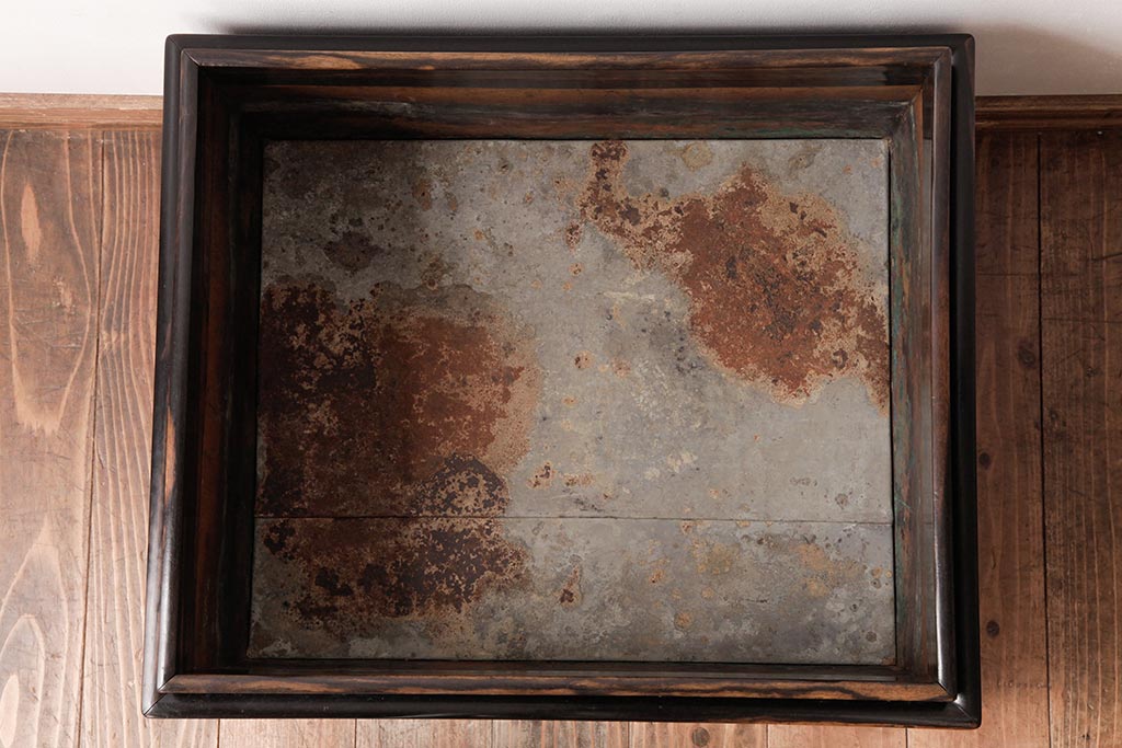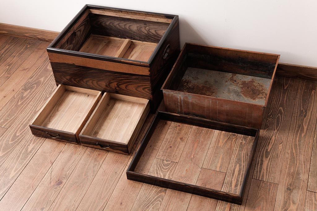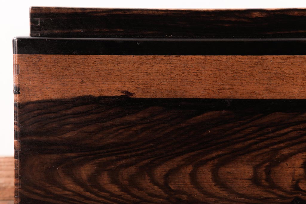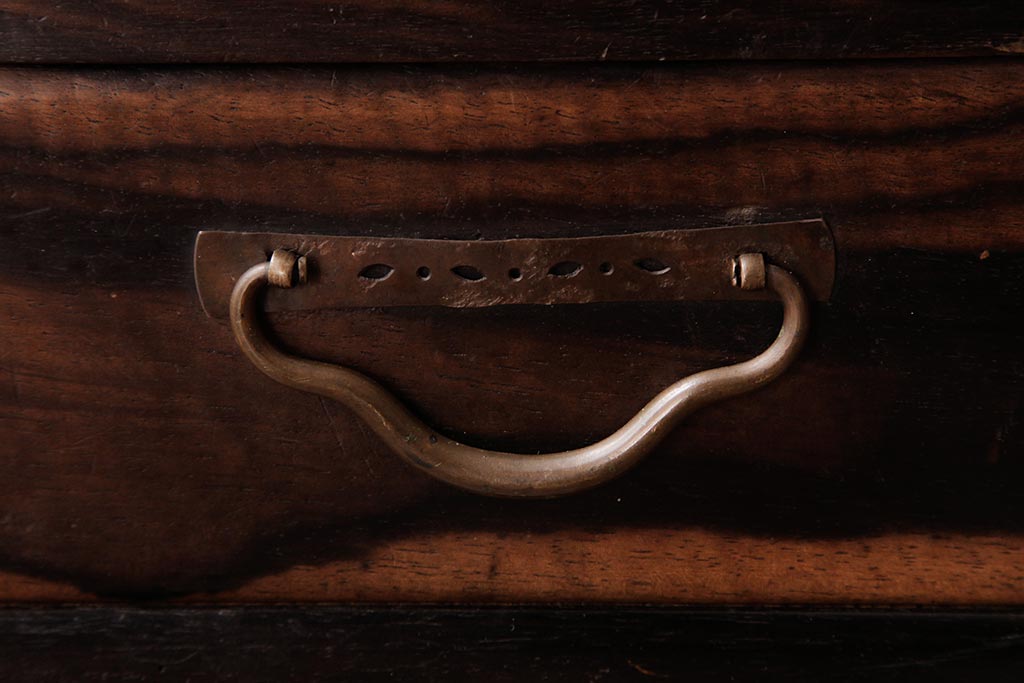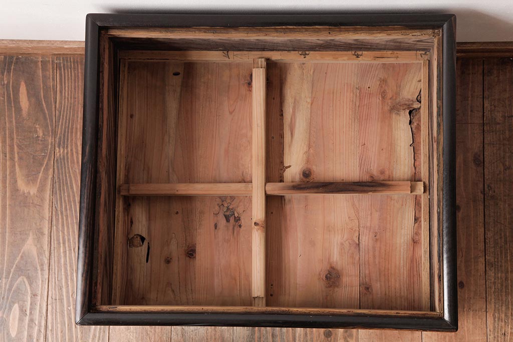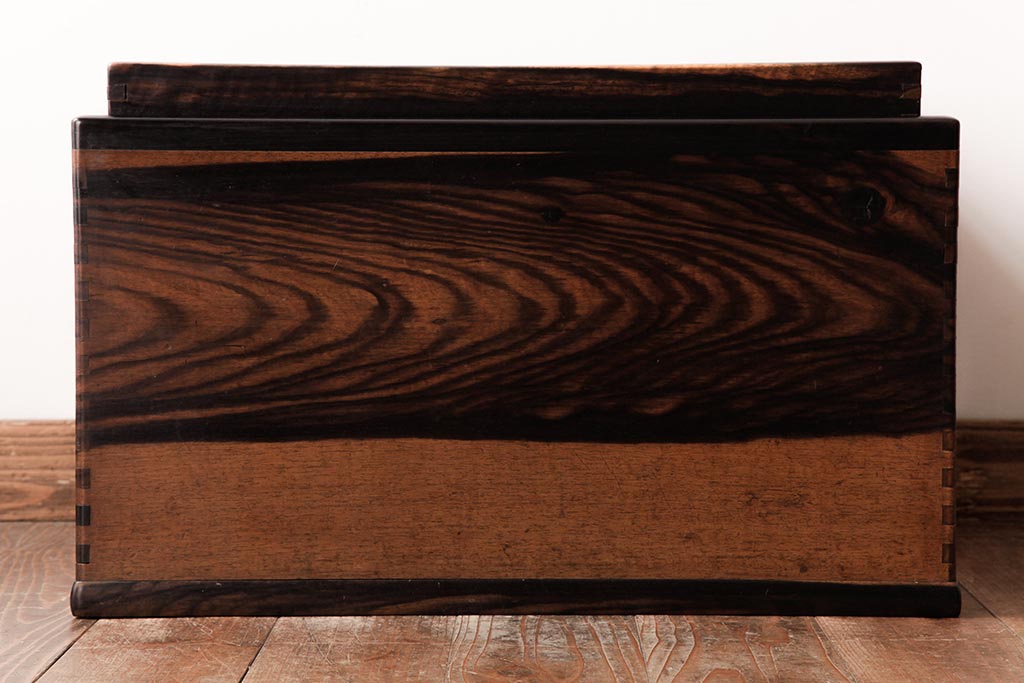 ラフジュ工房> 火鉢> 長火鉢 > アンティーク雑貨 和製アンティーク 総黒柿無垢材 高級品 独特の杢目が存在感を放つ火鉢(1)