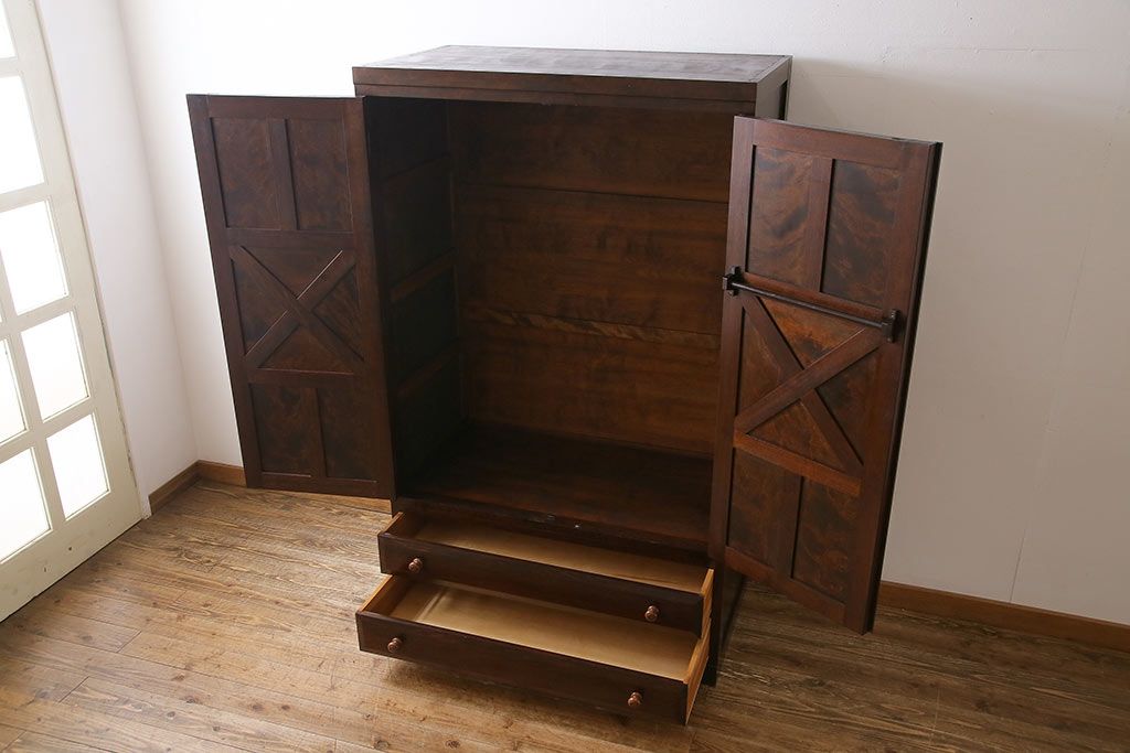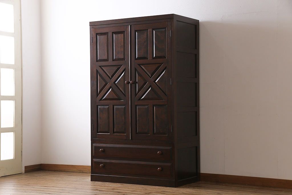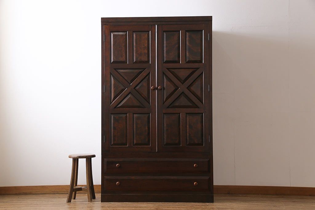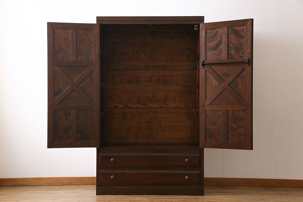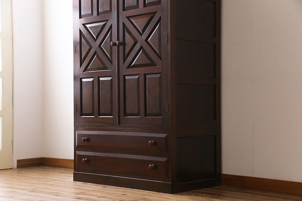 中古美品 松本民芸家具 シックな佇まいが魅力的なワードローブ(チェスト、衣装箪笥)(定価約47万円)