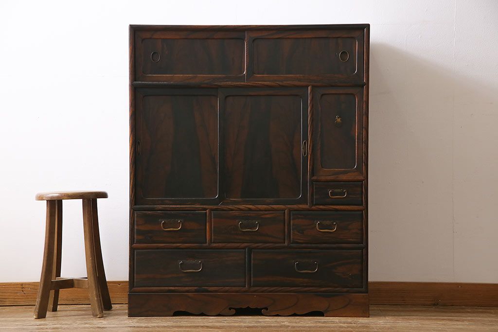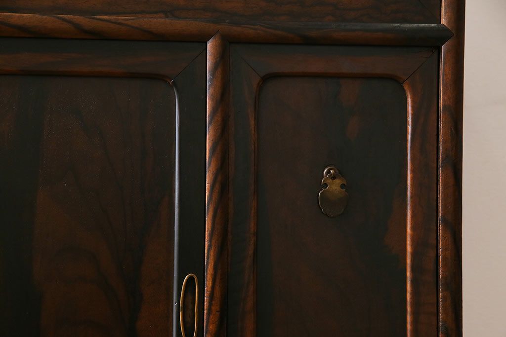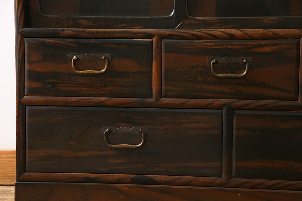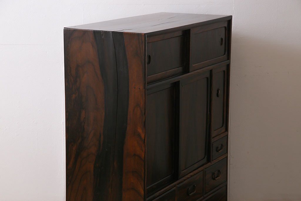アンティーク家具 古民具 総黒柿材 こだわりの和の空間づくりにおすすめな茶箪笥(茶棚、戸棚、収納棚)