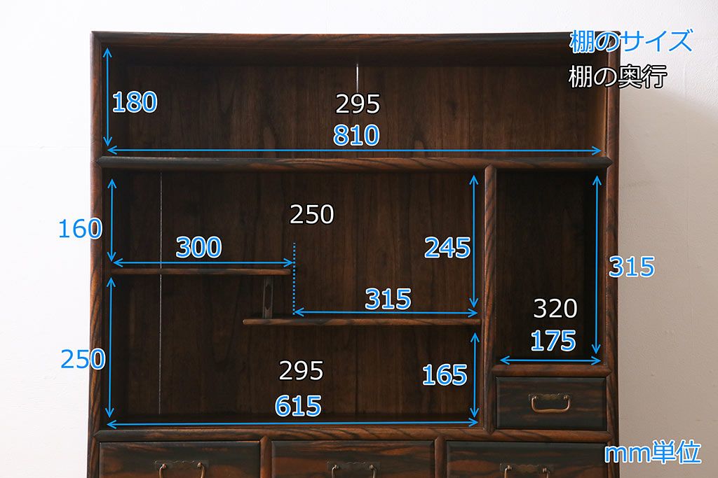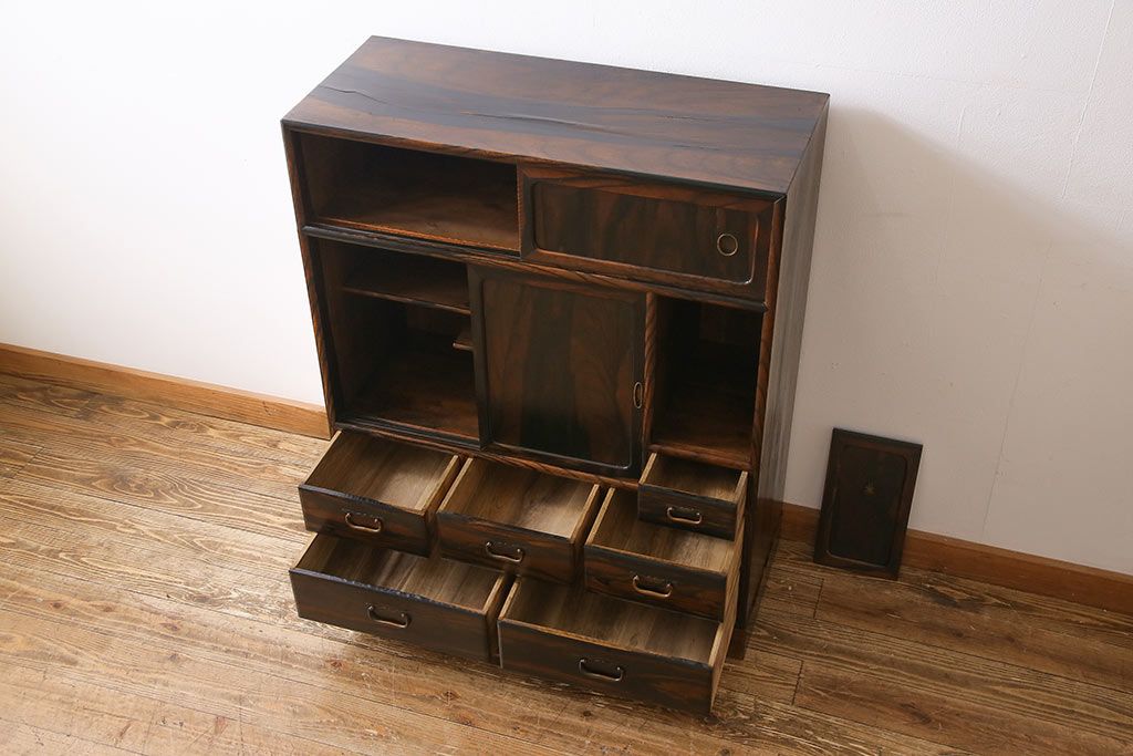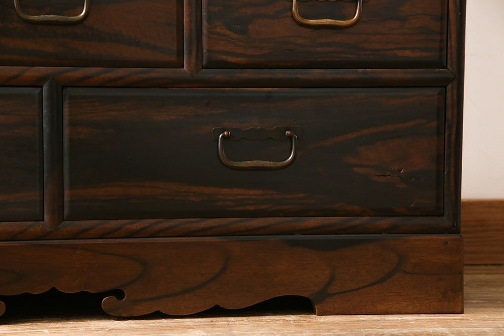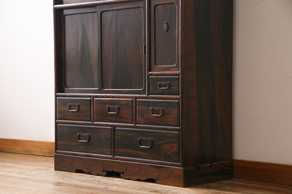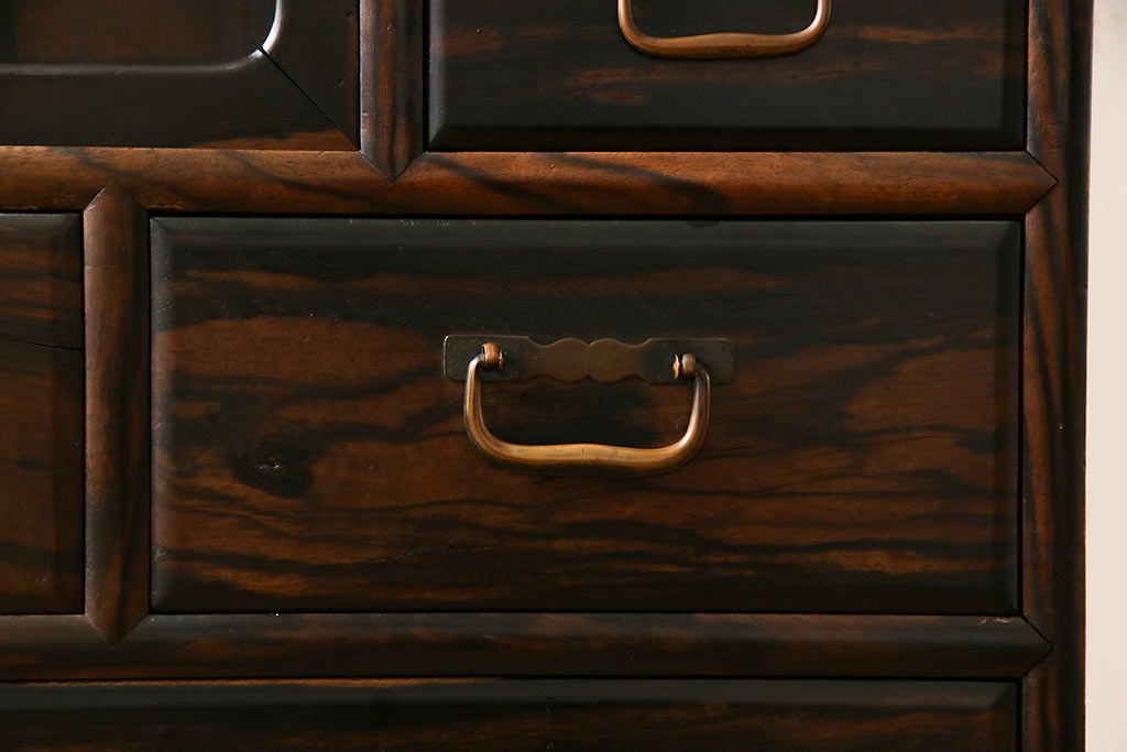 アンティーク家具 古民具 総黒柿材 こだわりの和の空間づくりにおすすめな茶箪笥(茶棚、戸棚、収納棚)