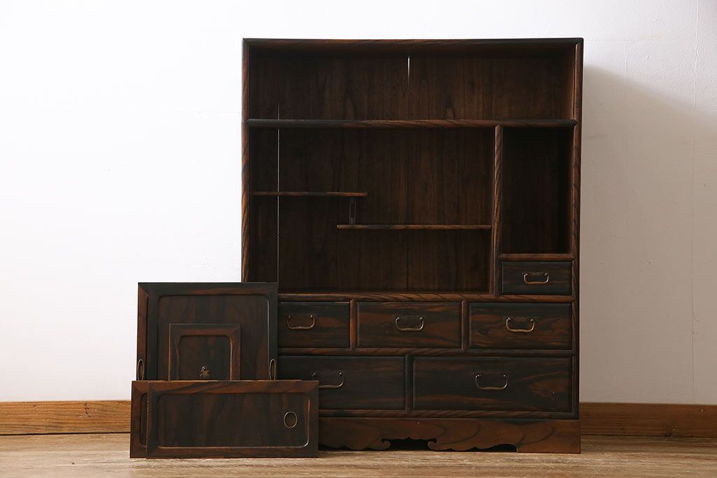 古民具 総黒柿材 こだわりの和の空間づくりにおすすめな茶箪笥(茶棚、戸棚、収納棚)です。
