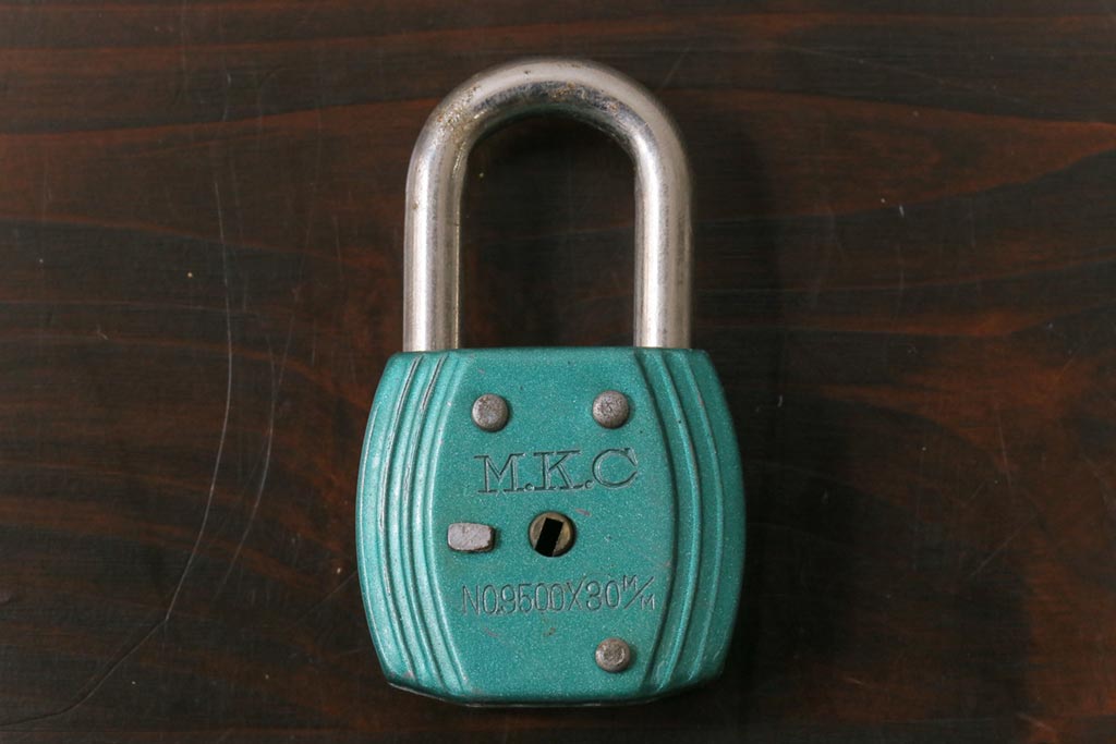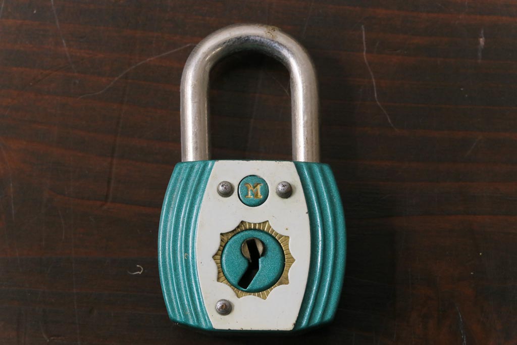 アンティーク雑貨 昭和レトロ M.K.C 可愛らしい色合いのパドロックキー(南京錠、鍵、錠前)(2)