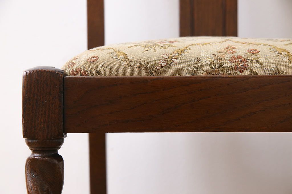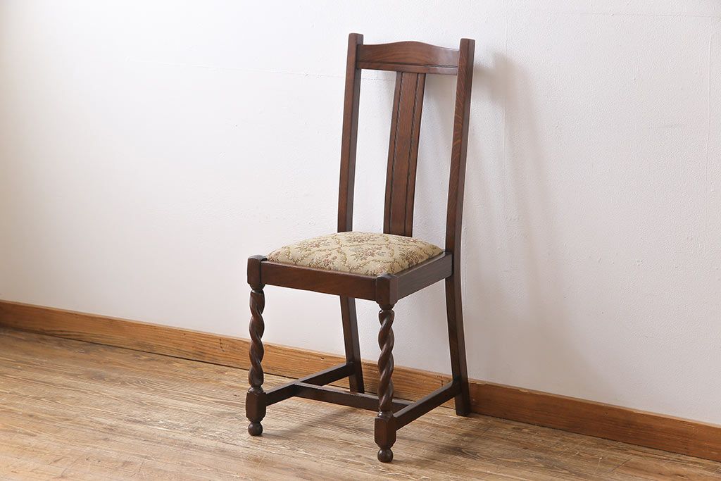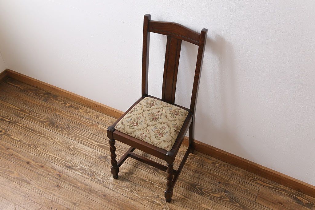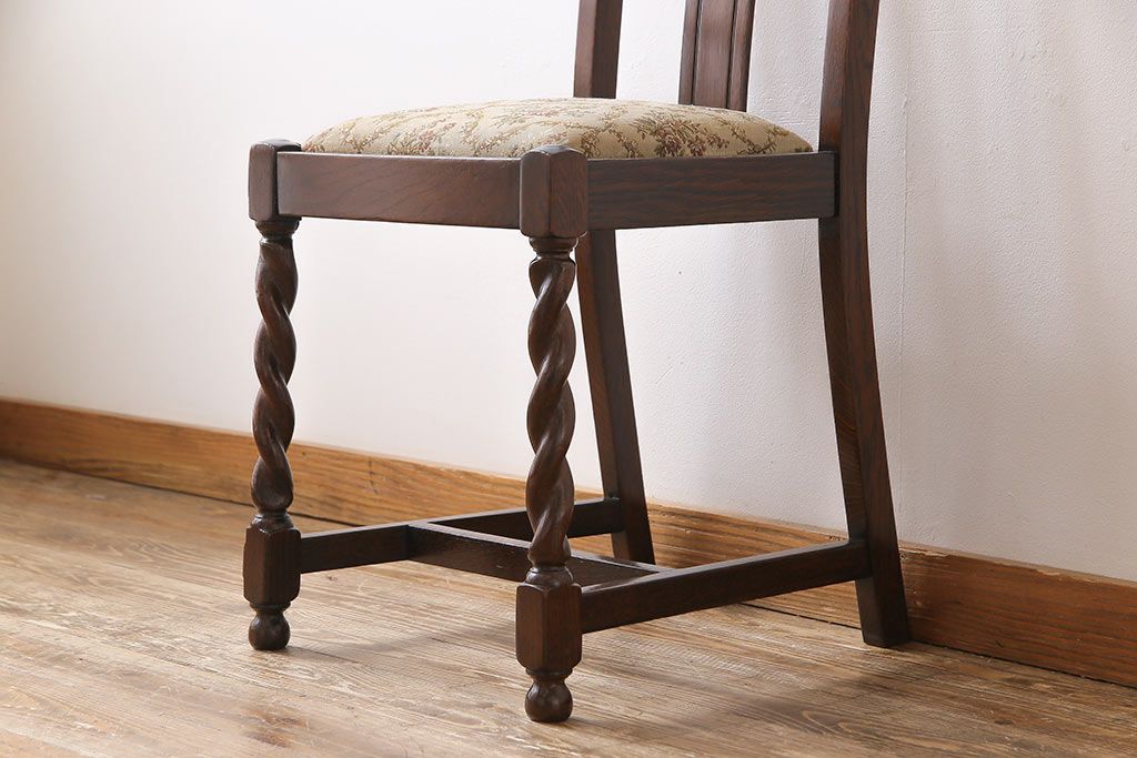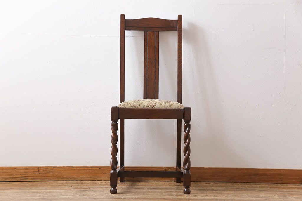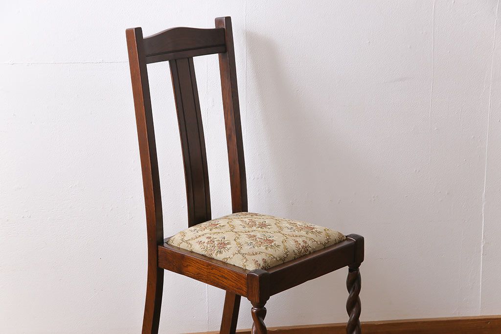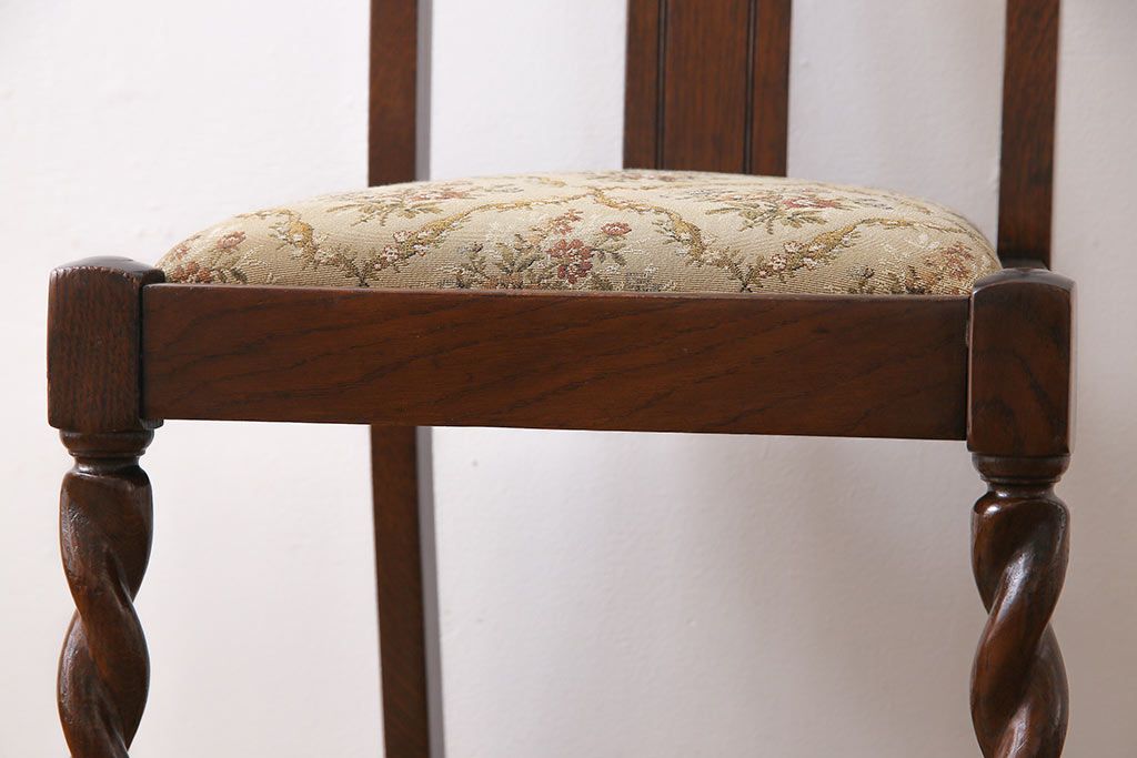 アンティーク家具 イギリスアンティーク ツイストレッグ ゴブラン織り 優雅な佇まいのオーク材製ダイニングチェア(椅子)