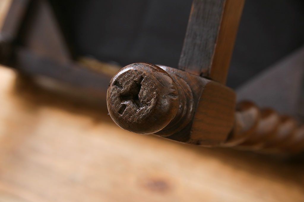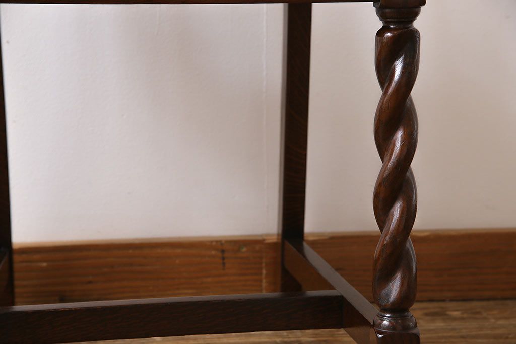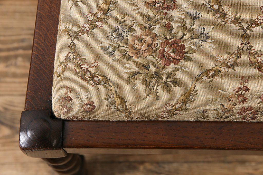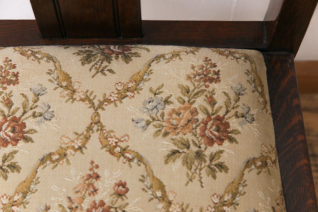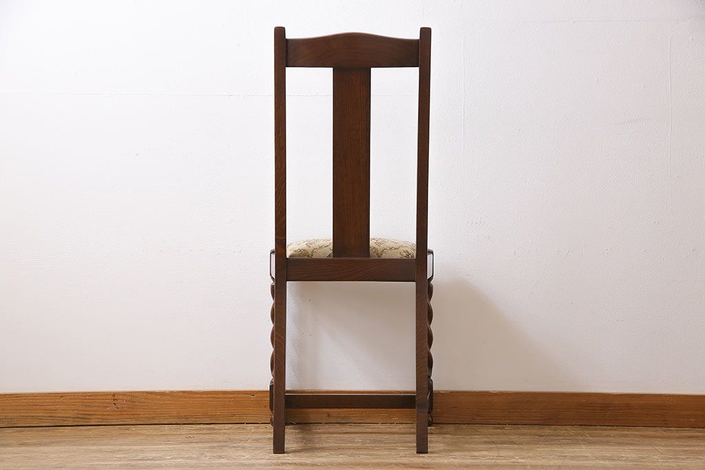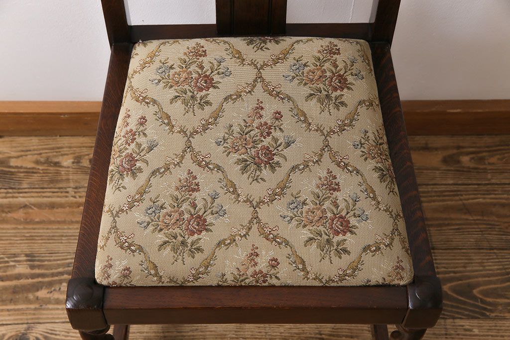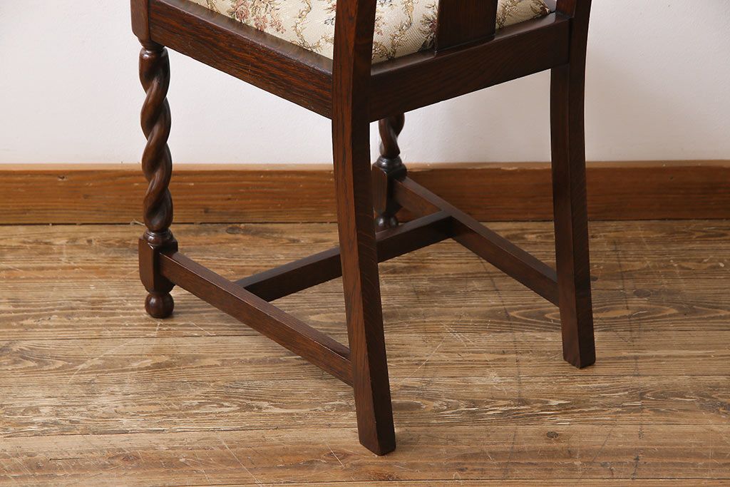 アンティーク家具 イギリスアンティーク ツイストレッグ ゴブラン織り 優雅な佇まいのオーク材製ダイニングチェア(椅子)