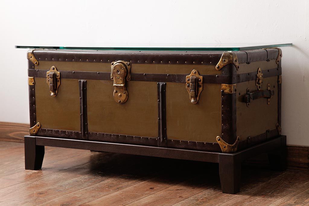 アンティーク雑貨 和製アンティーク リメイク家具 お洒落な雰囲気醸し出すトランクテーブル(センターテーブル、ローテーブル)