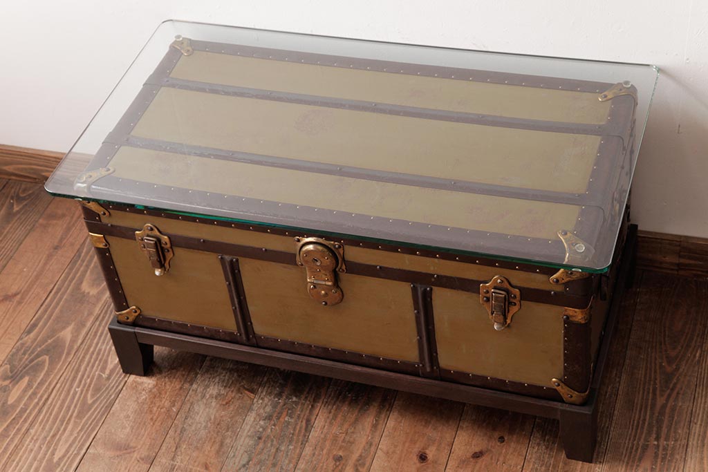 ラフジュ工房> 雑貨 > アンティーク雑貨 和製アンティーク リメイク家具 お洒落な雰囲気醸し出すトランクテーブル(センターテーブル、ローテーブル)