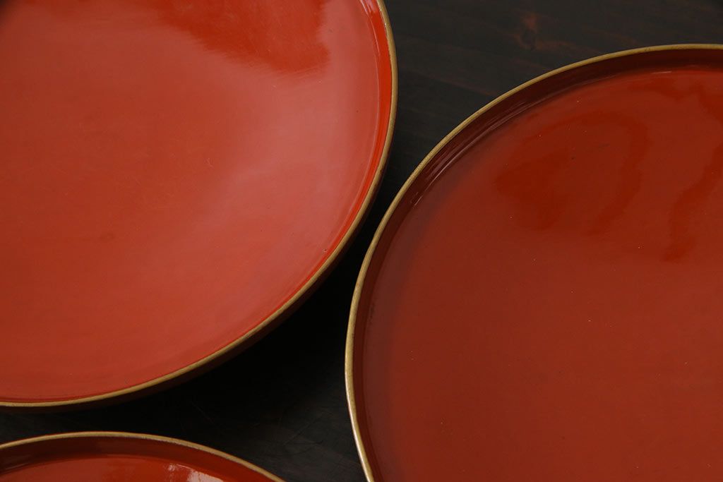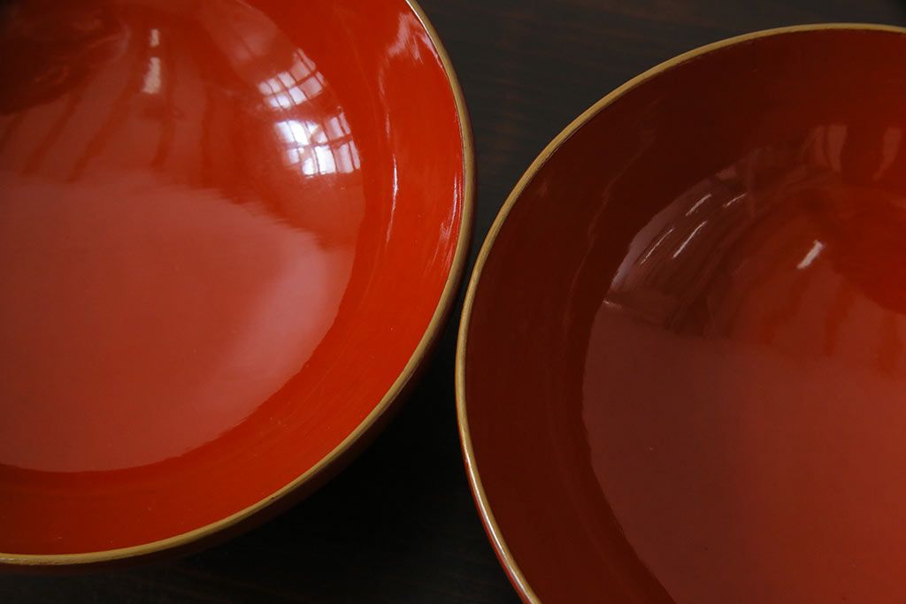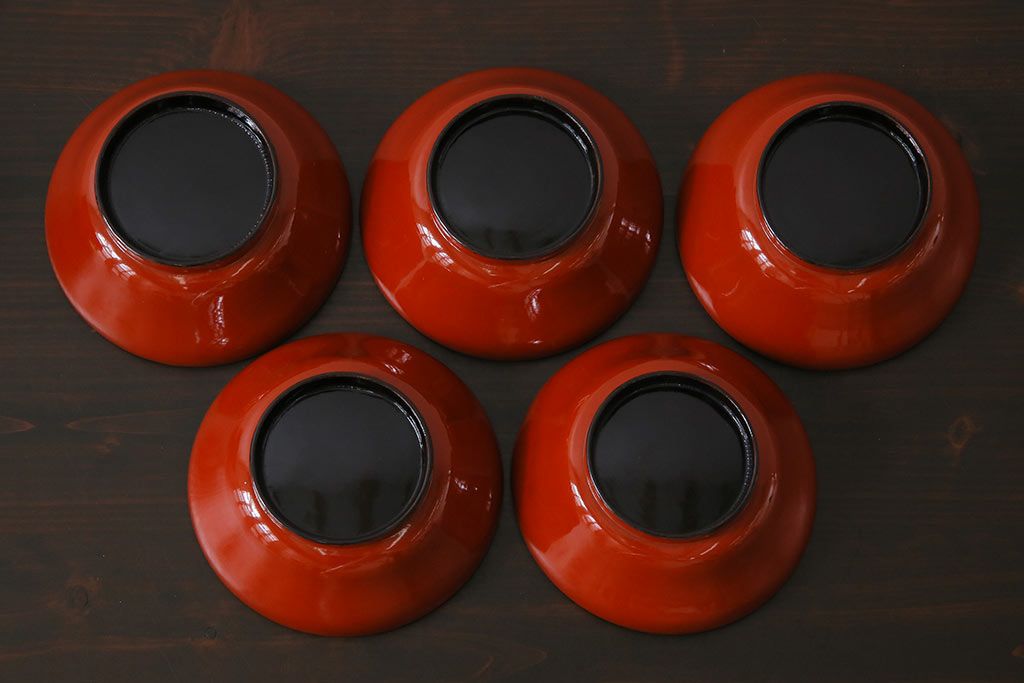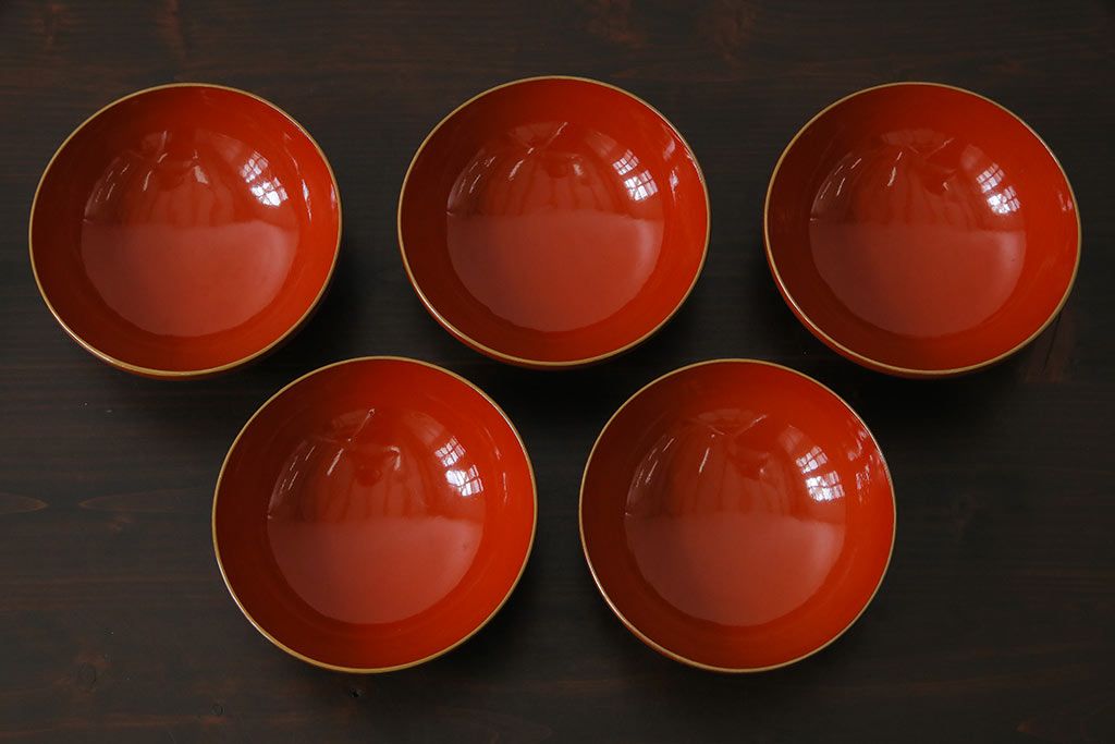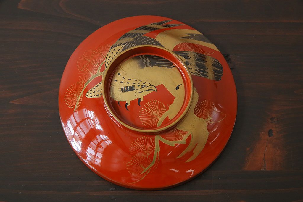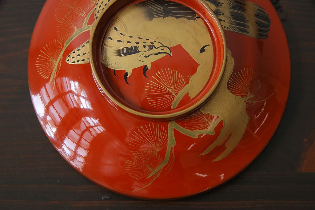 ラフジュ工房> 骨董・美術品 > 古民具・骨董 明治大正期 蒔絵 鷹と松 朱塗りのお椀5客セット(木製漆器)