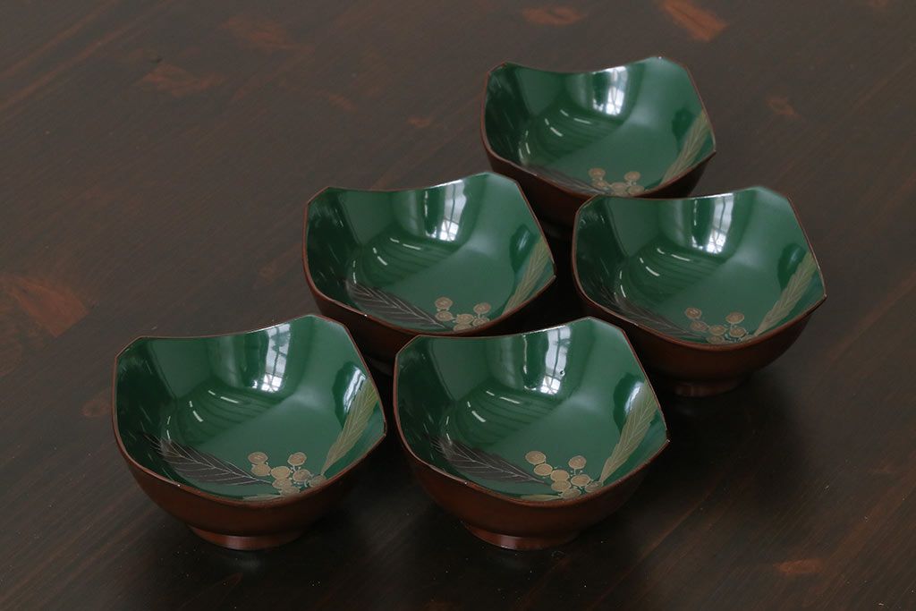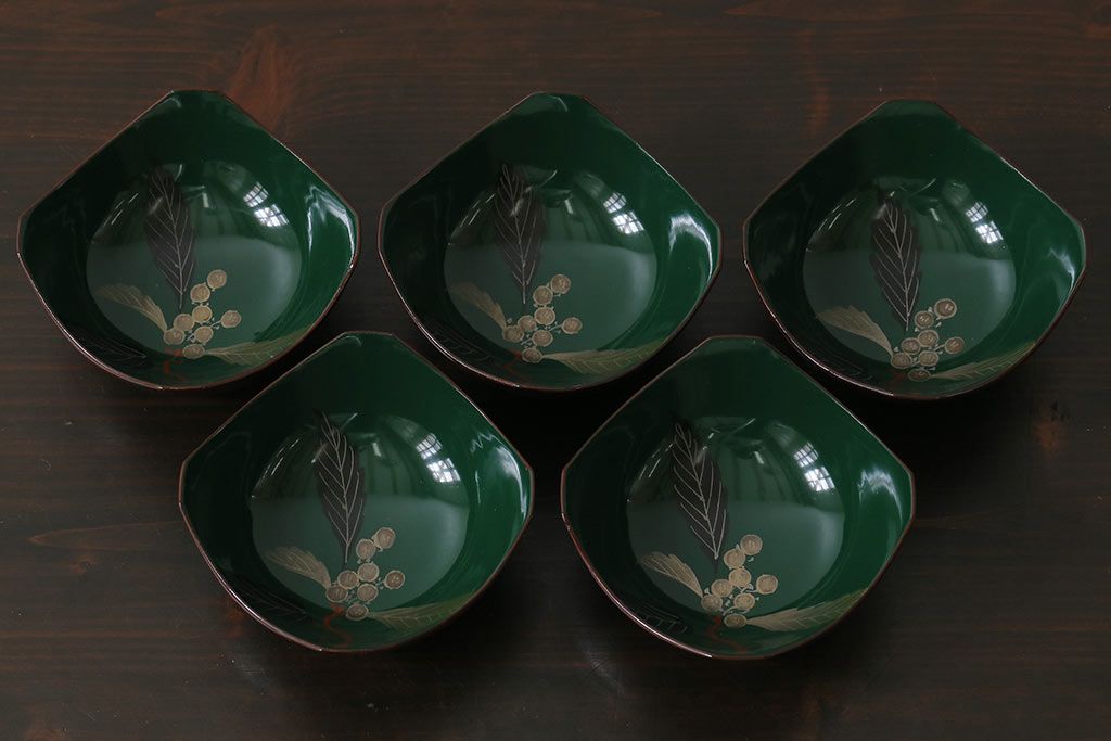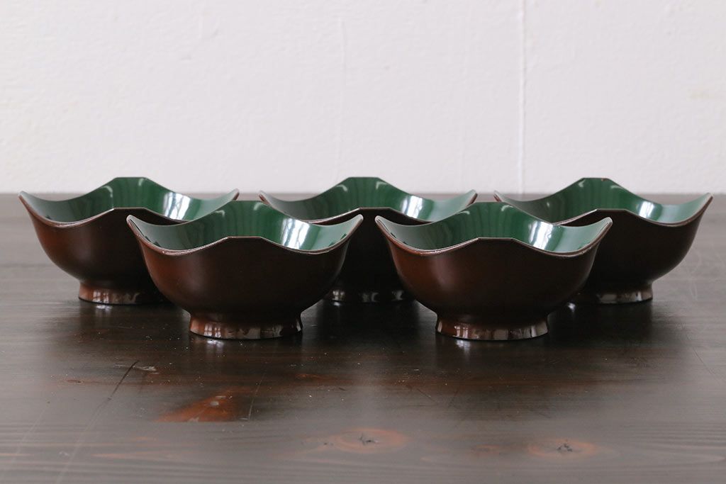 ラフジュ工房> 和食器・茶道具 > 和製アンティーク 滋味豊かな意匠の木製漆器小鉢(向付、小皿、和食器)(1)