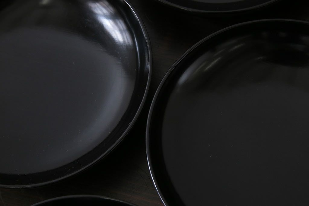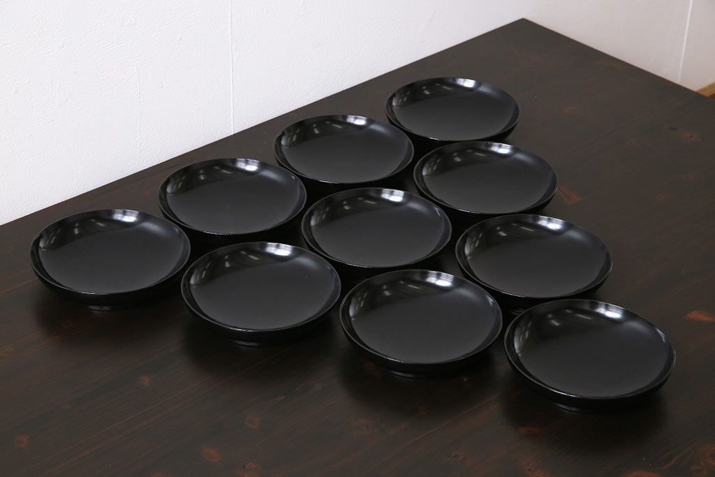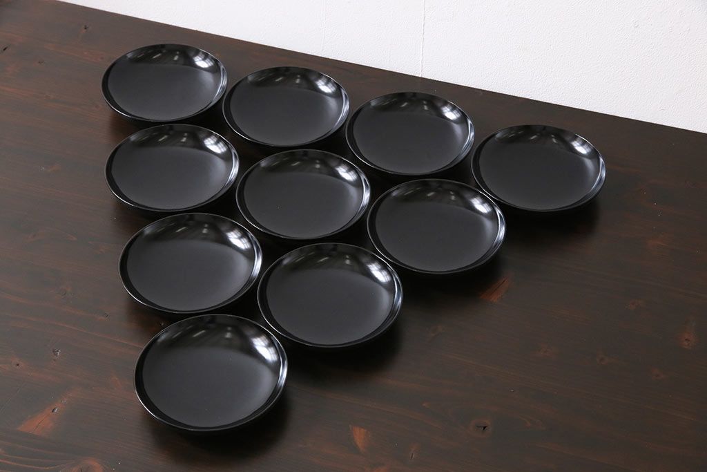 ラフジュ工房> 和食器・茶道具> 皿 > 大正昭和初期 漆器 黒漆が美しい銘々皿10枚セット(木皿、菓子皿)