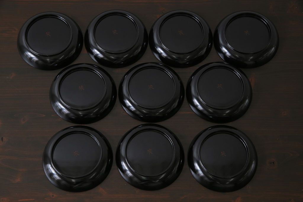 ラフジュ工房> 骨董・美術品> 骨董-漆器 > 大正昭和初期 漆器 黒漆が美しい銘々皿10枚セット(木皿、菓子皿)