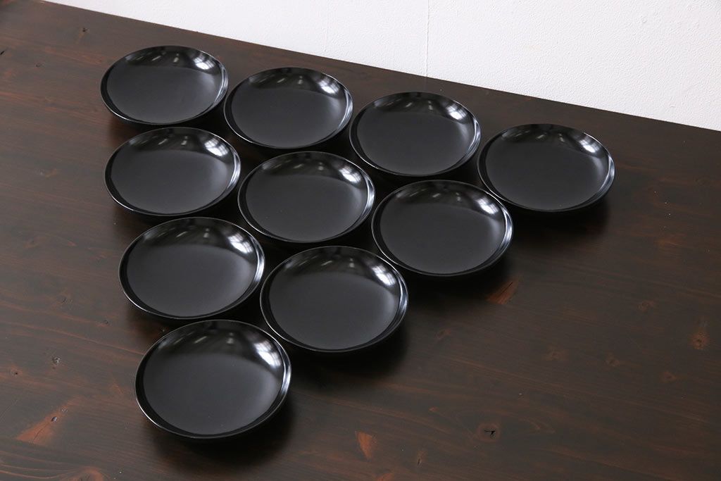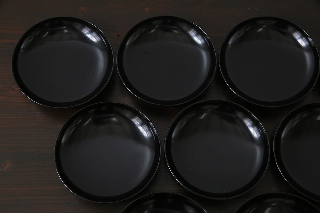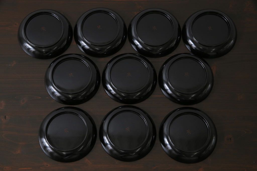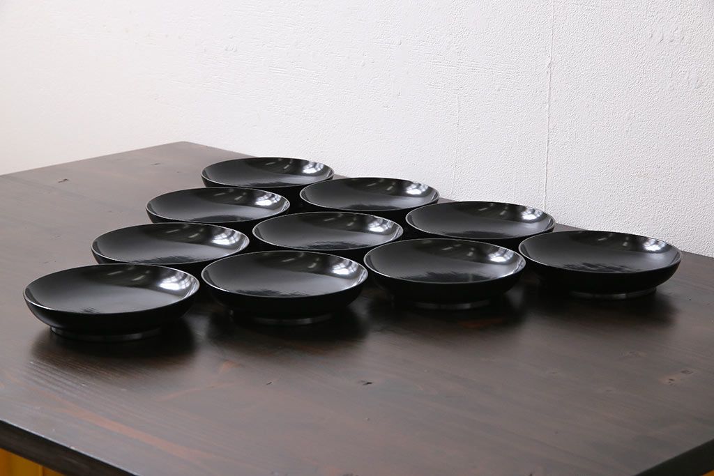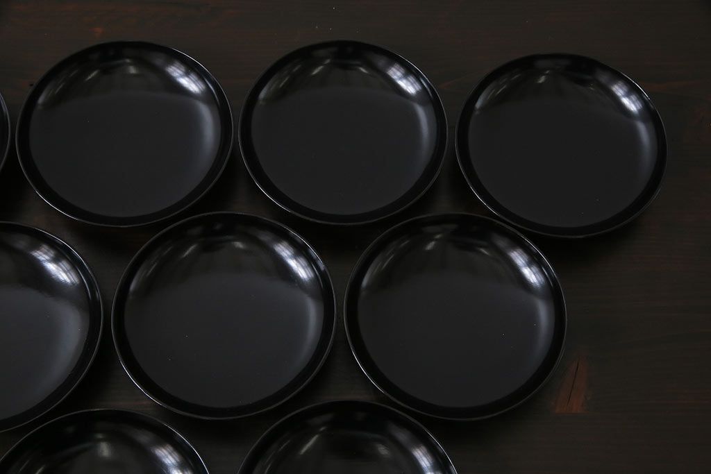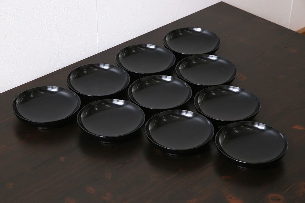 大正昭和初期 漆器 黒漆が美しい銘々皿10枚セット(木皿、菓子皿)(1)