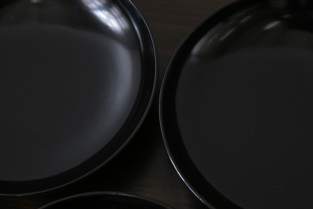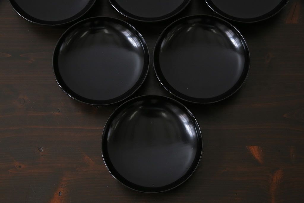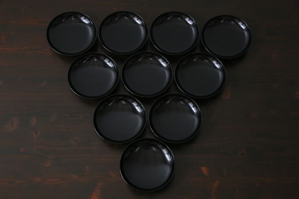 ラフジュ工房> 和食器・茶道具> 皿 > 大正昭和初期 漆器 黒漆が美しい銘々皿10枚セット(木皿、菓子皿)(1)