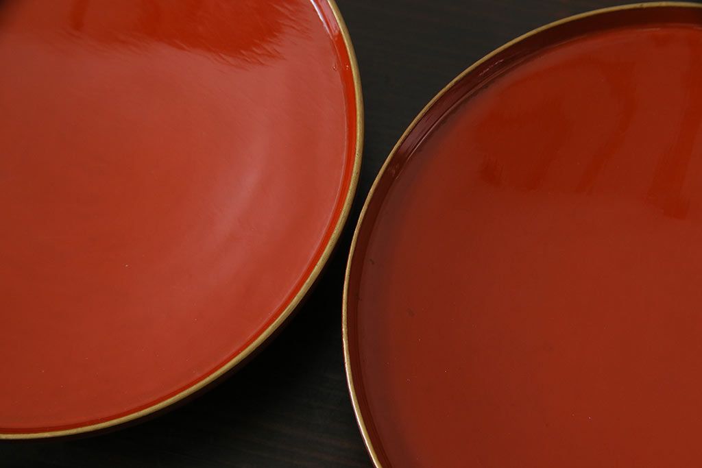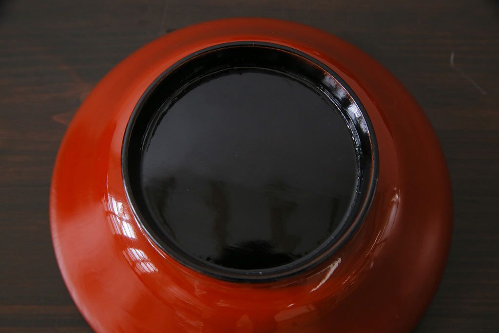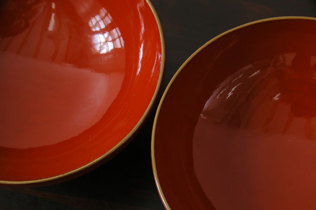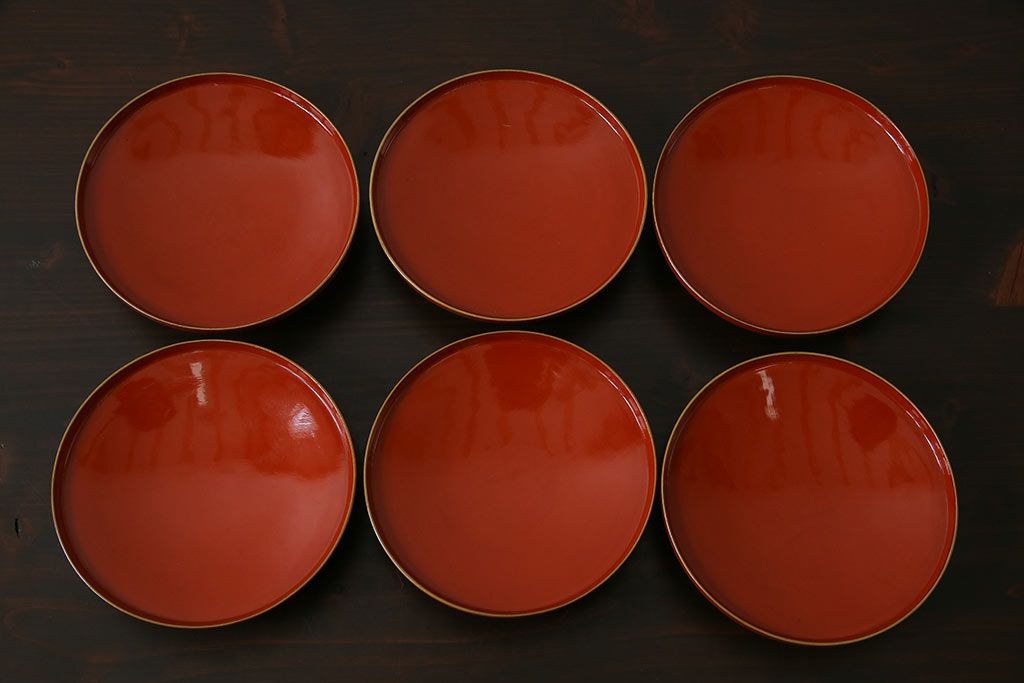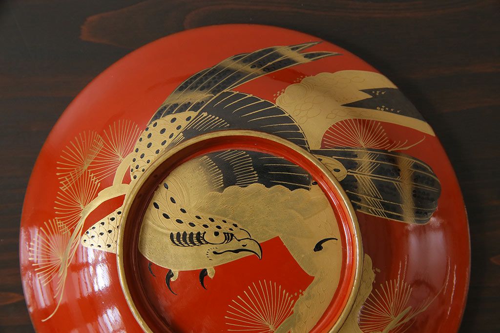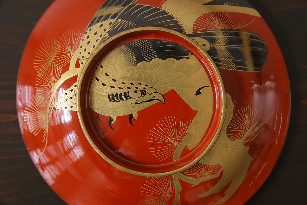 ラフジュ工房> 骨董・美術品 > アンティーク雑貨 古民具・骨董 明治大正期 蒔絵 鷹と松 朱塗りのお椀6客セット(木製漆器)(1)