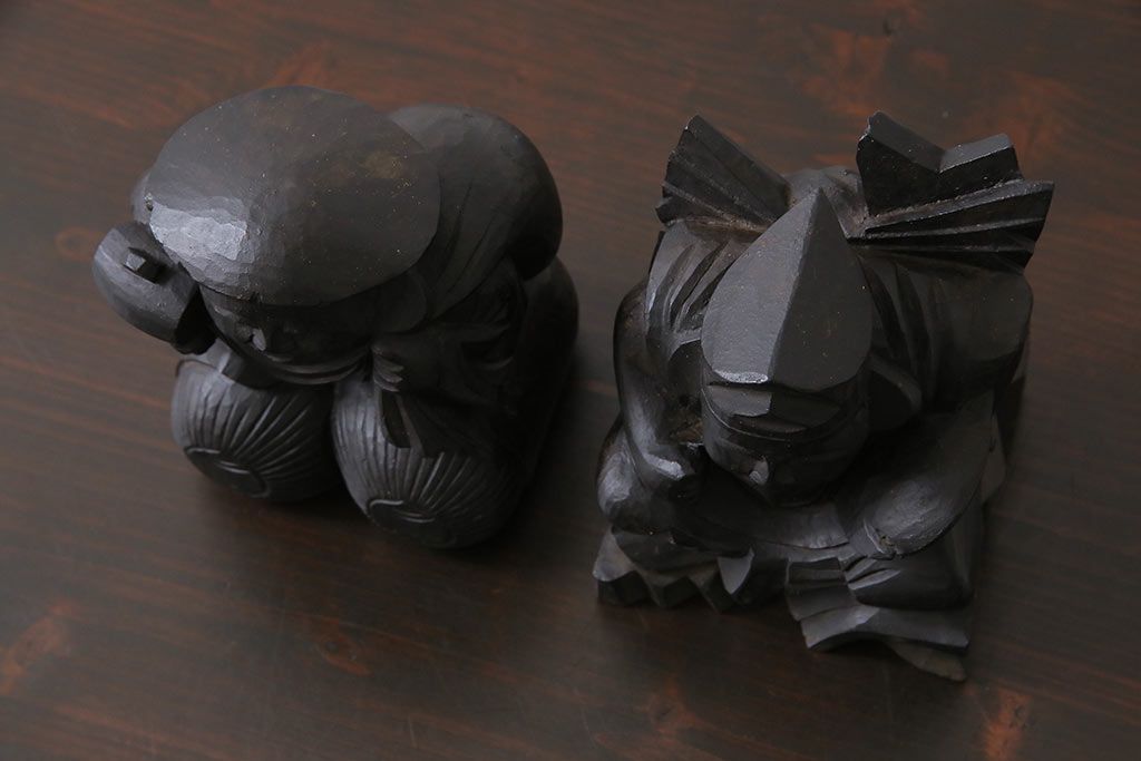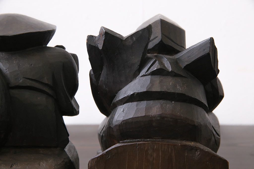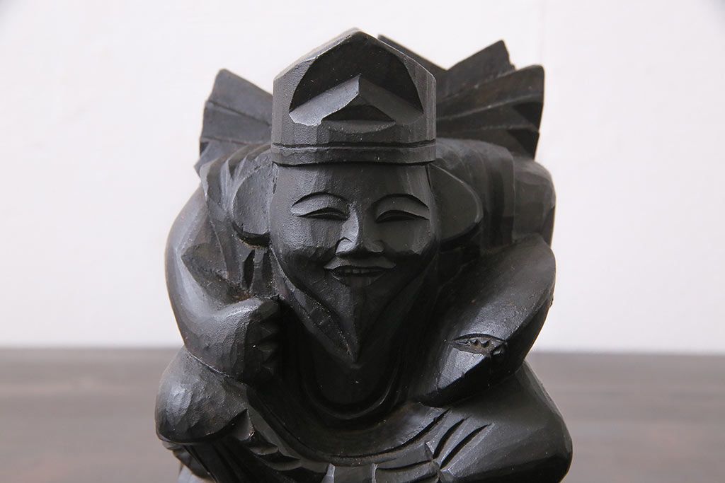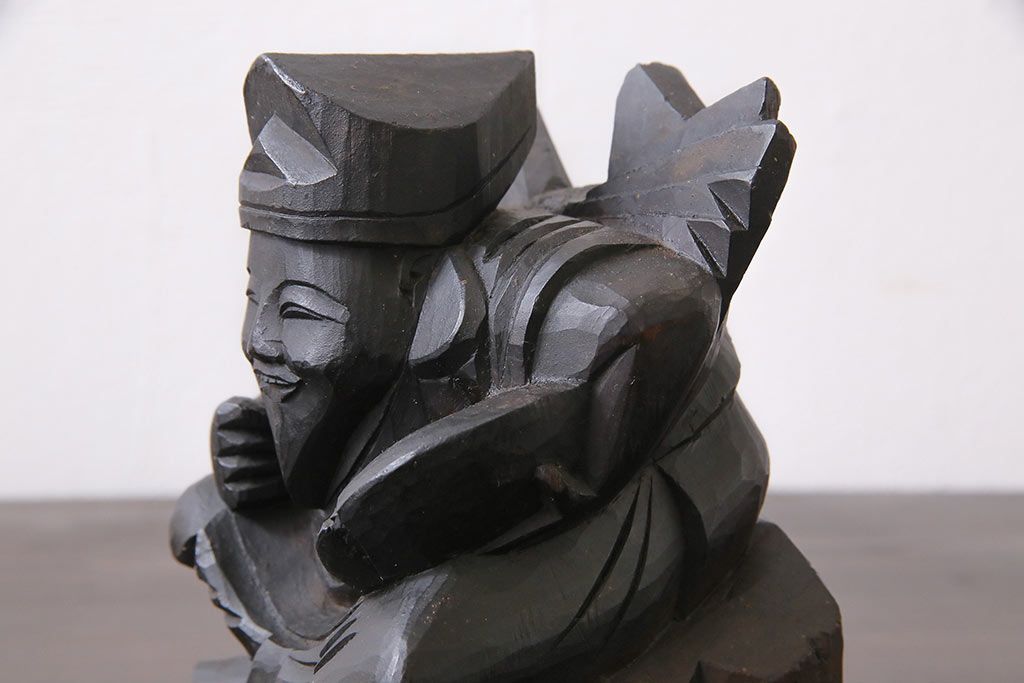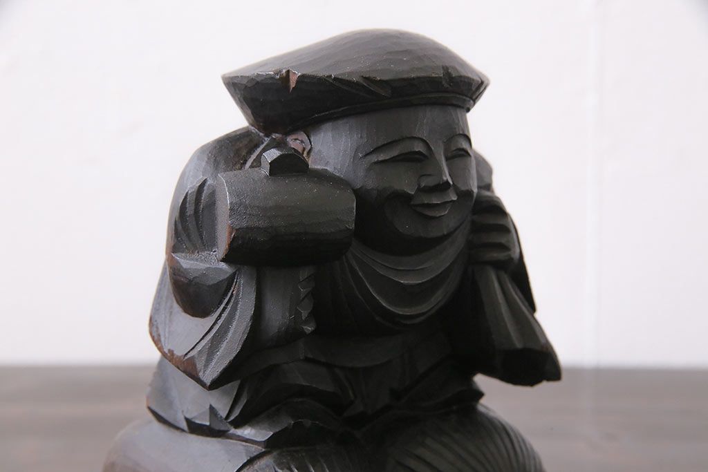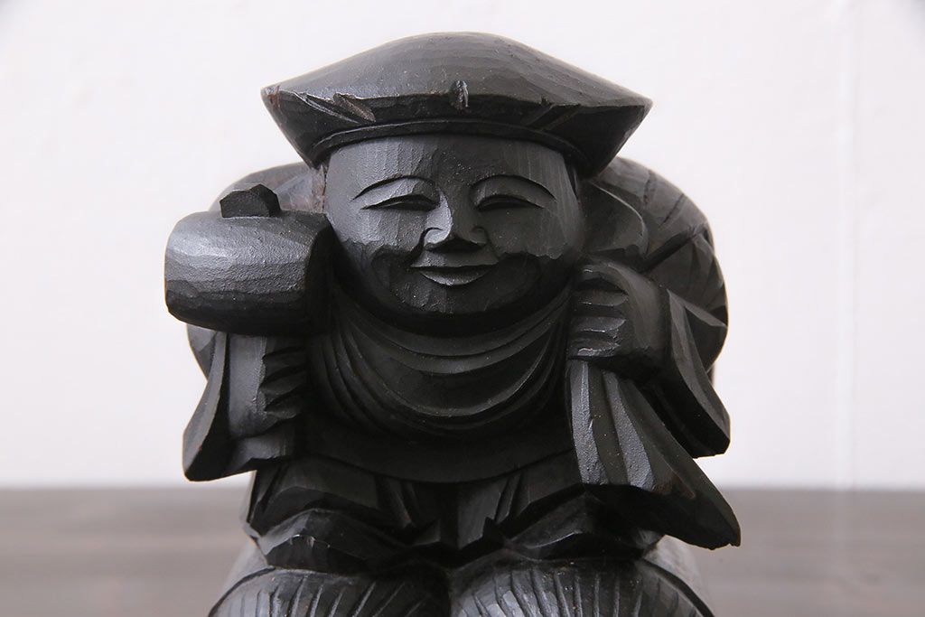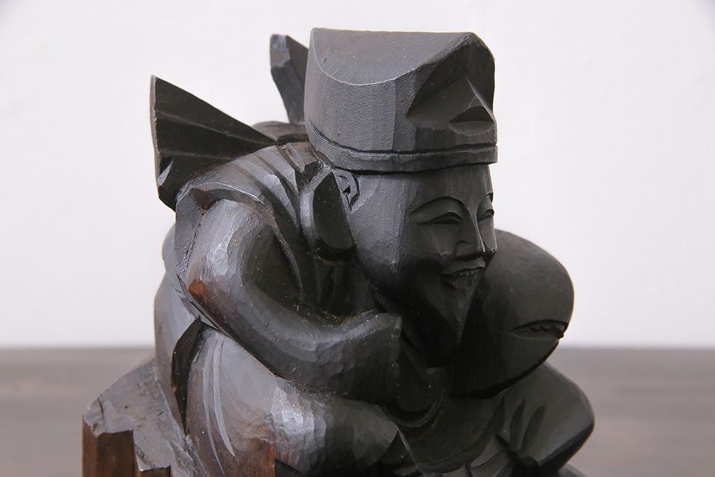 アンティーク雑貨 和製アンティーク 明治大正期 古い木の味わいが魅力の大黒天・恵比寿天の置物(木彫り)