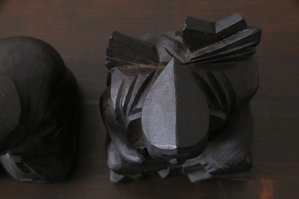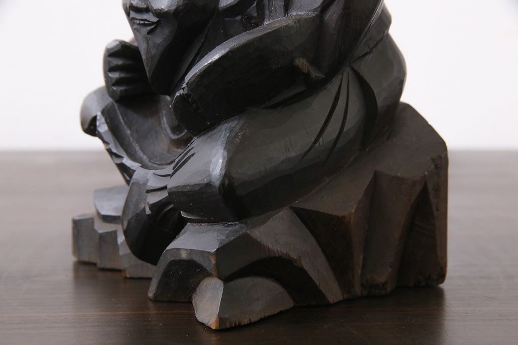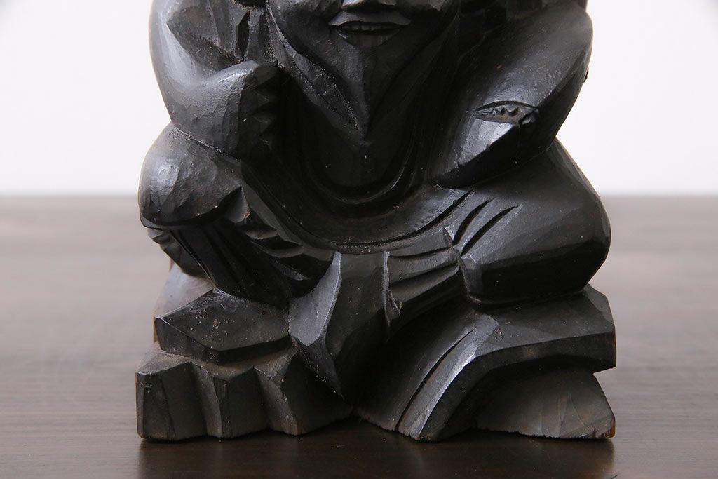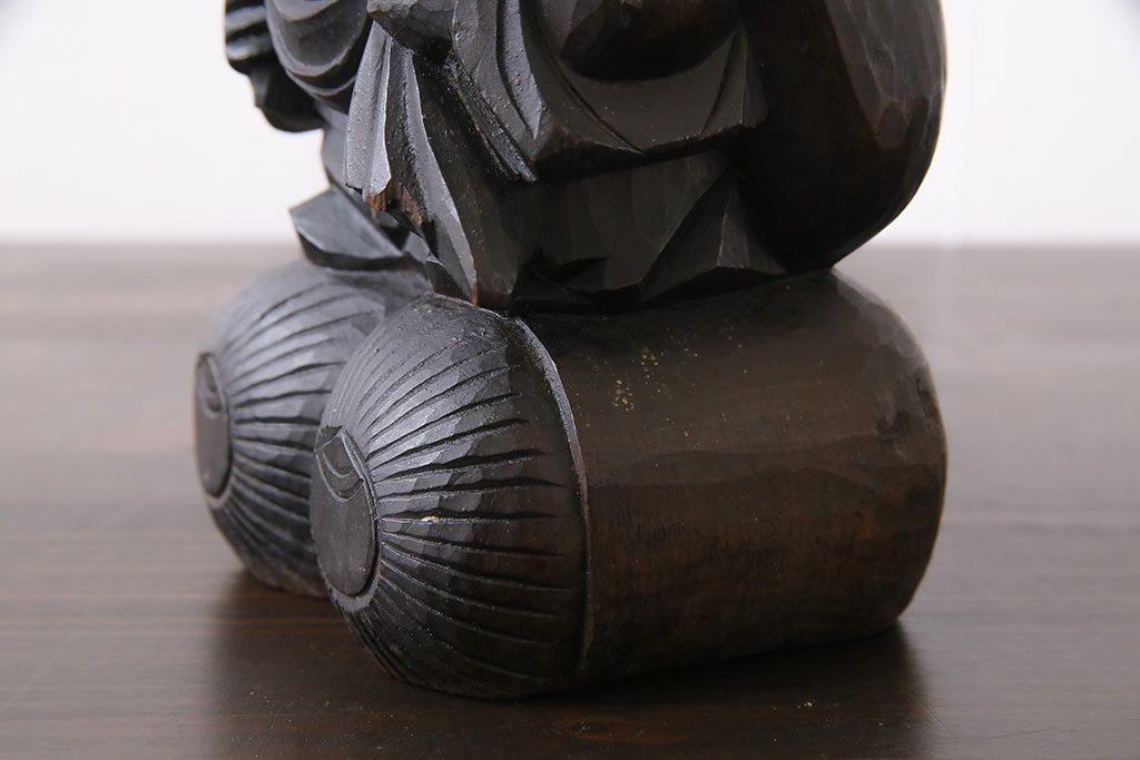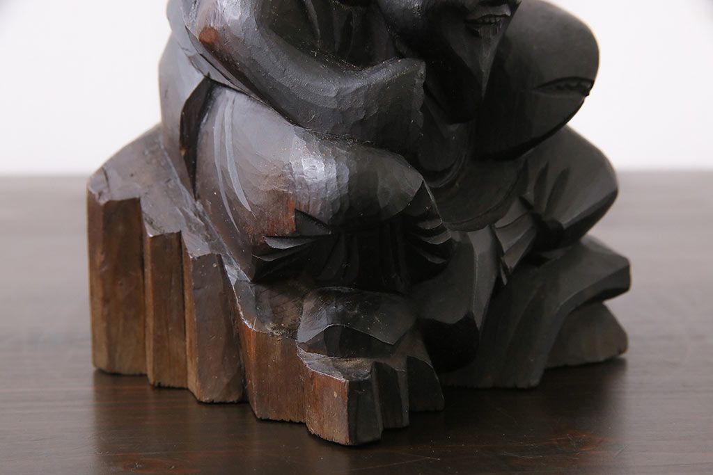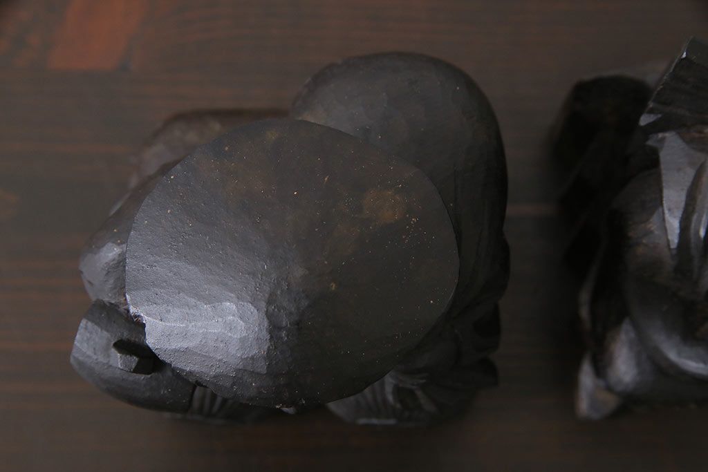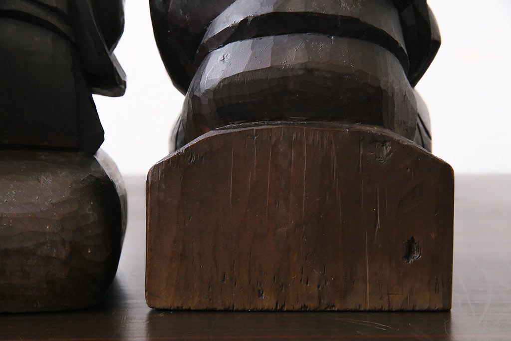 アンティーク雑貨 和製アンティーク 明治大正期 古い木の味わいが魅力の大黒天・恵比寿天の置物(木彫り)