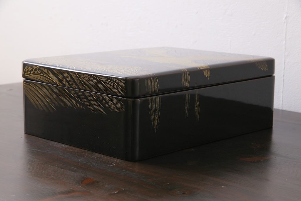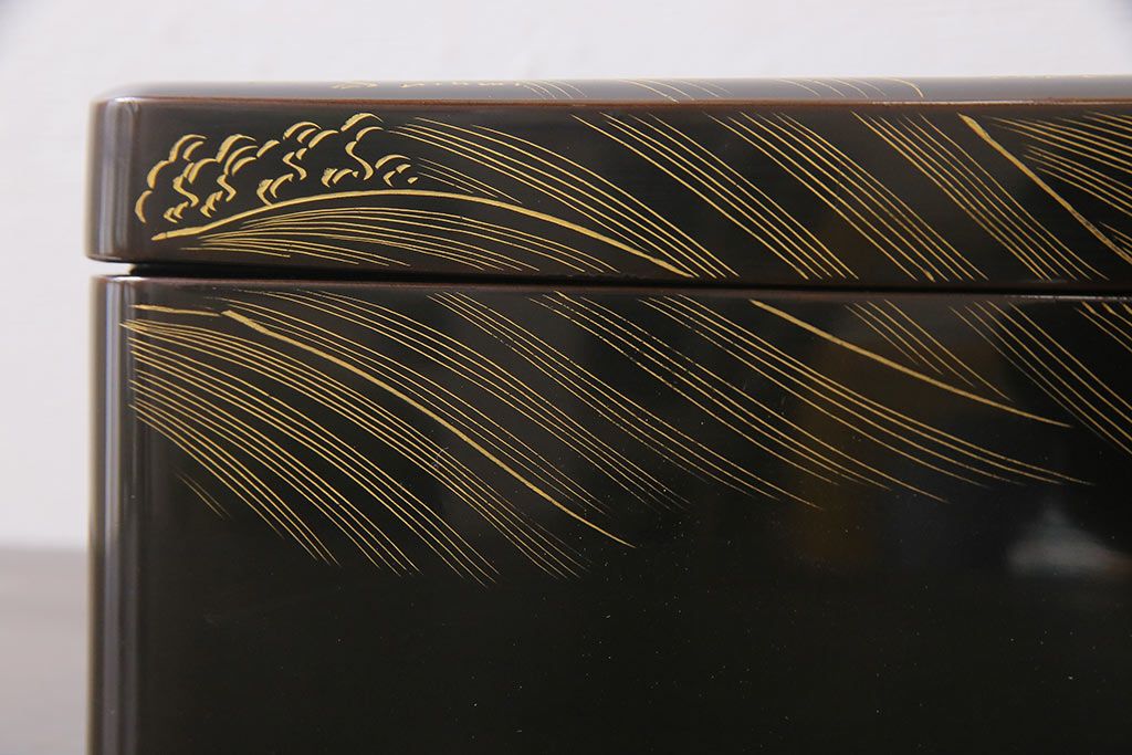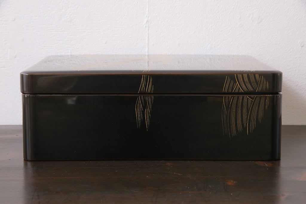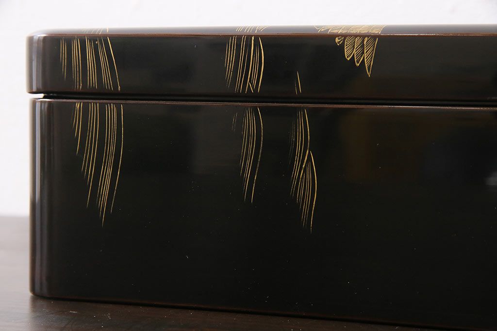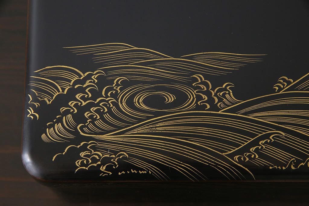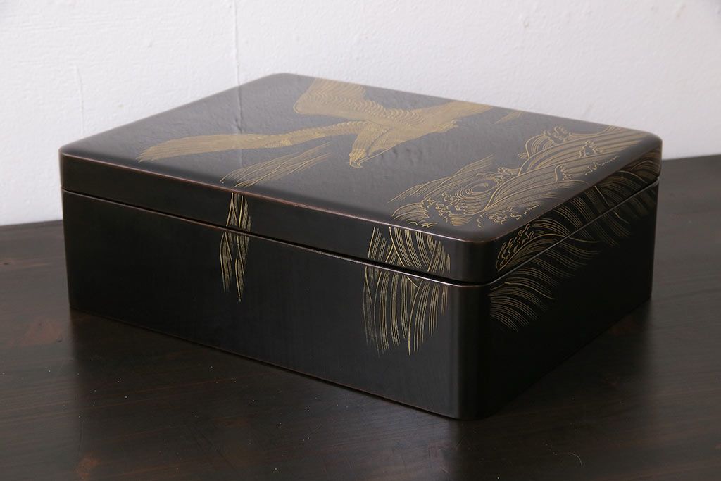 ラフジュ工房> 雑貨 > アンティーク雑貨 和製アンティーク 沈金蒔絵 凛々しい図柄が目を引く手許箱(小物入れ、文箱、硯箱)