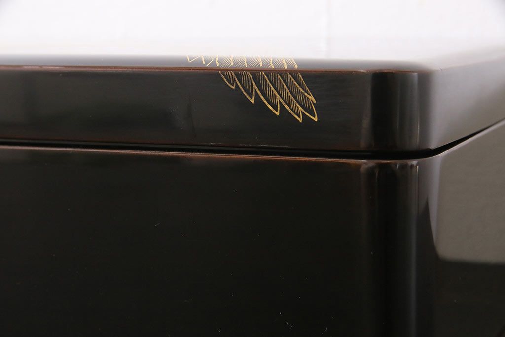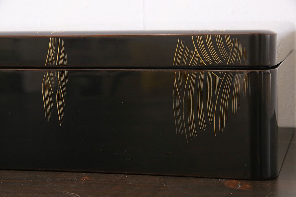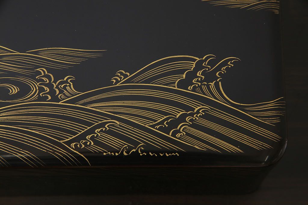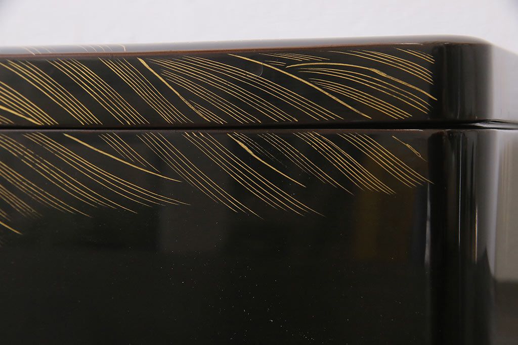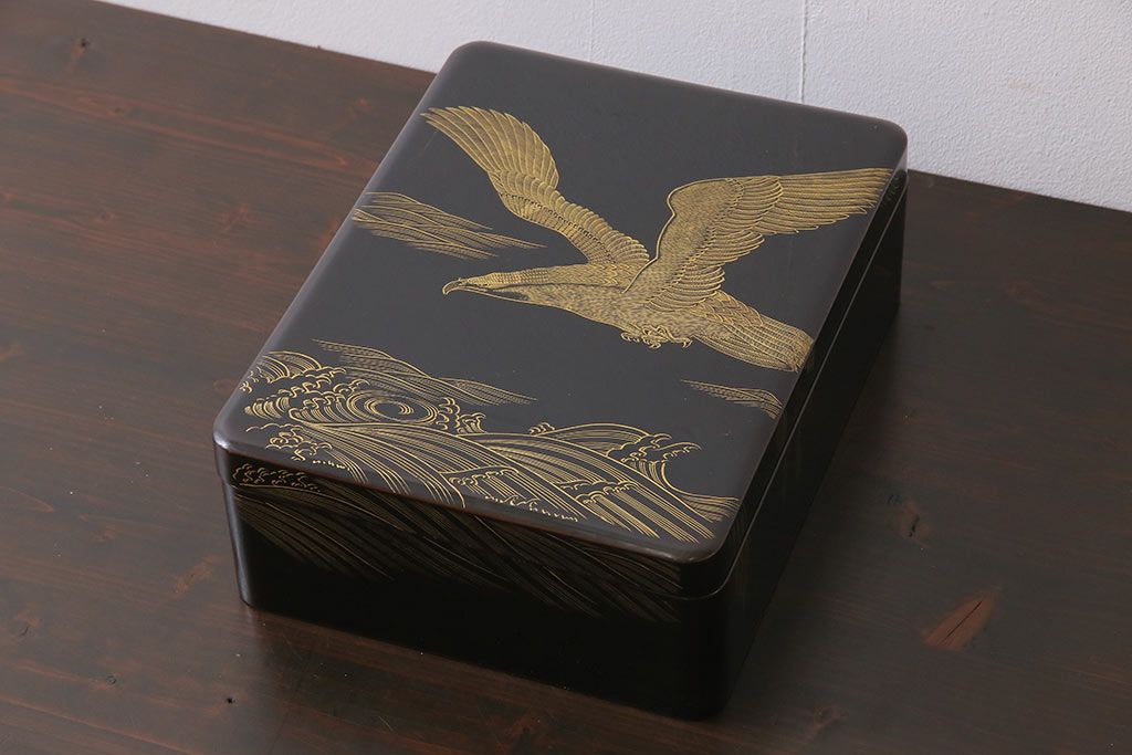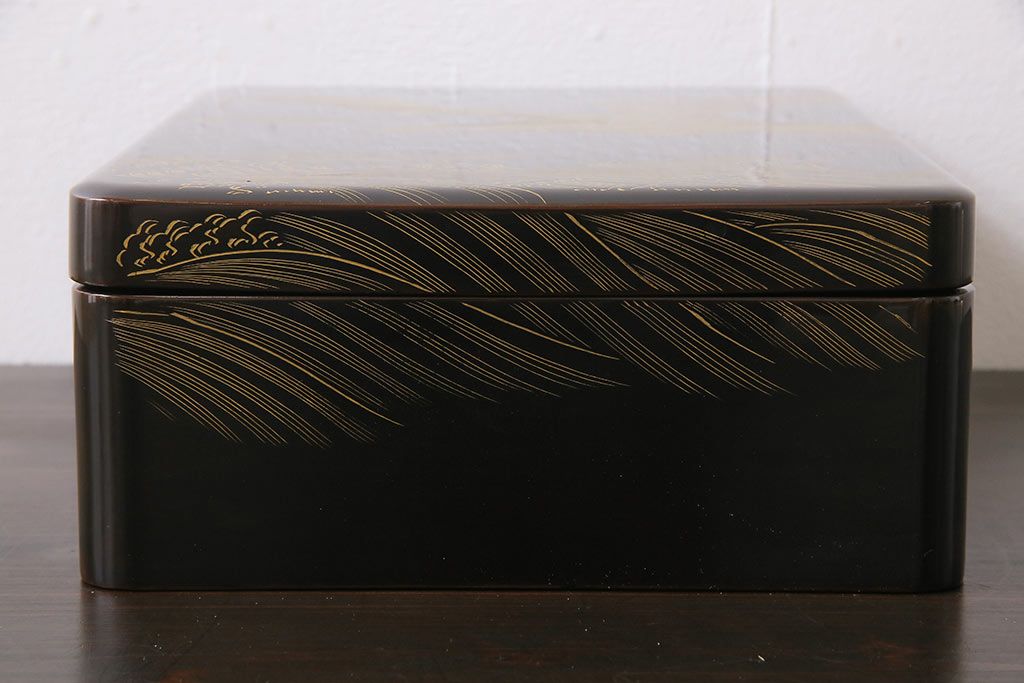 ラフジュ工房> 雑貨 > アンティーク雑貨 和製アンティーク 沈金蒔絵 凛々しい図柄が目を引く手許箱(小物入れ、文箱、硯箱)