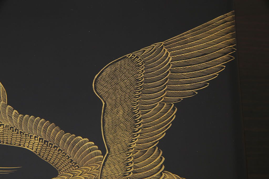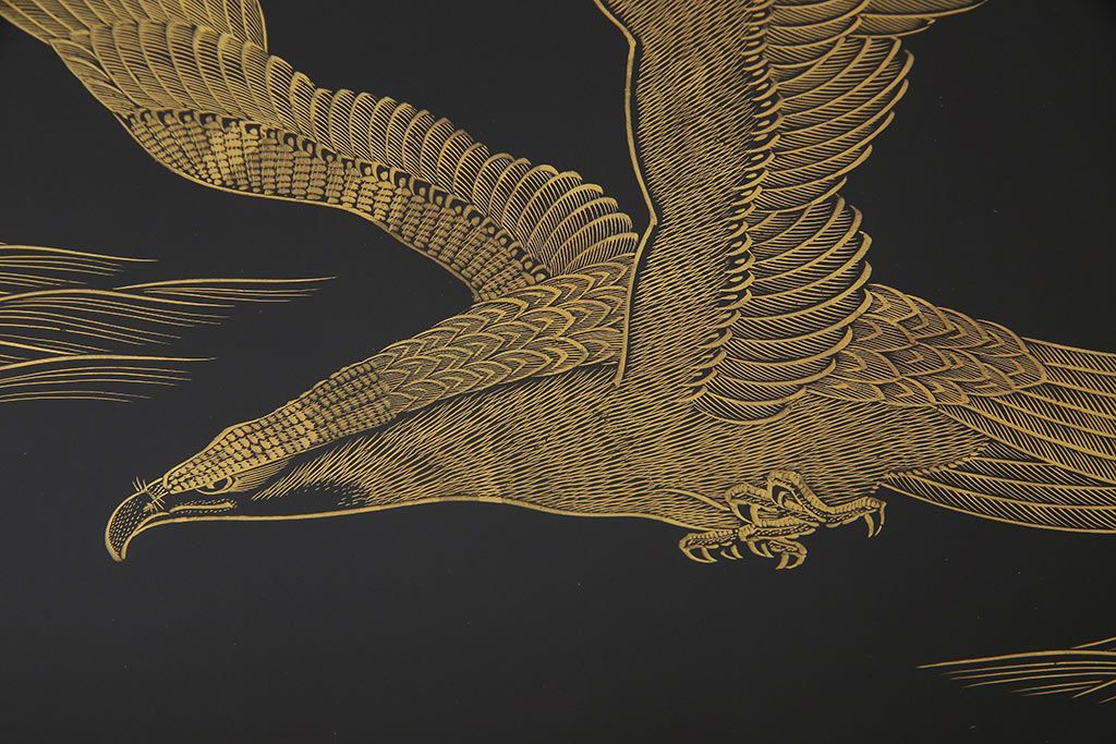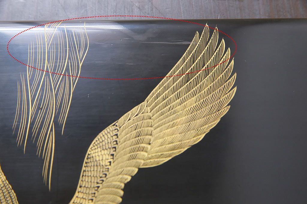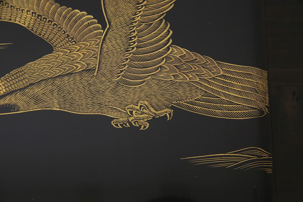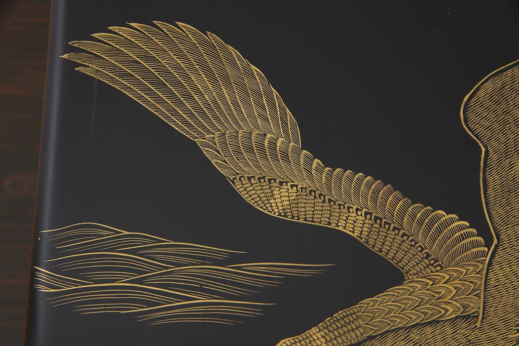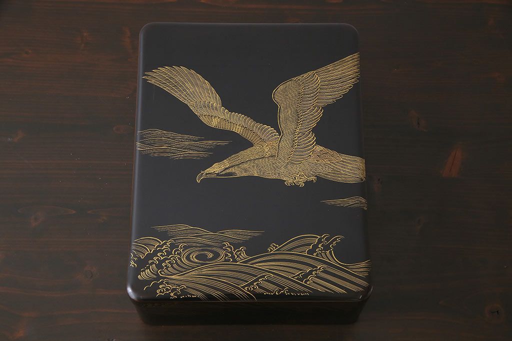 ラフジュ工房> 雑貨 > アンティーク雑貨 和製アンティーク 沈金蒔絵 凛々しい図柄が目を引く手許箱(小物入れ、文箱、硯箱)
