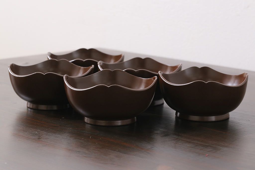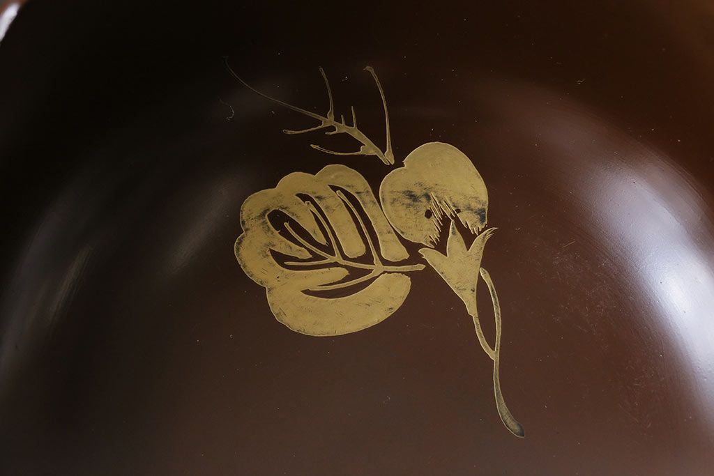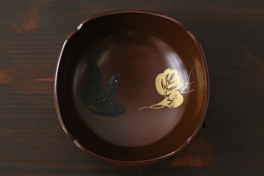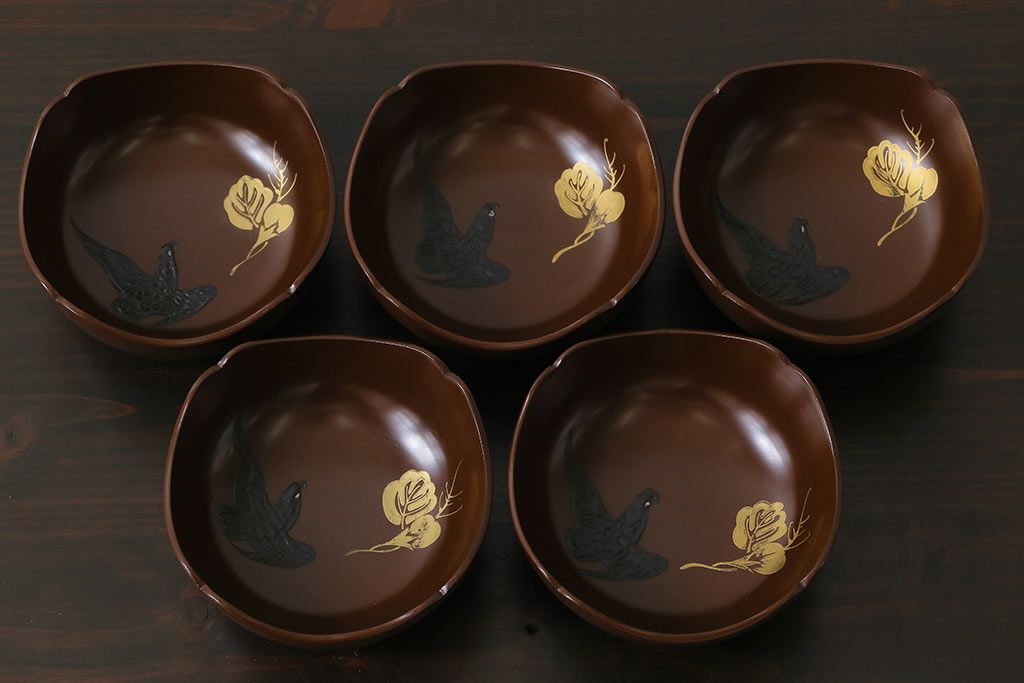 ラフジュ工房> 和食器・茶道具> 鉢 > 和製アンティーク 花鳥図 金彩が鮮やかな木製漆器小鉢(向付、小皿、和食器)