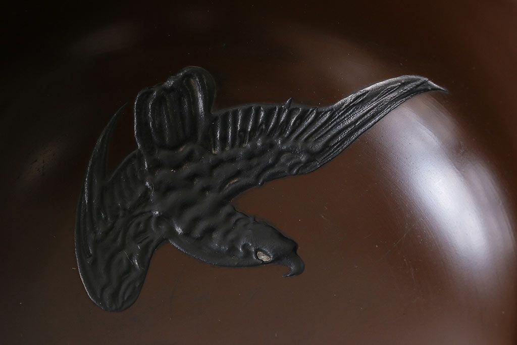 ラフジュ工房> 骨董・美術品> 骨董-漆器 > 和製アンティーク 花鳥図 金彩が鮮やかな木製漆器小鉢(向付、小皿、和食器)