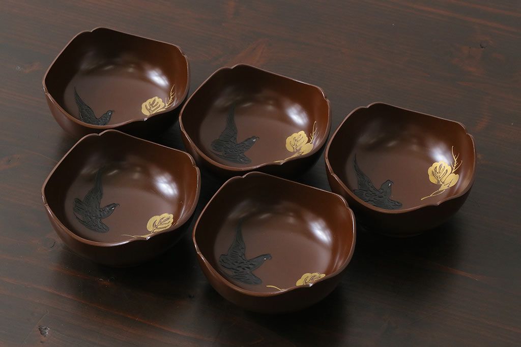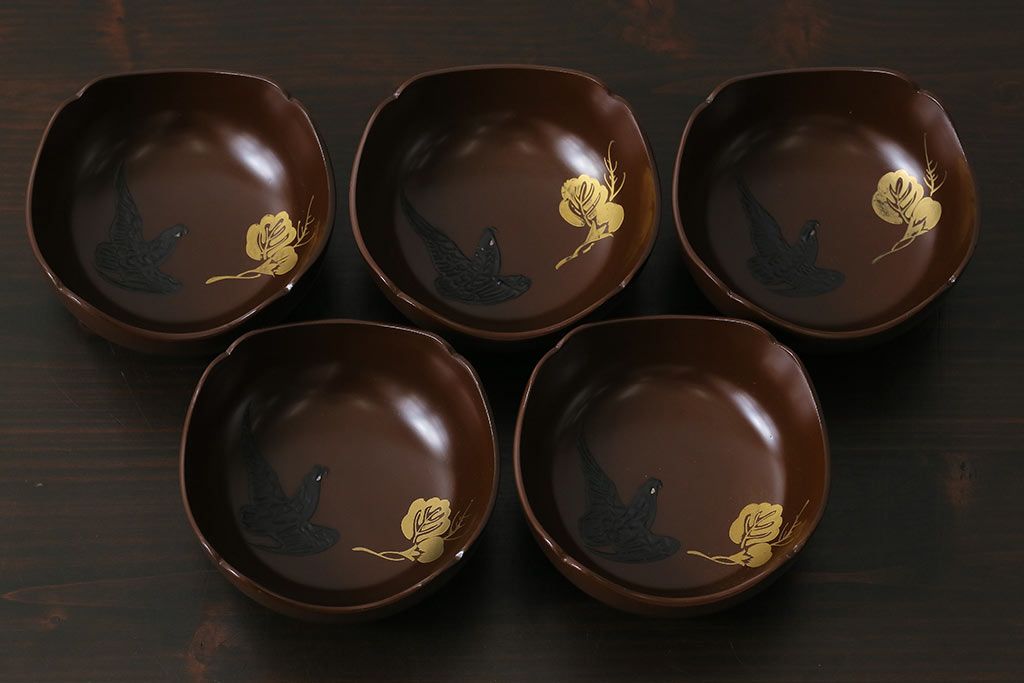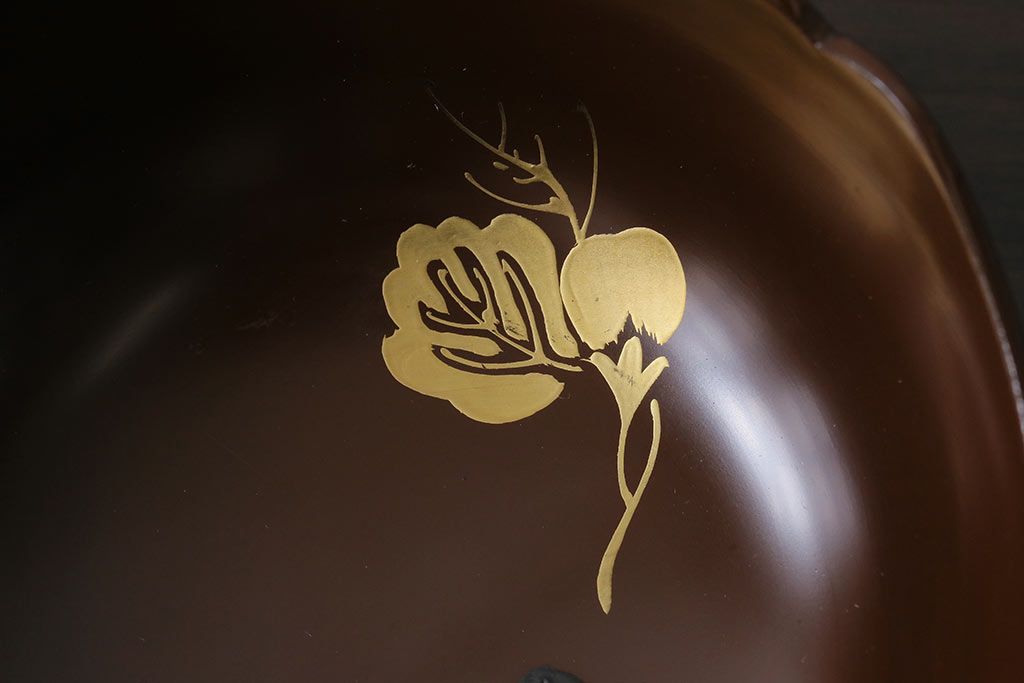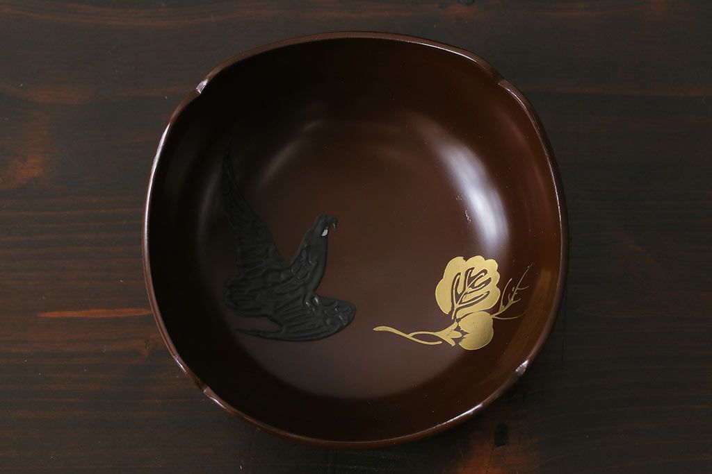 ラフジュ工房> 和食器・茶道具> 鉢 > 和製アンティーク 花鳥図 金彩が鮮やかな木製漆器小鉢(向付、小皿、和食器)(1)