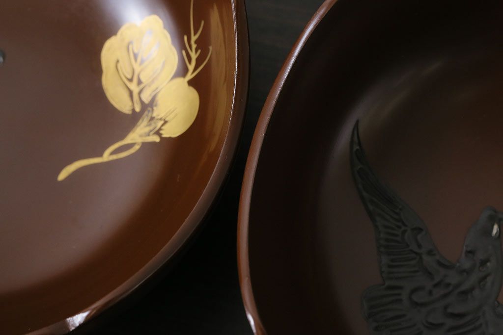 ラフジュ工房> 和食器・茶道具> 皿 > 和製アンティーク 花鳥図 金彩が鮮やかな木製漆器小鉢(向付、小皿、和食器)(1)