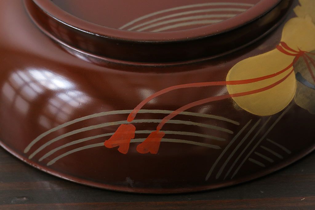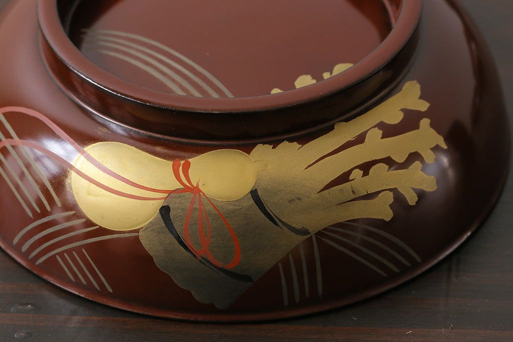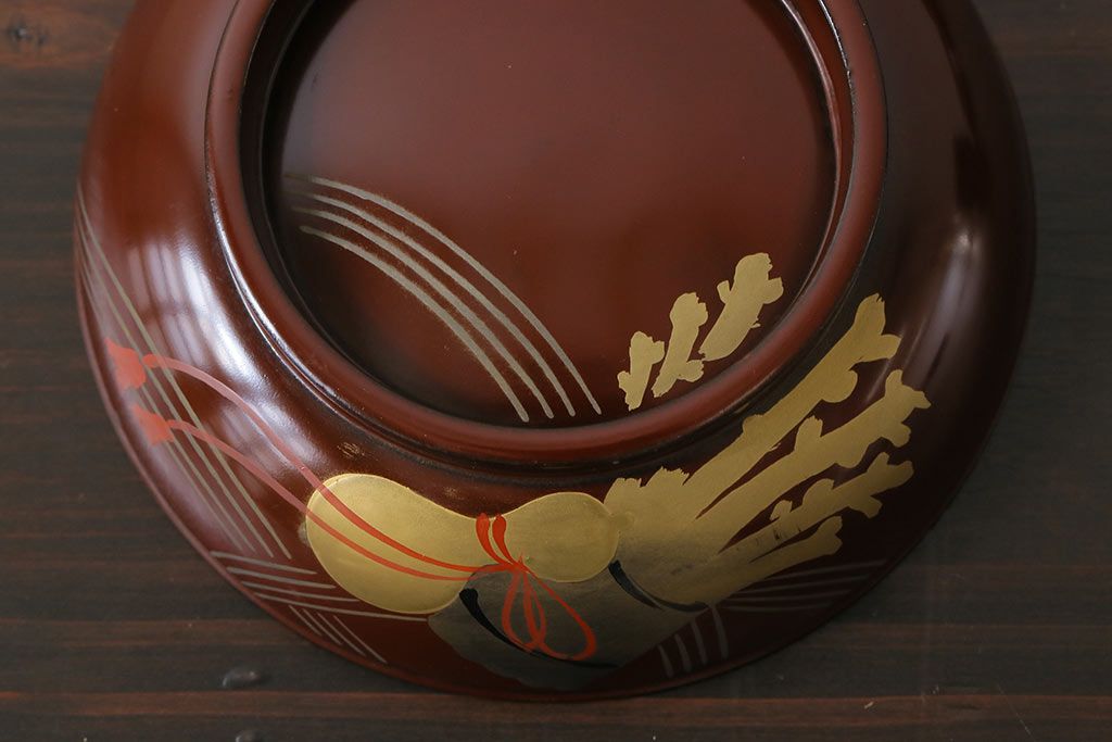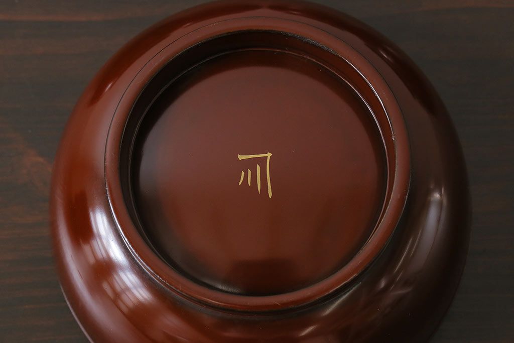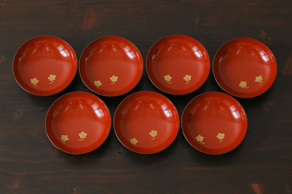 ラフジュ工房> 骨董・美術品> 骨董-漆器 > アンティーク雑貨 和製アンティーク 瓢箪の図 シックな雰囲気の木製お椀(漆器、和食器)7客セット