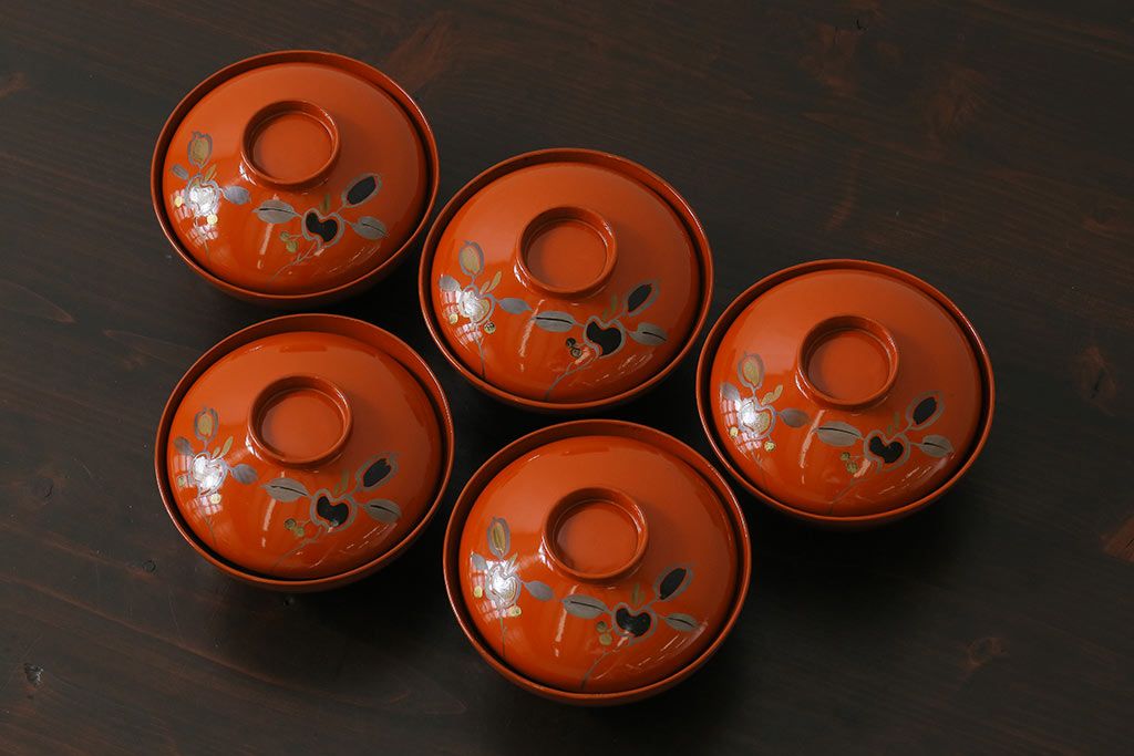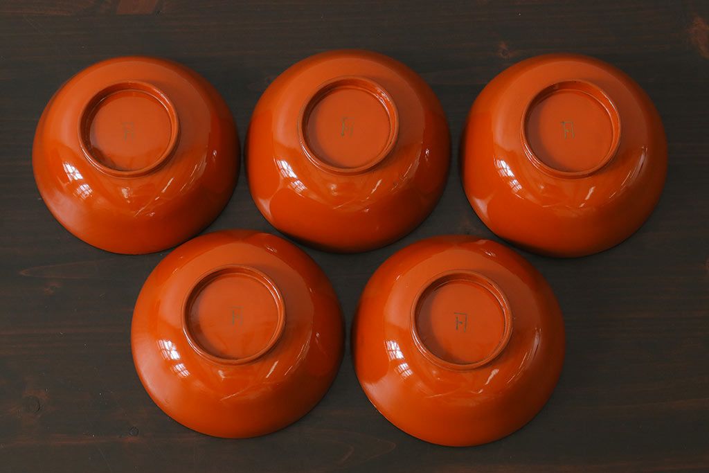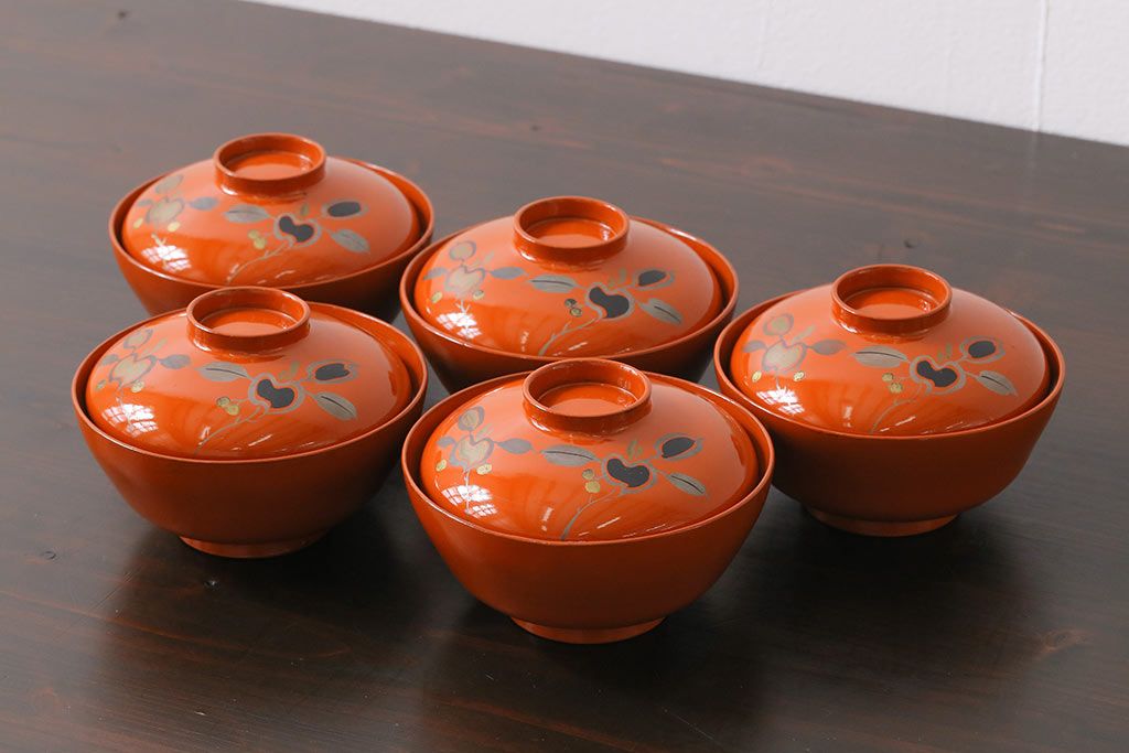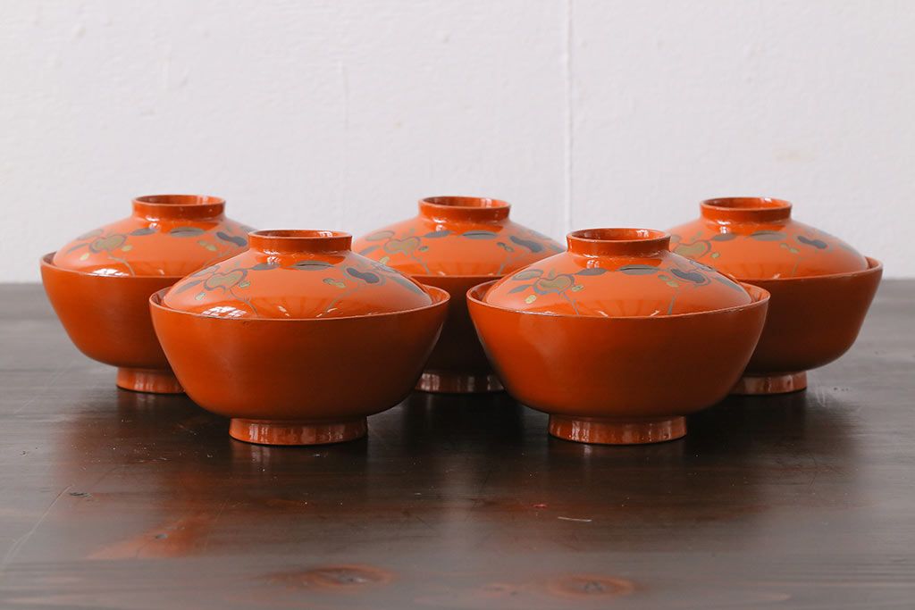 ラフジュ工房> 和食器・茶道具> お椀・茶碗 > 和製アンティーク 色合いが味わい深い木製お椀(漆器、和食器)5客セット