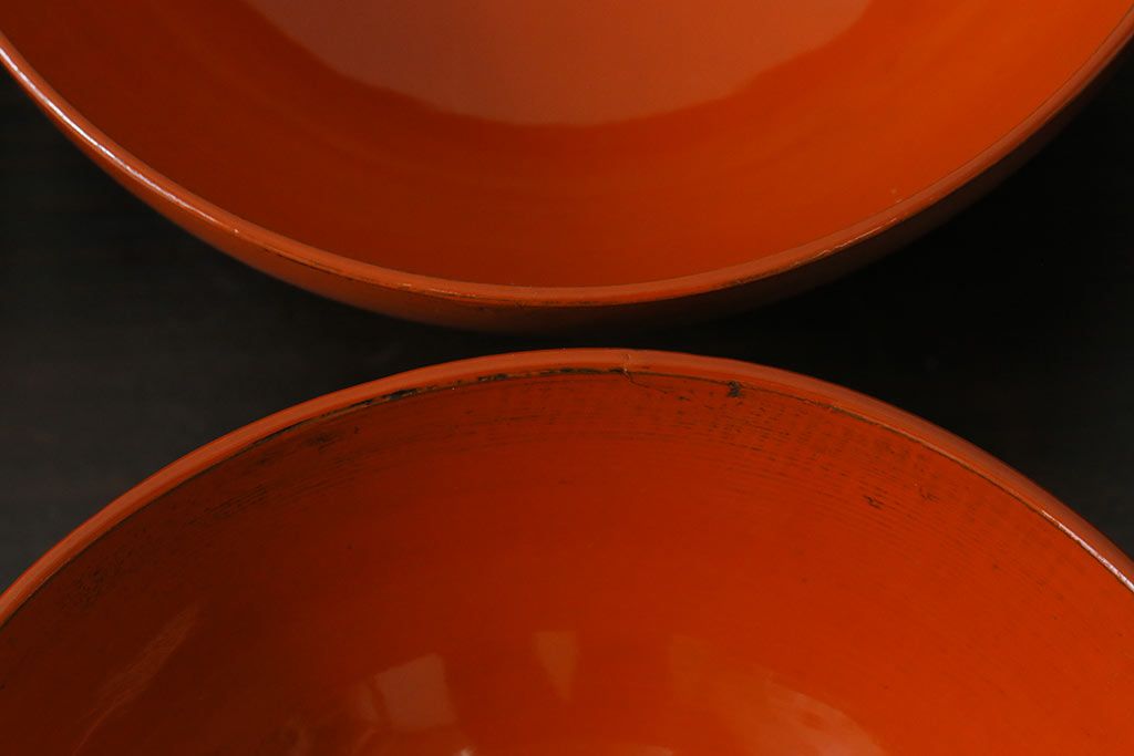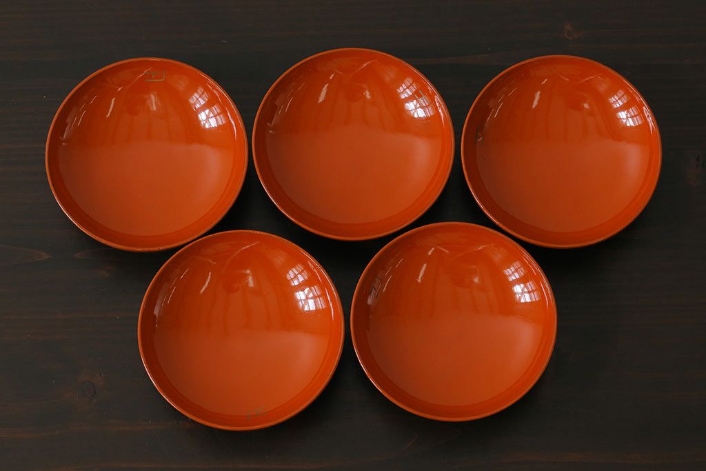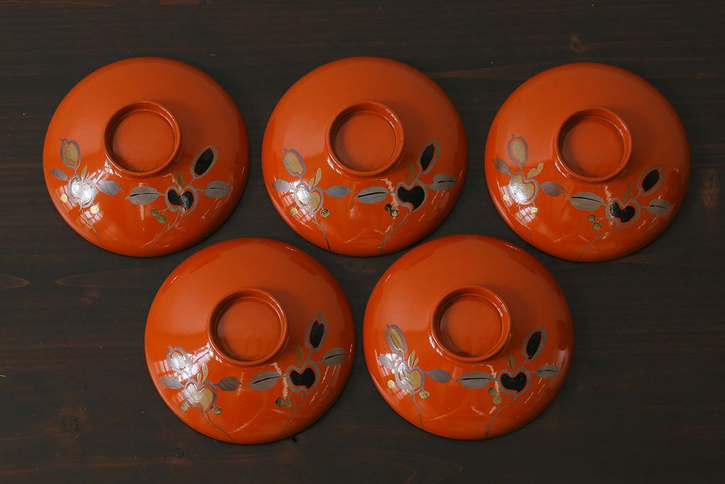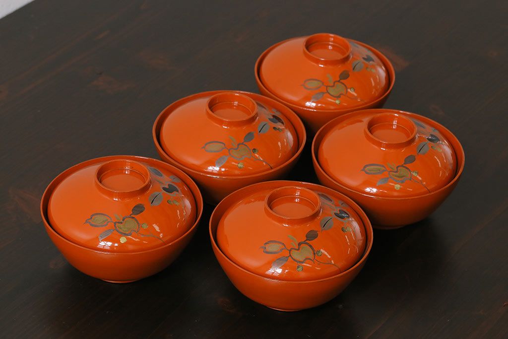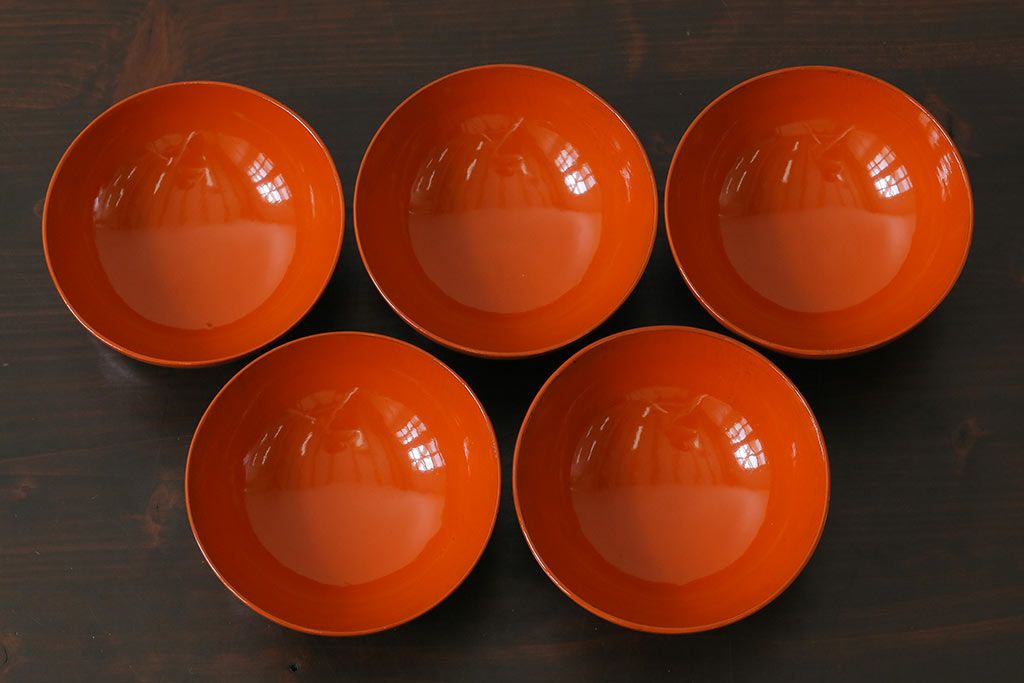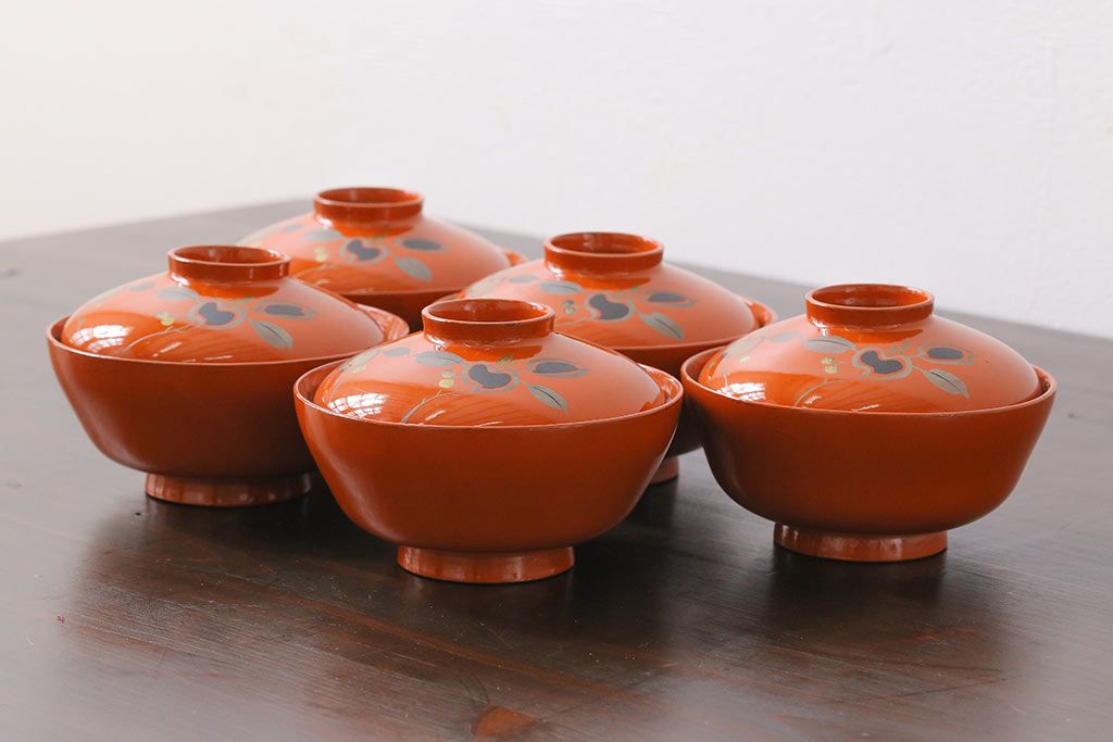 ラフジュ工房> 骨董・美術品> 骨董-漆器 > 和製アンティーク 色合いが味わい深い木製お椀(漆器、和食器)5客セット