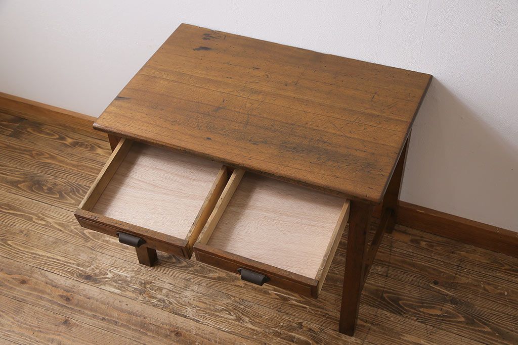 ラフジュ工房> テーブル> サイドテーブル > アンティーク家具 昭和期 栓材 シンプルで素朴な雰囲気が魅力の子供用平机(サイドテーブル、カフェテーブル)