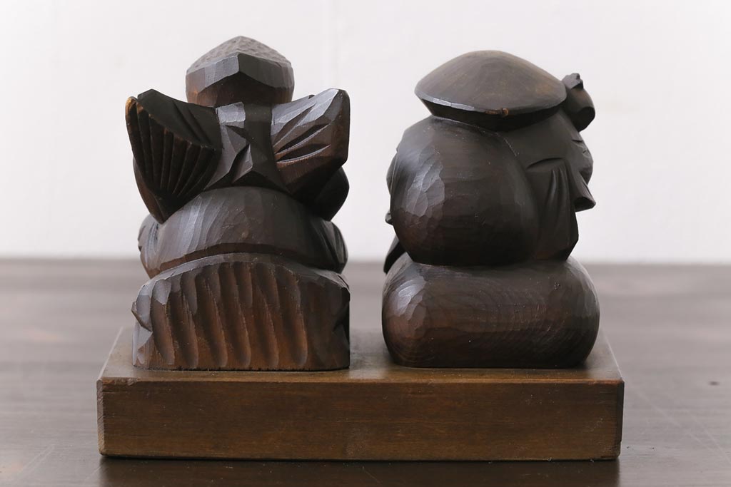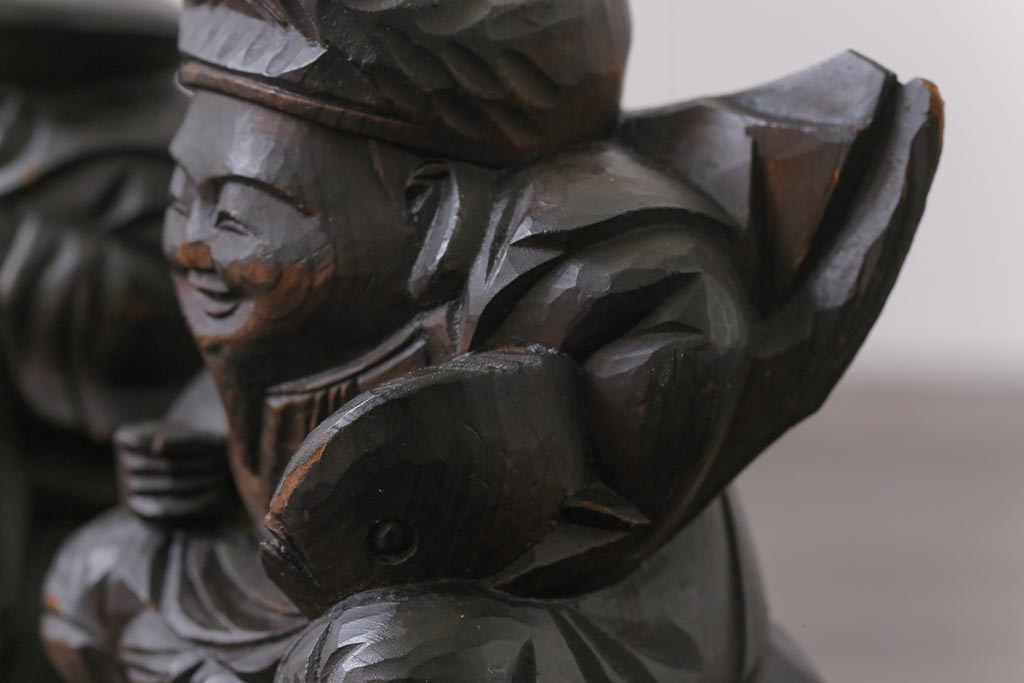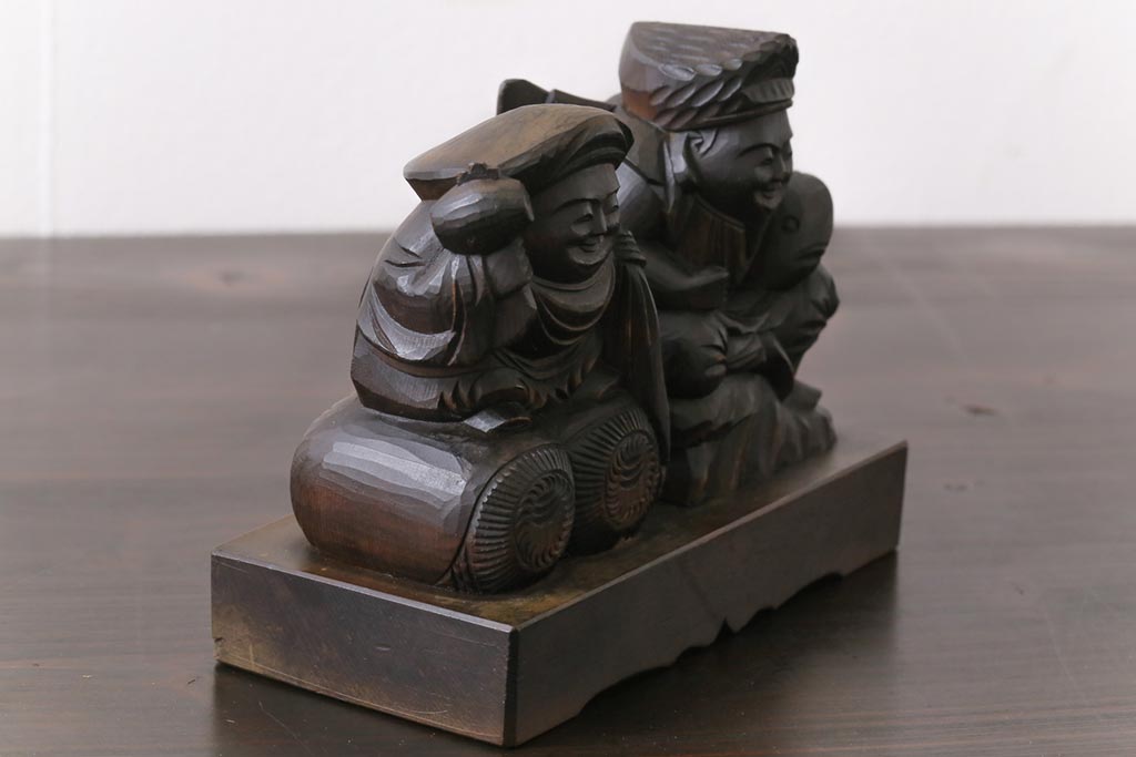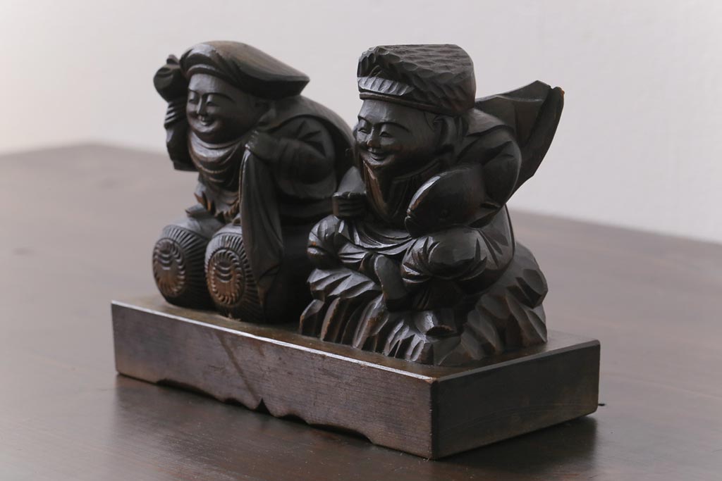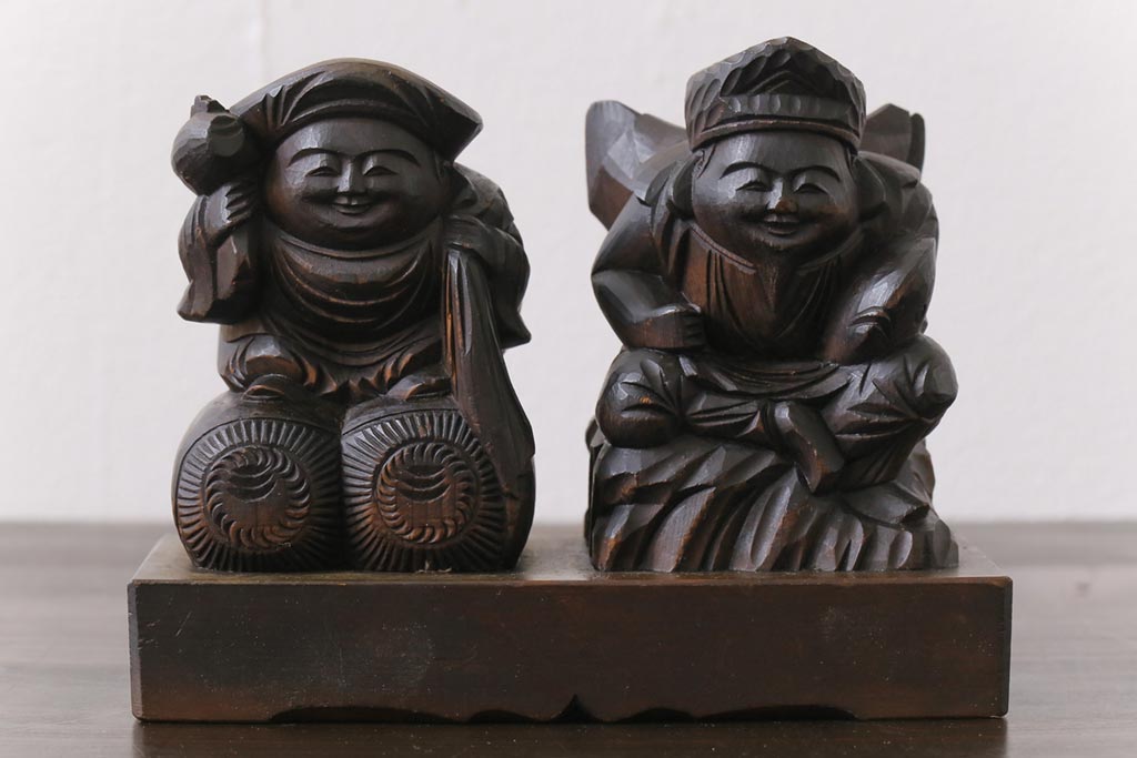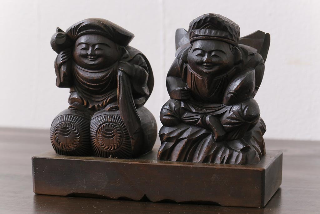 アンティーク雑貨 和製アンティーク 大黒天・恵比寿天 柔らかな表情が縁起の良い木彫りの置物
