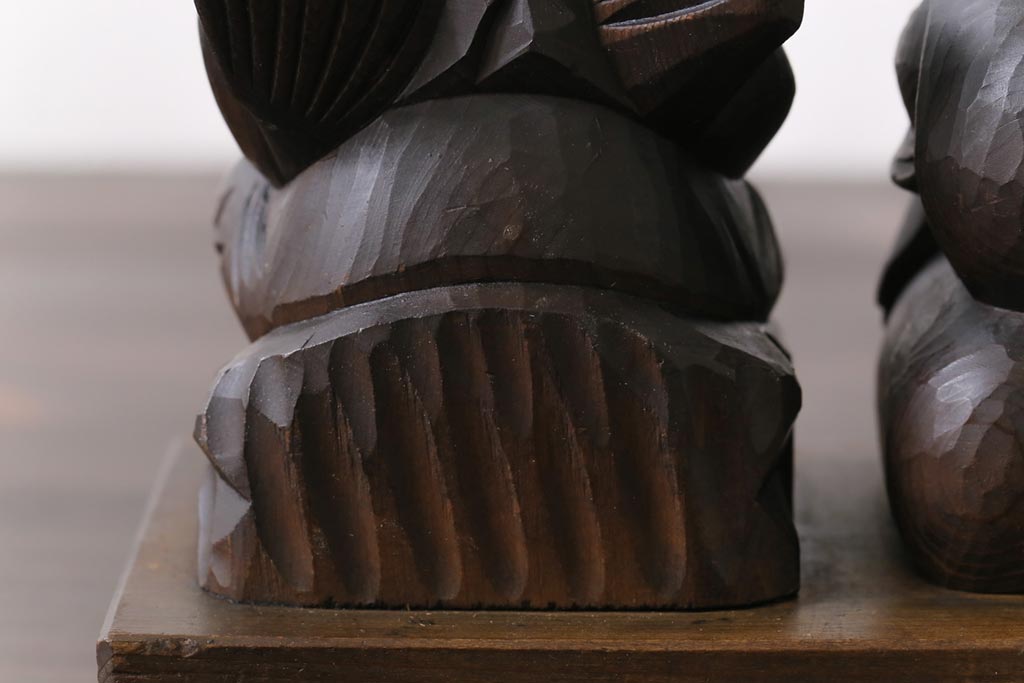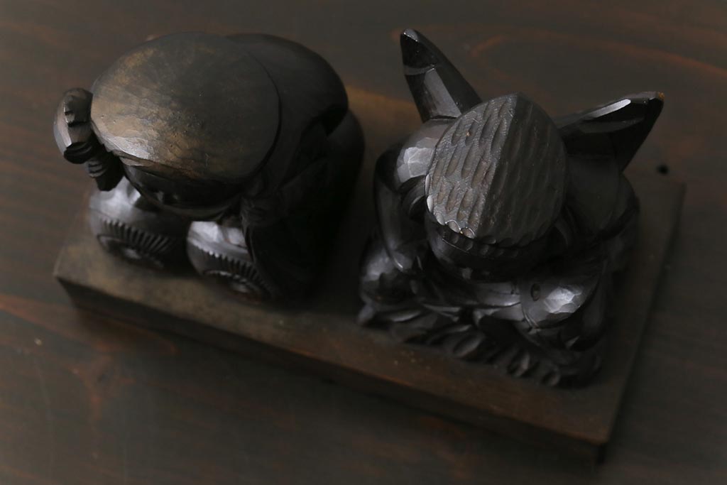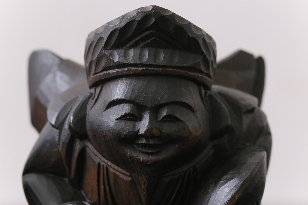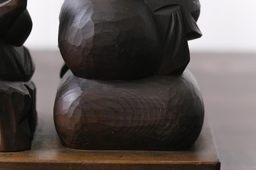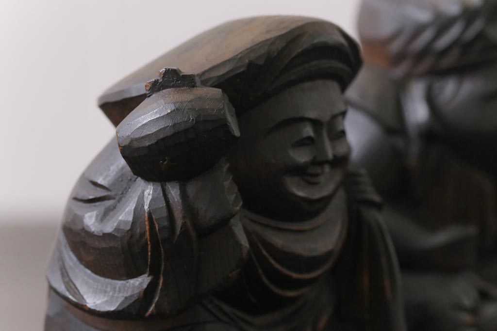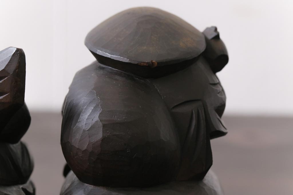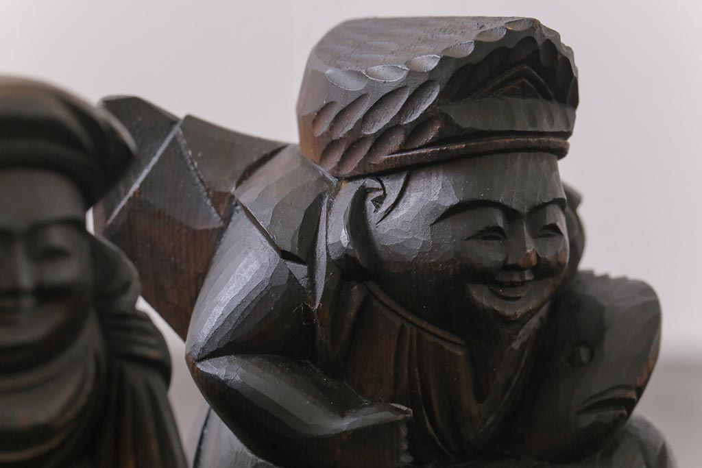 アンティーク雑貨 和製アンティーク 大黒天・恵比寿天 柔らかな表情が縁起の良い木彫りの置物