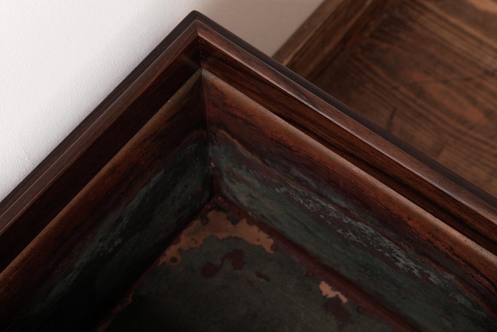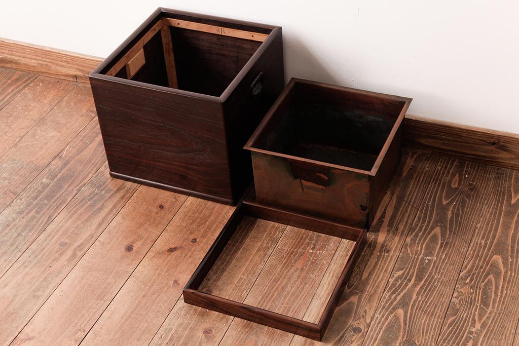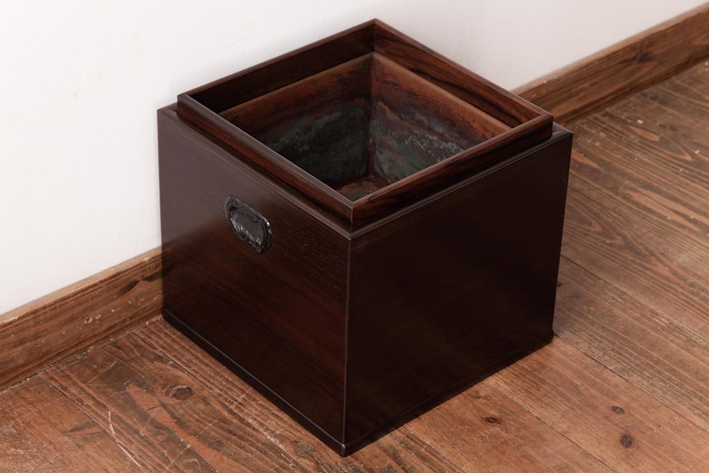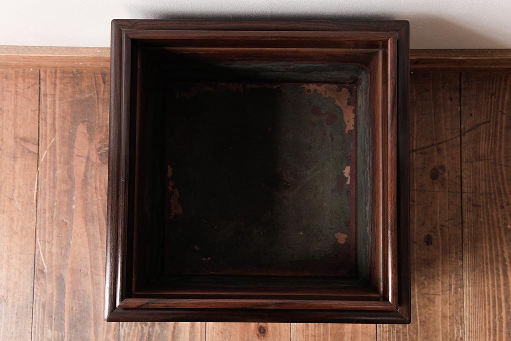 火鉢> 木製火鉢 > アンティーク雑貨 和製アンティーク 上手物 指物 本紫檀 上品な雰囲気漂う高級箱火鉢(角火鉢、手あぶり)