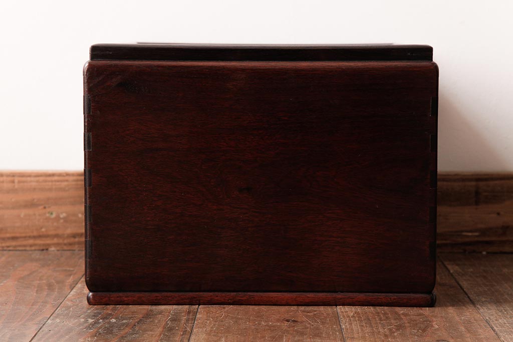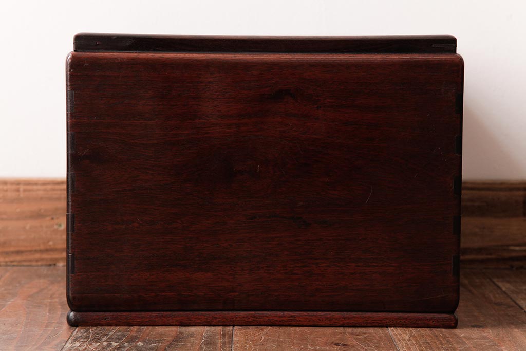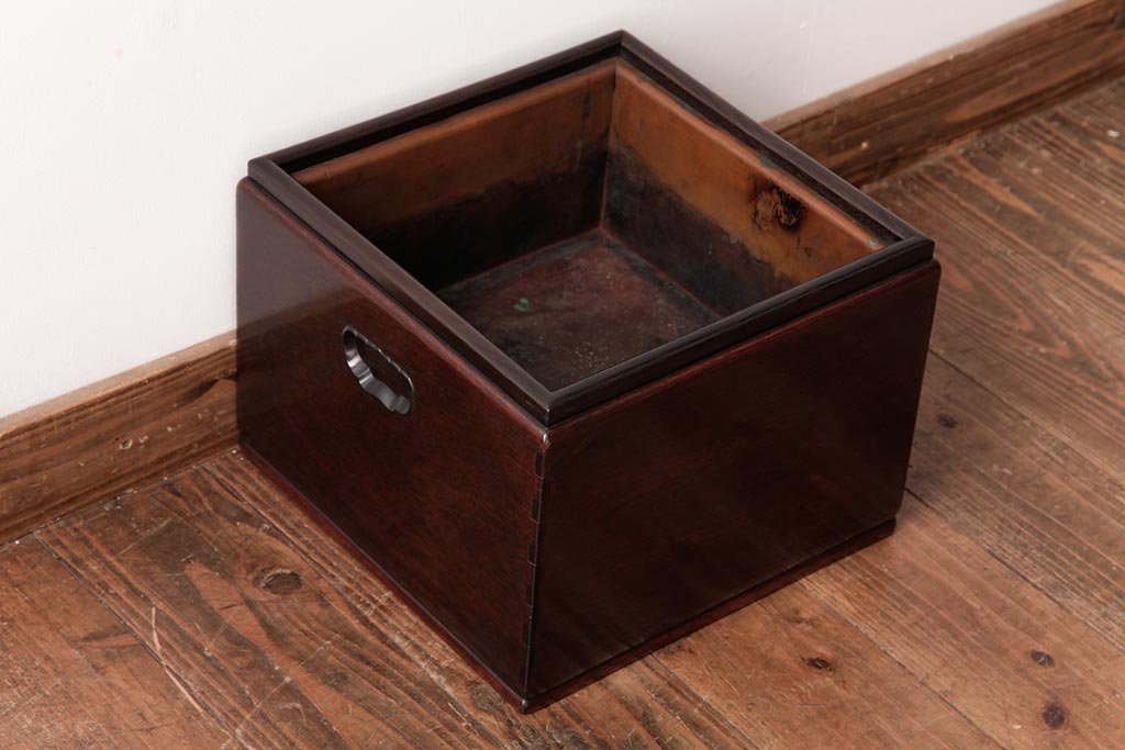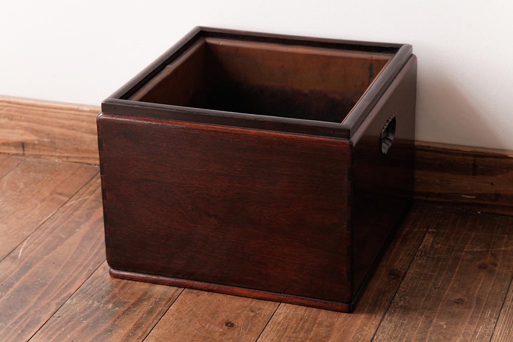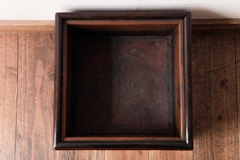 火鉢> 木製火鉢 > アンティーク雑貨 和製アンティーク 唐木 花梨材の艶が美しい角火鉢(木製火鉢、手焙り、カリン材)