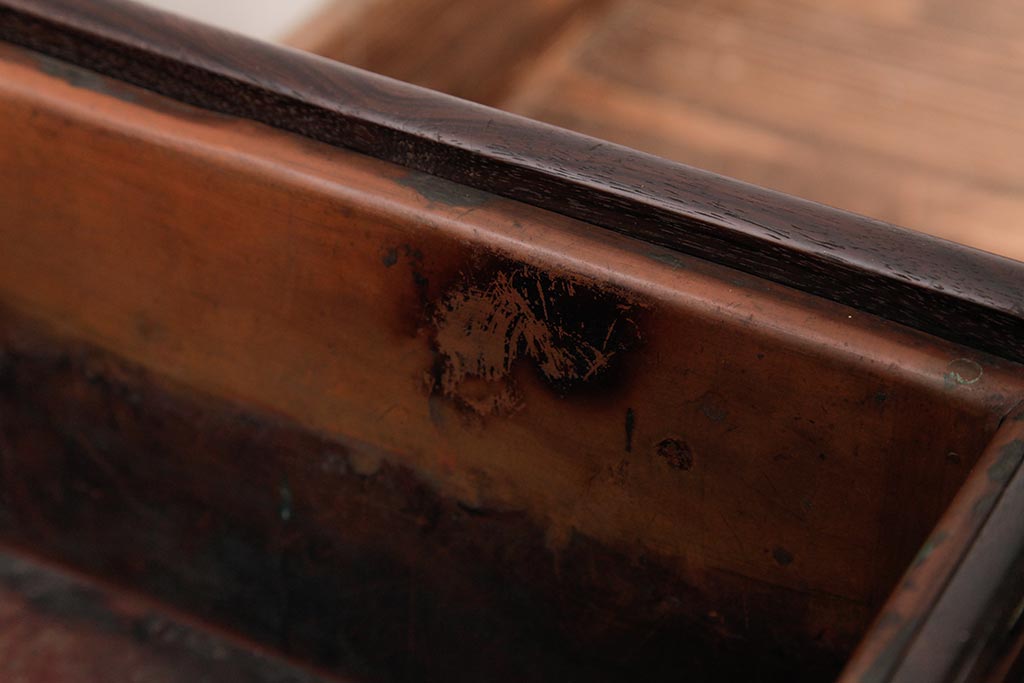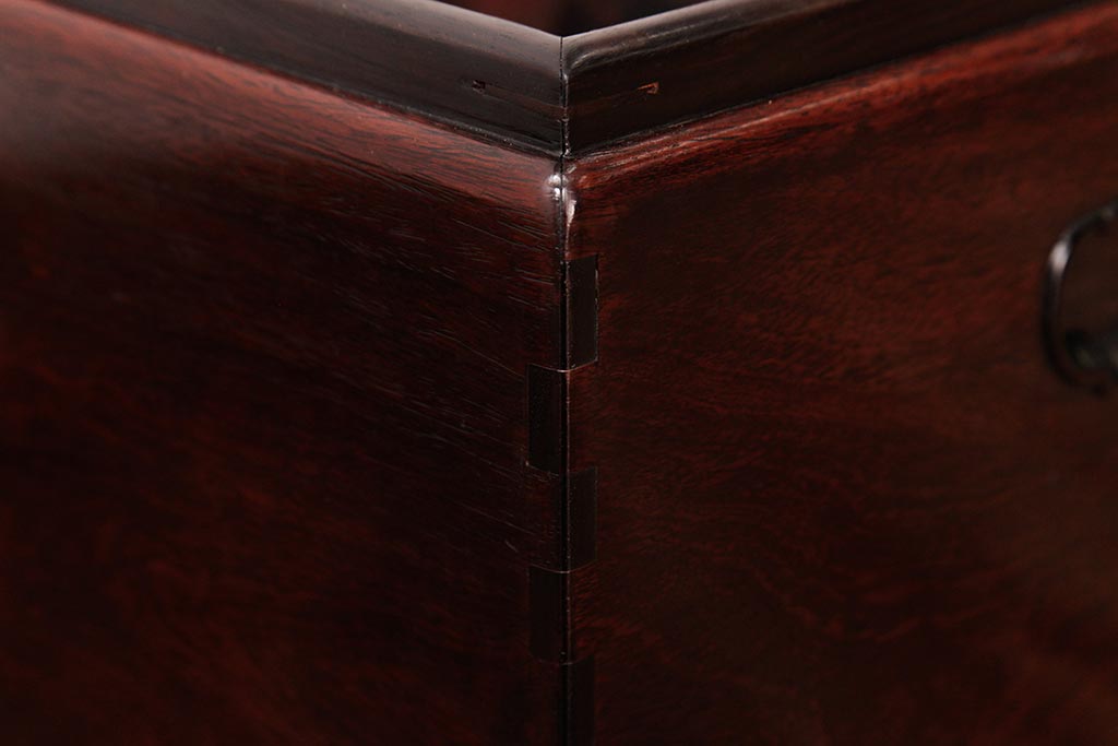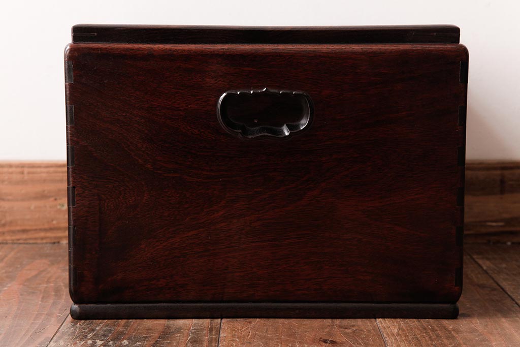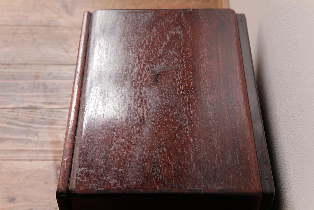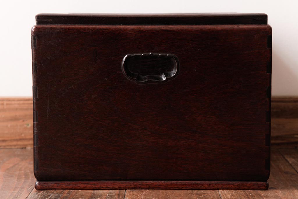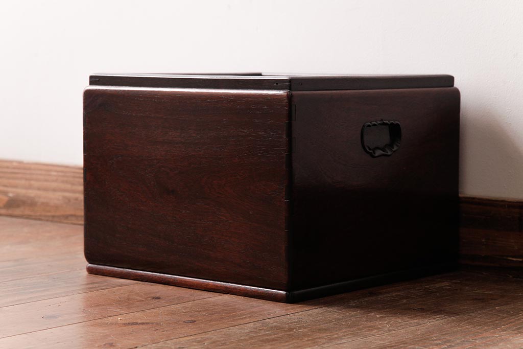 火鉢> 木製火鉢 > アンティーク雑貨 和製アンティーク 唐木 花梨材の艶が美しい角火鉢(木製火鉢、手焙り、カリン材)