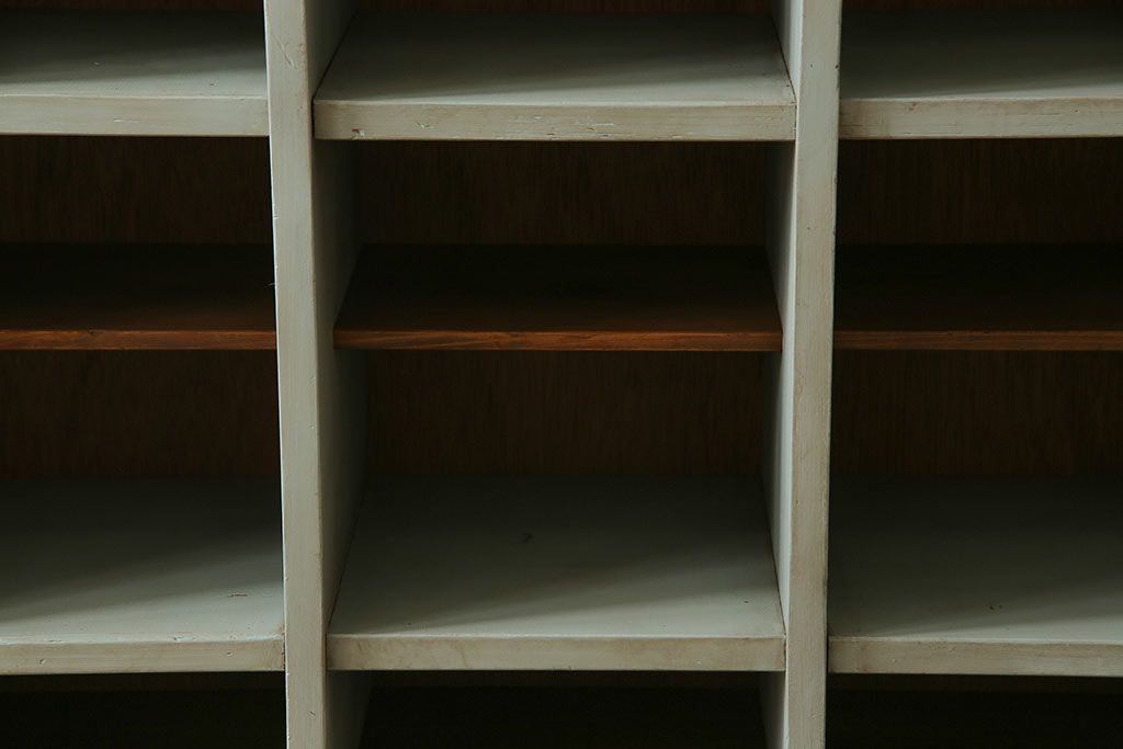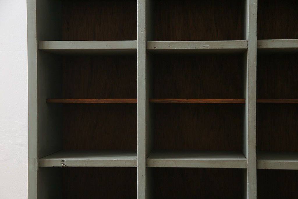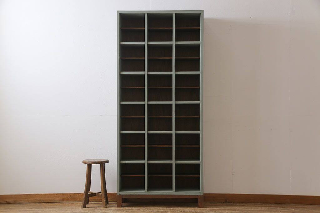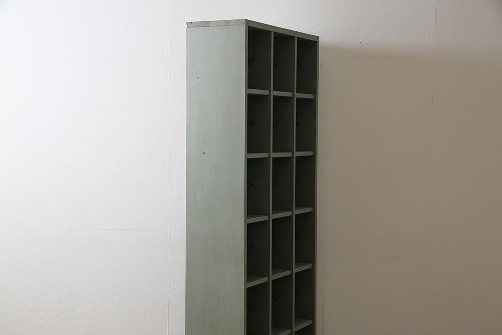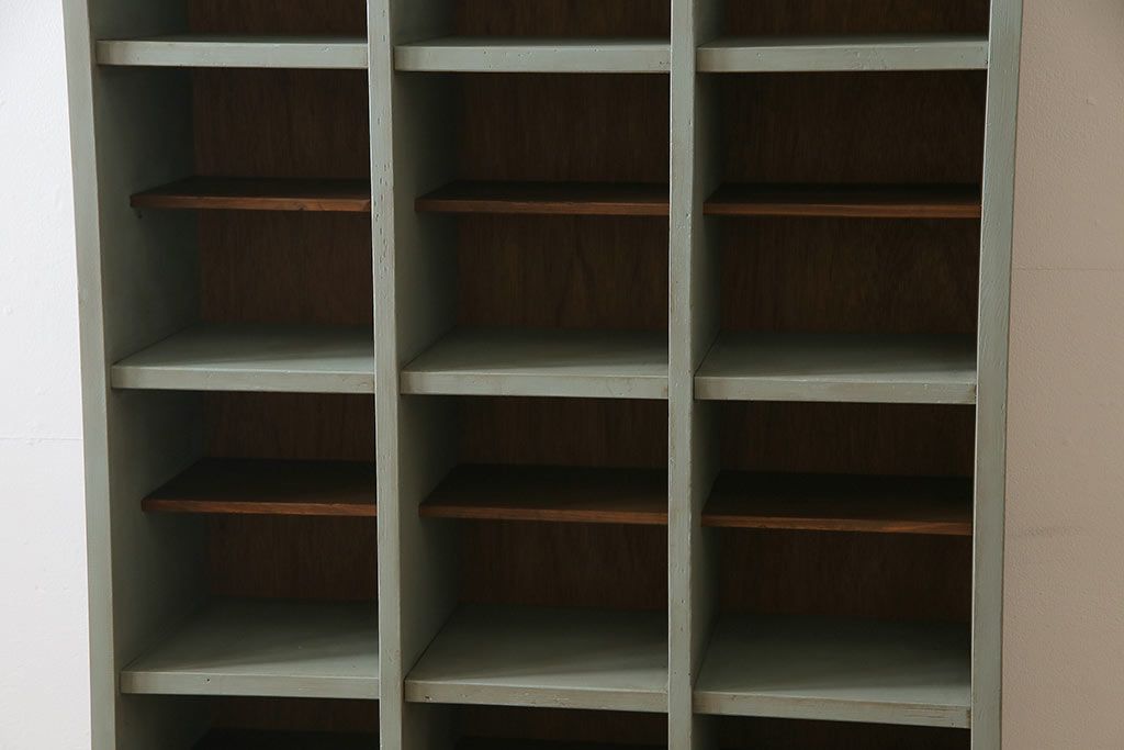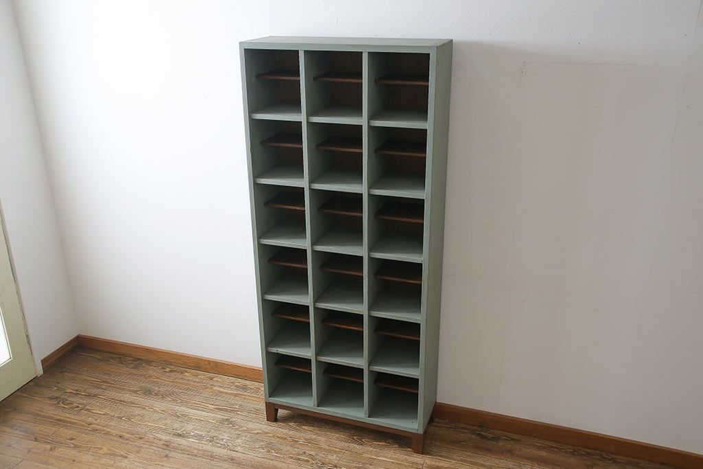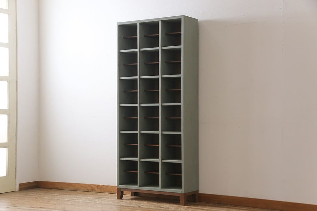 ラフジュ工房> ワードローブ・ロッカー> ロッカー > ペイント家具 リメイク 落ち着いた色合いの縦長マス目棚(下駄箱、オープンラック、収納棚、ロッカー)(R-032425)