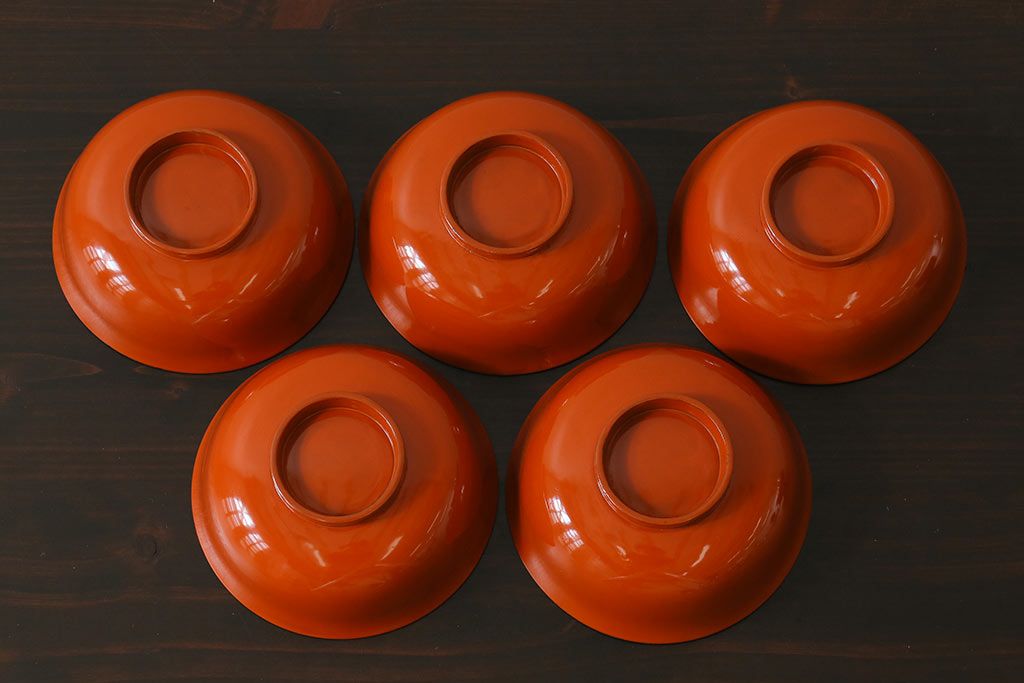 ラフジュ工房> 和食器・茶道具> お椀・茶碗 > 和製アンティーク 松・鶴図柄 縁起物の蒔絵が美しい木製椀5客セット(漆器、和食器)