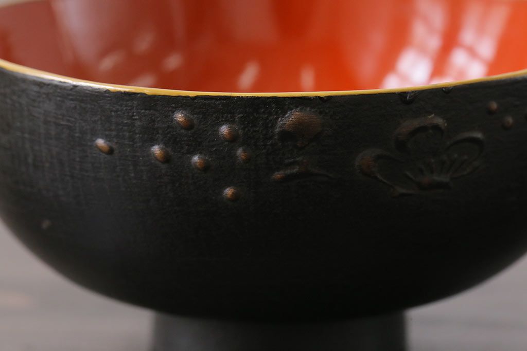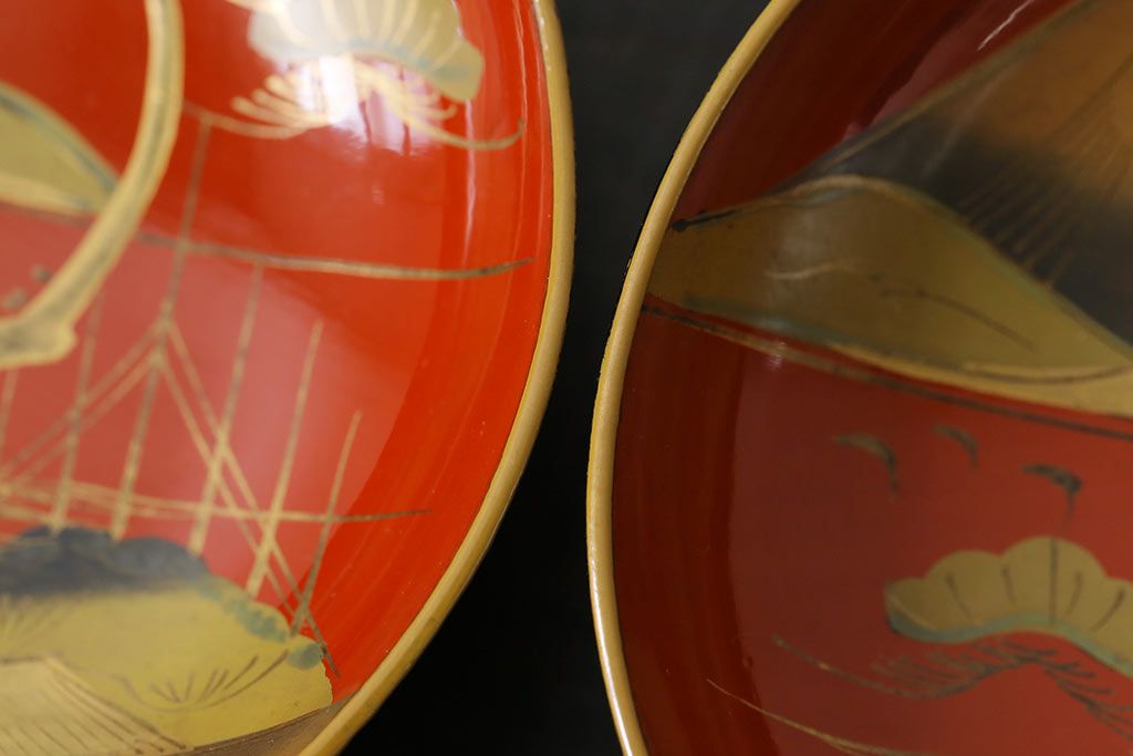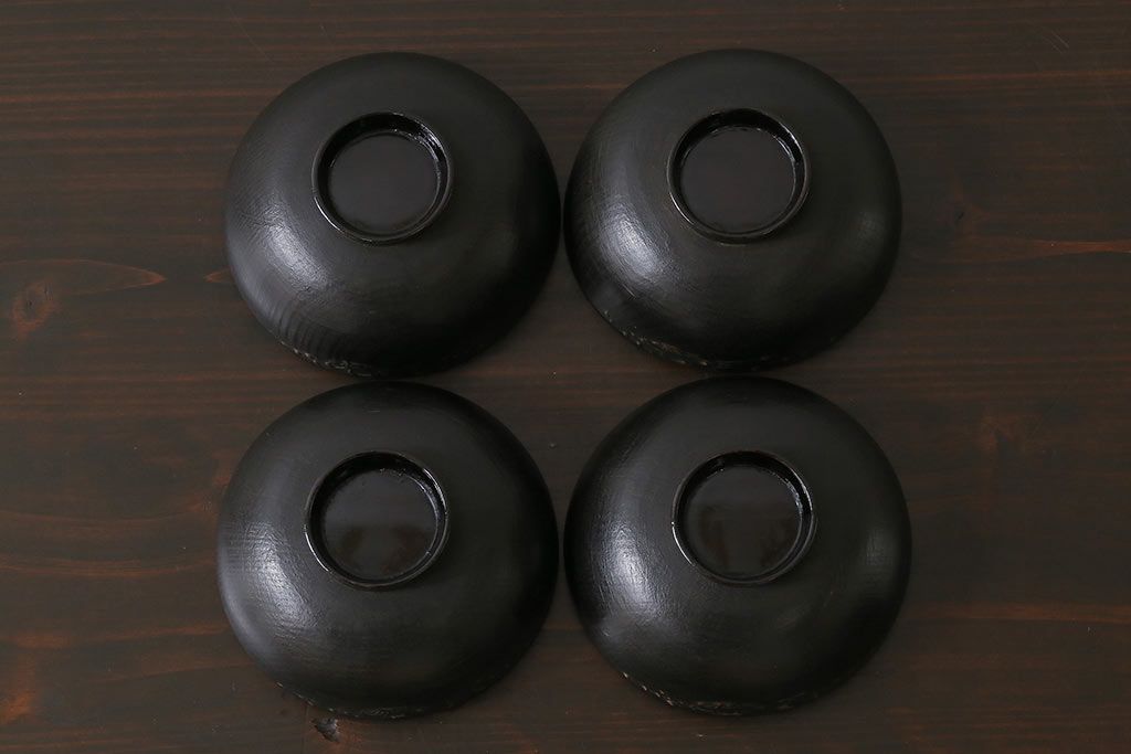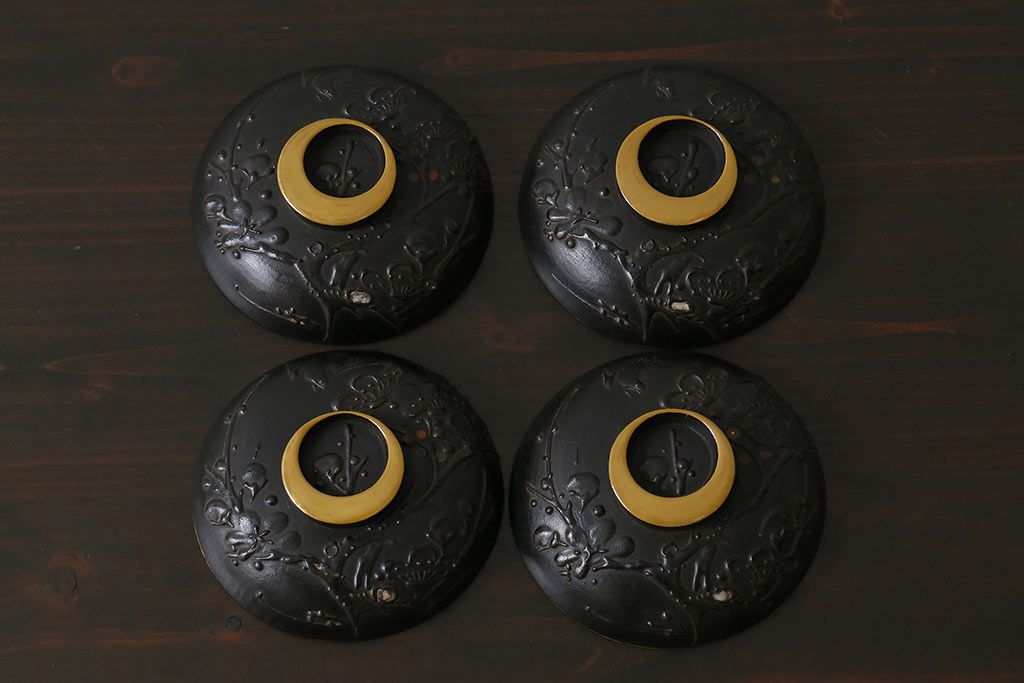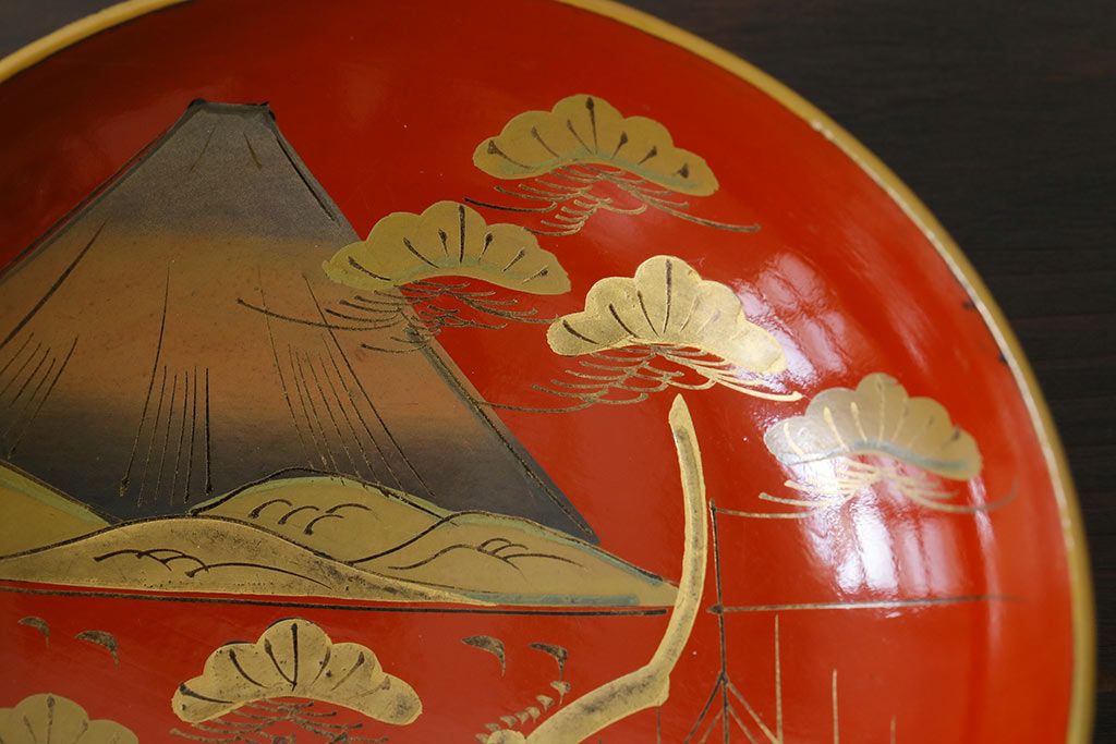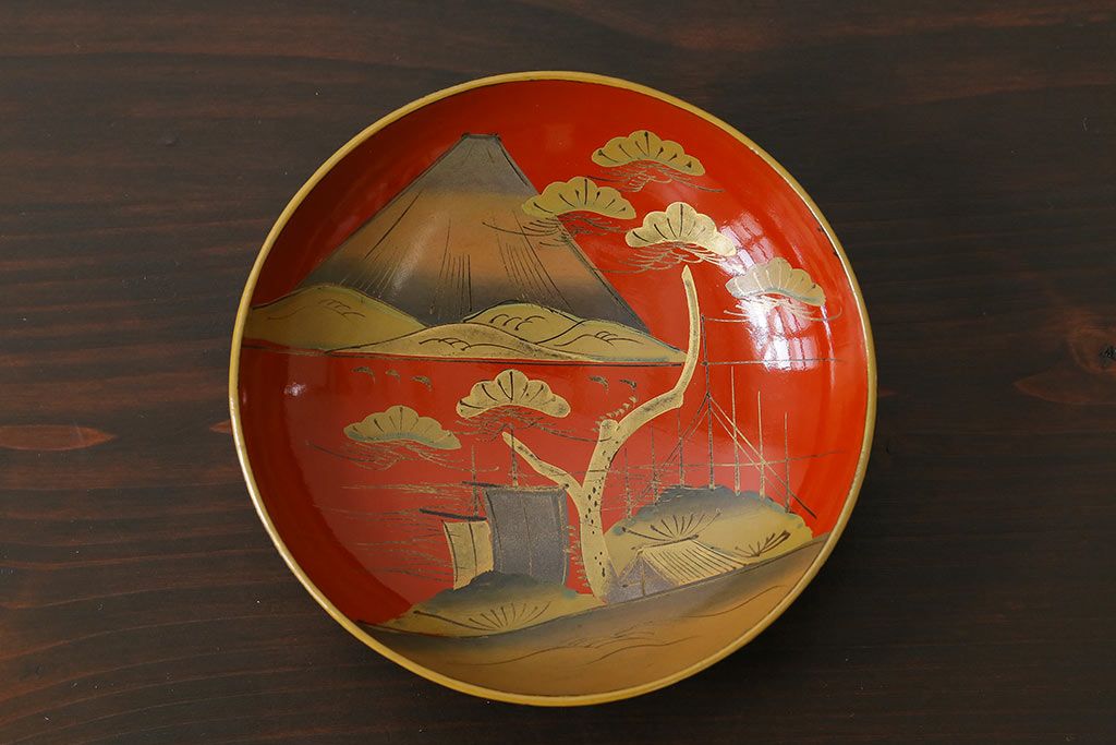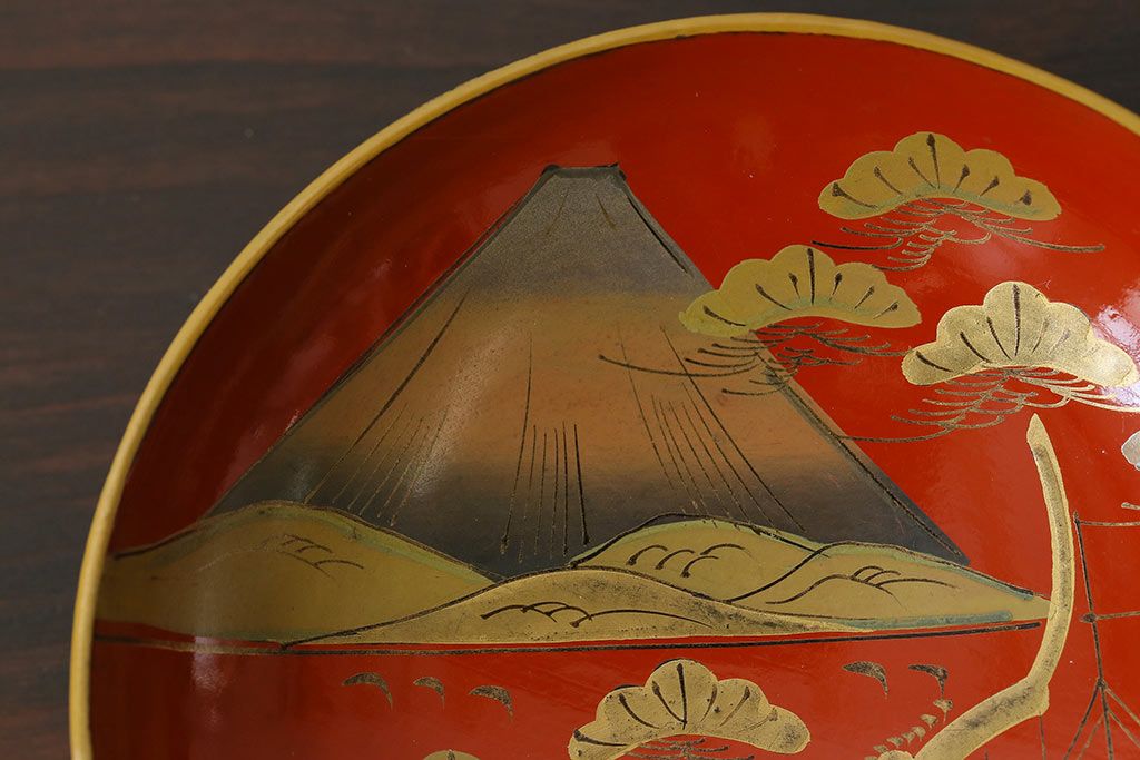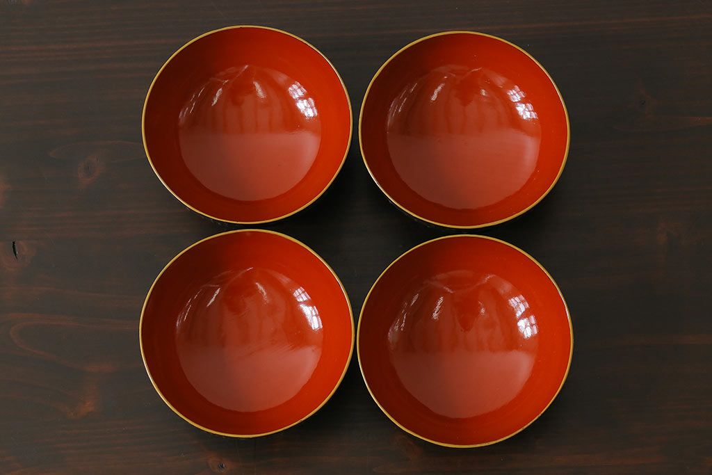 ラフジュ工房> 和食器・茶道具> お椀・茶碗 > 和製アンティーク 鉄錆蒔絵 赤富士の図 和モダンな蓋付椀(漆器)4客セット