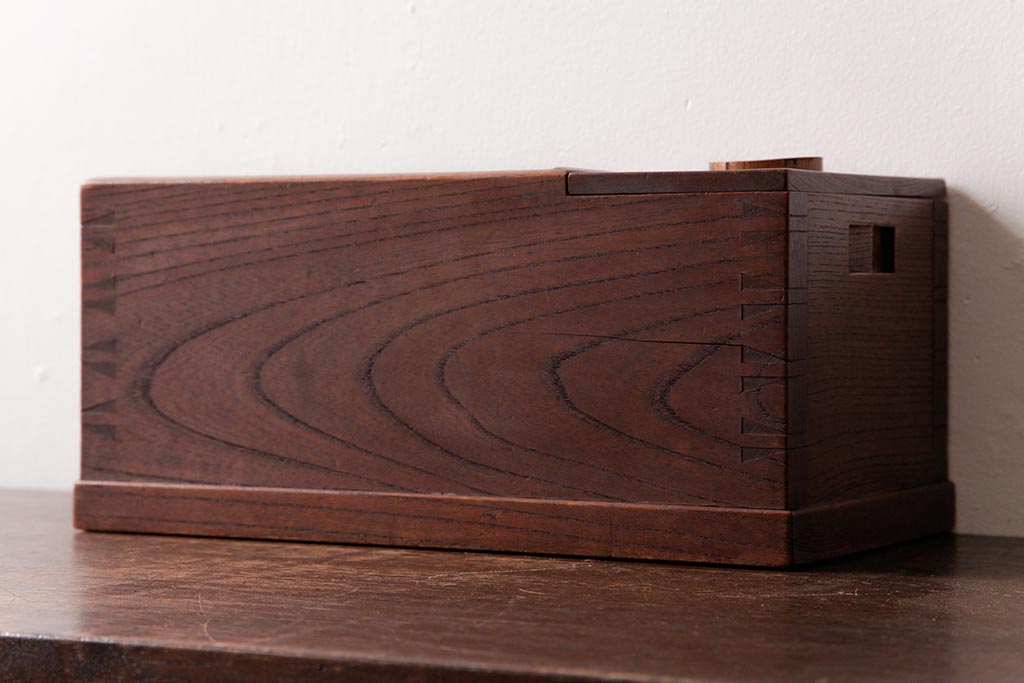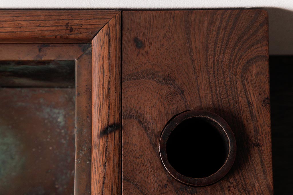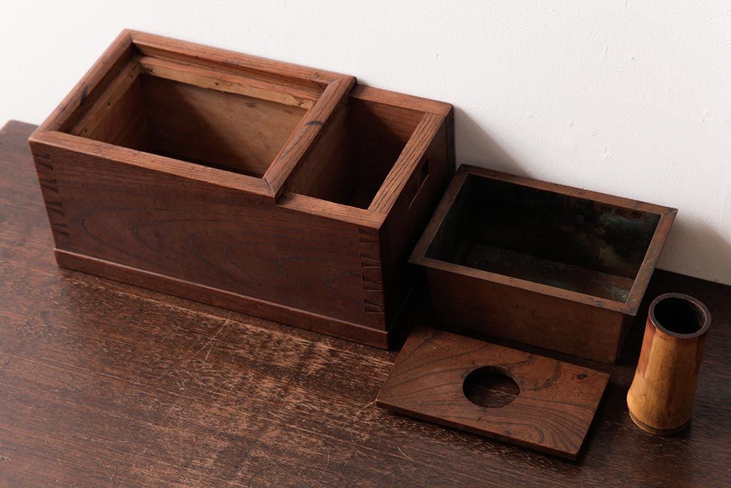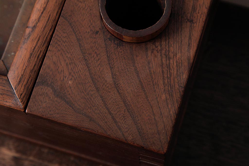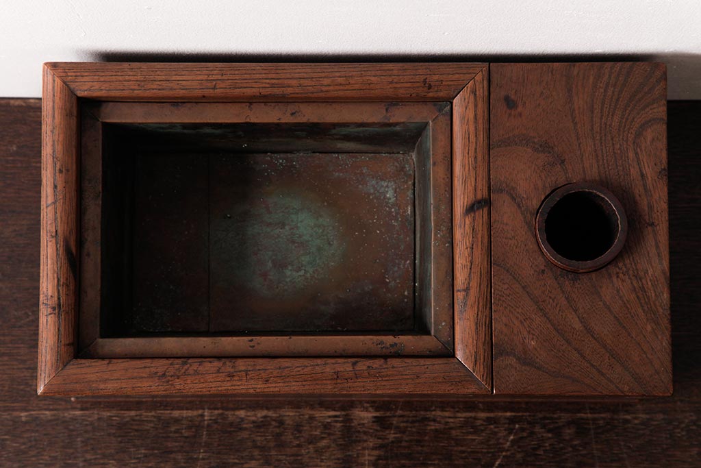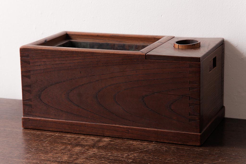 火鉢> 木製火鉢 > アンティーク雑貨 和製アンティーク 和の雰囲気を引き立てる総ケヤキ材の煙草盆(木製火鉢、植木鉢)