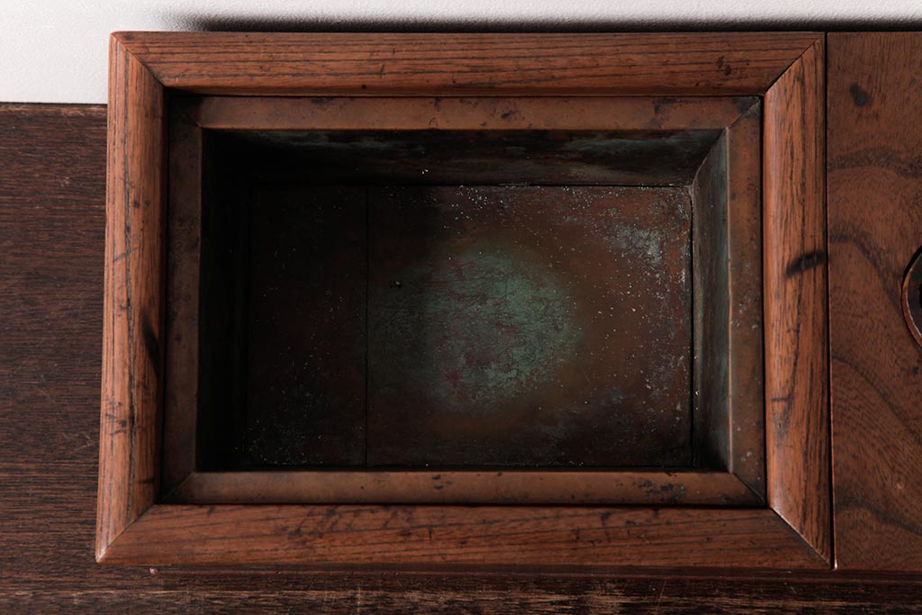 アンティーク雑貨 和製アンティーク 和の雰囲気を引き立てる総ケヤキ材の煙草盆(木製火鉢、植木鉢)