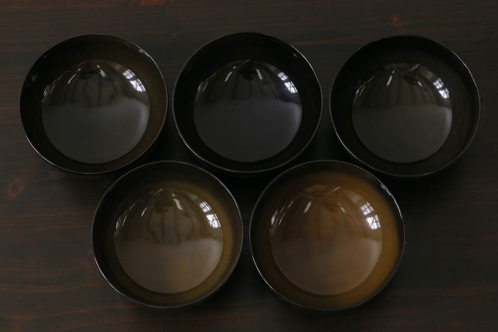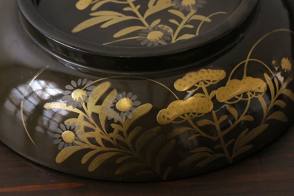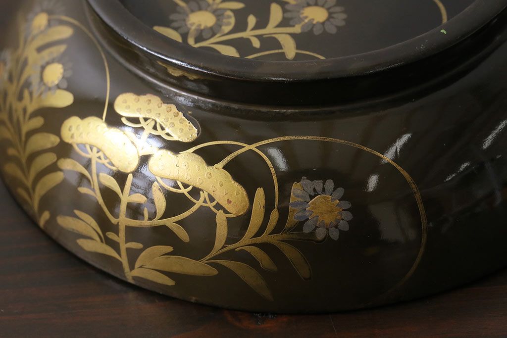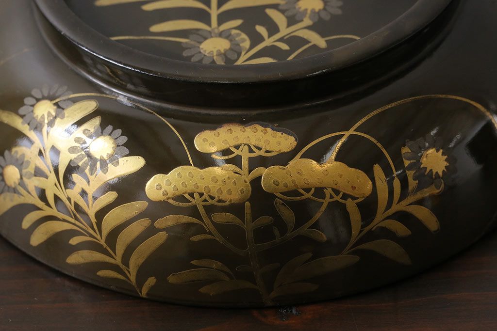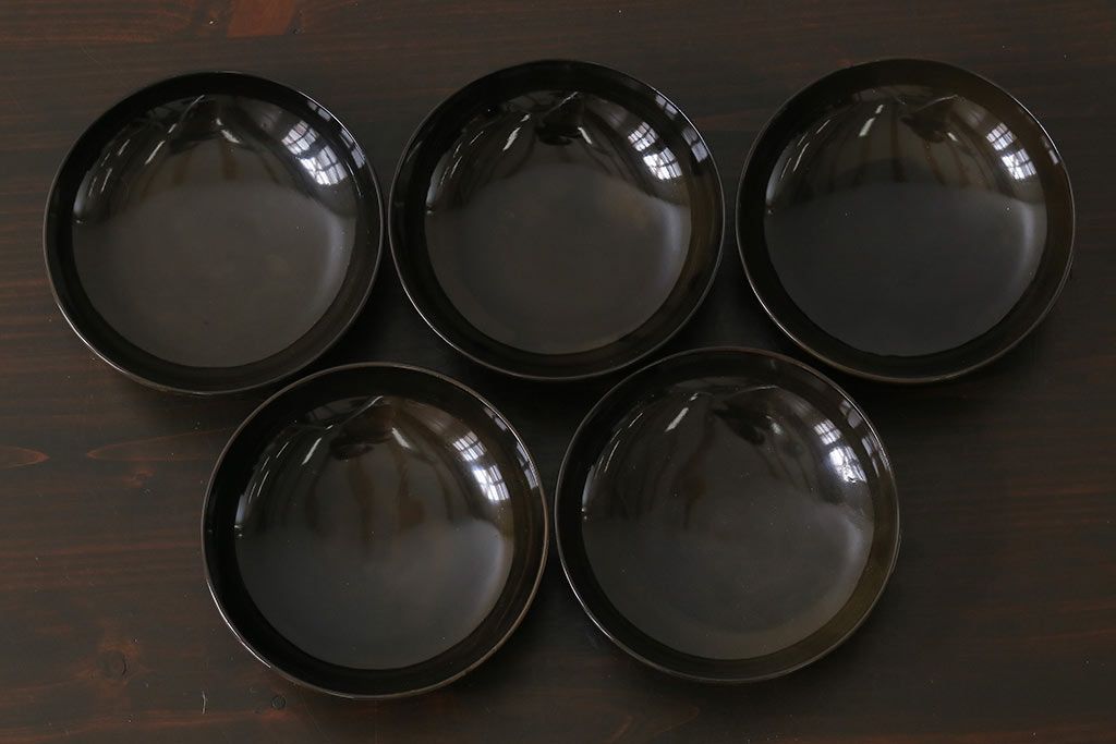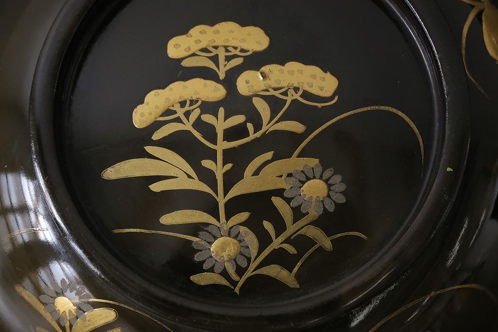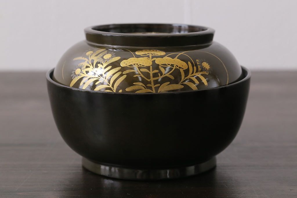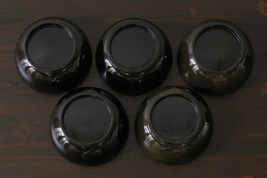 和製アンティーク 大正昭和初期 蝶や草花の蒔絵が品のある木製のお椀5客セット(漆器)