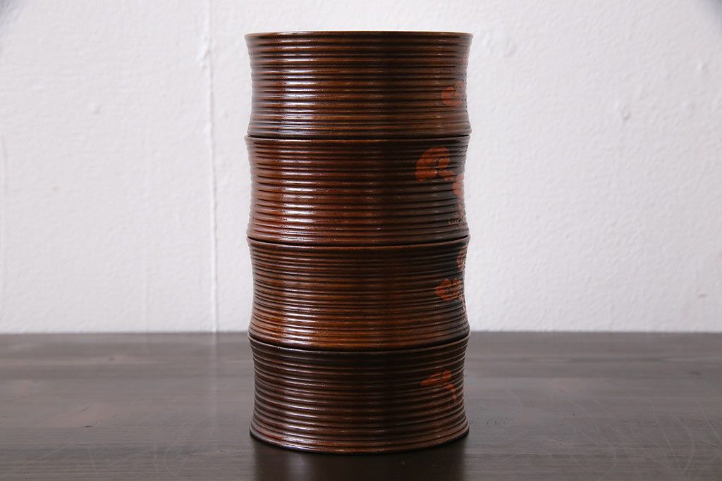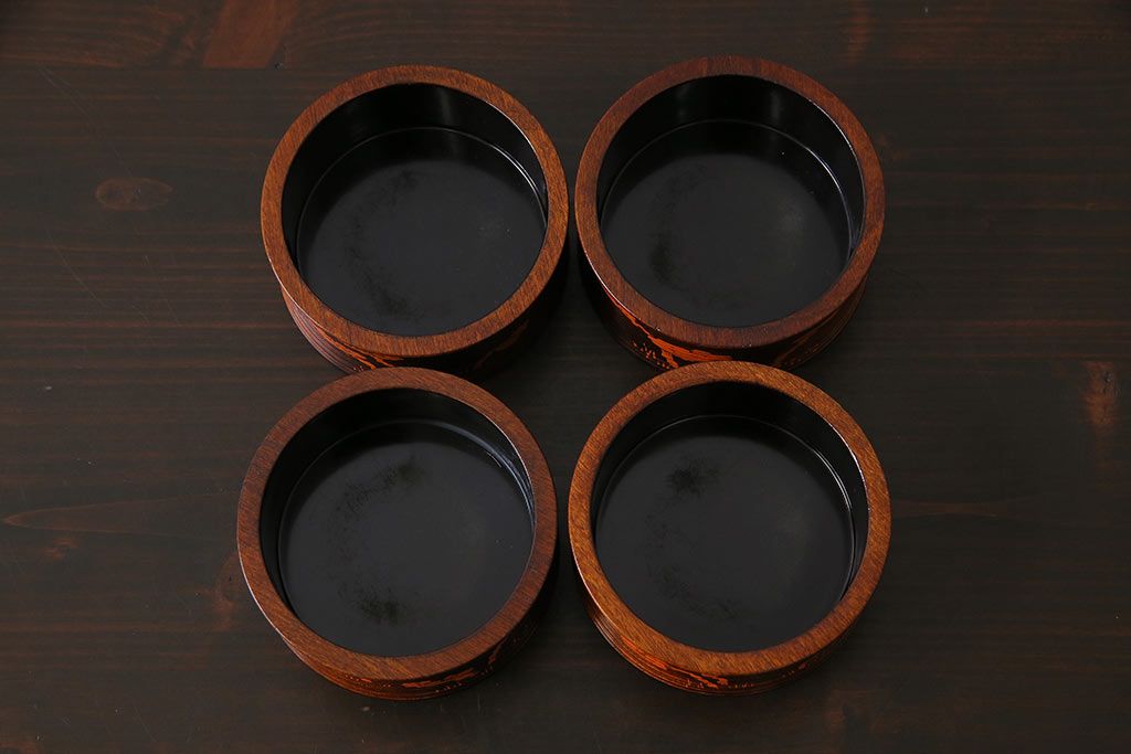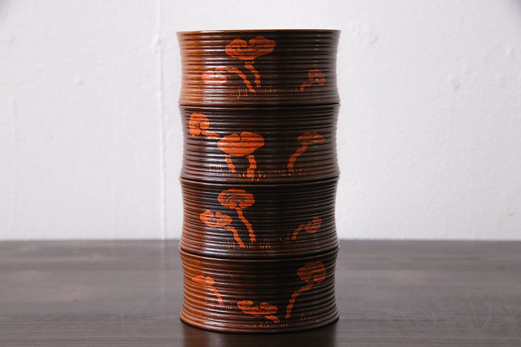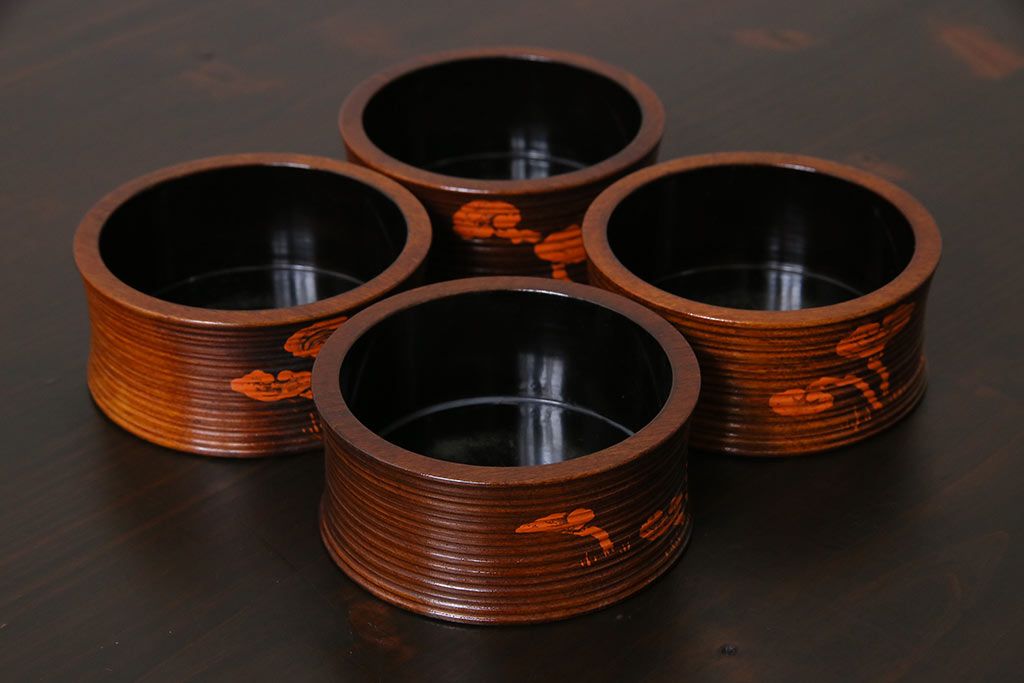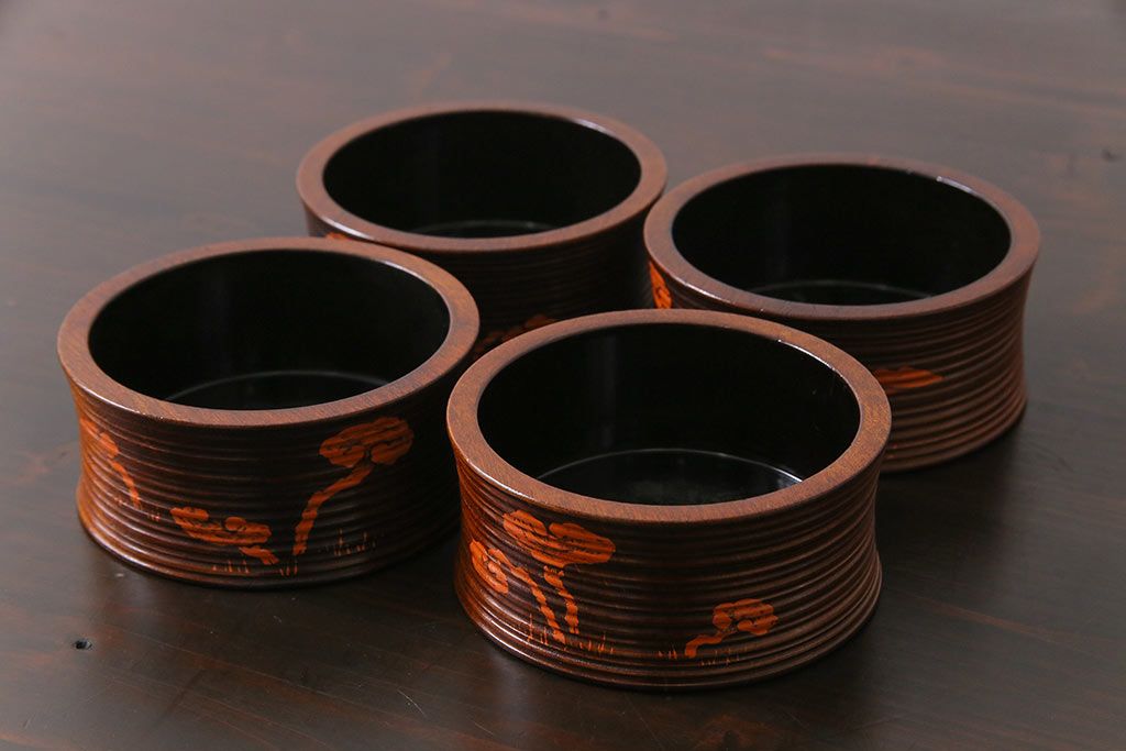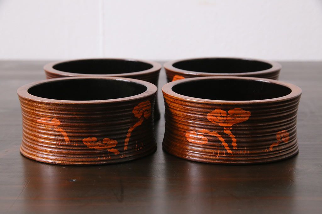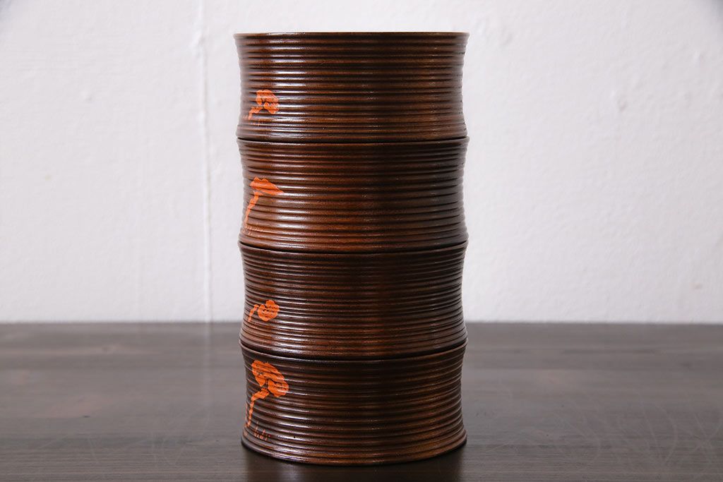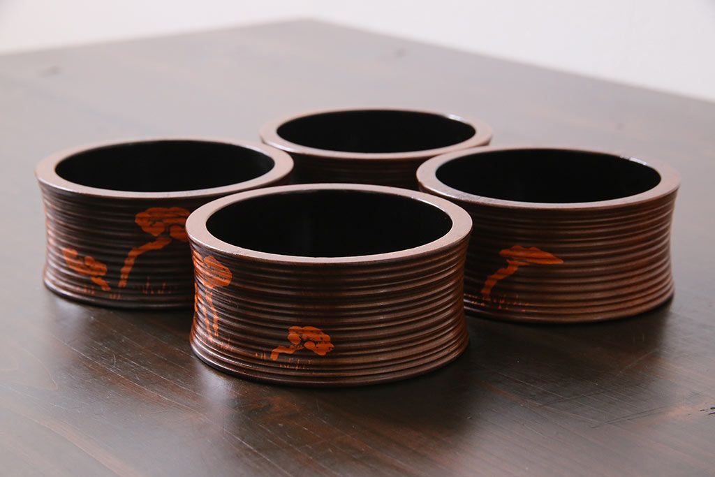 アンティーク雑貨 大正昭和初期 木製漆器 竹をモチーフにした徳利袴4客セット(小物入れ)
