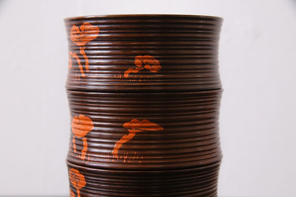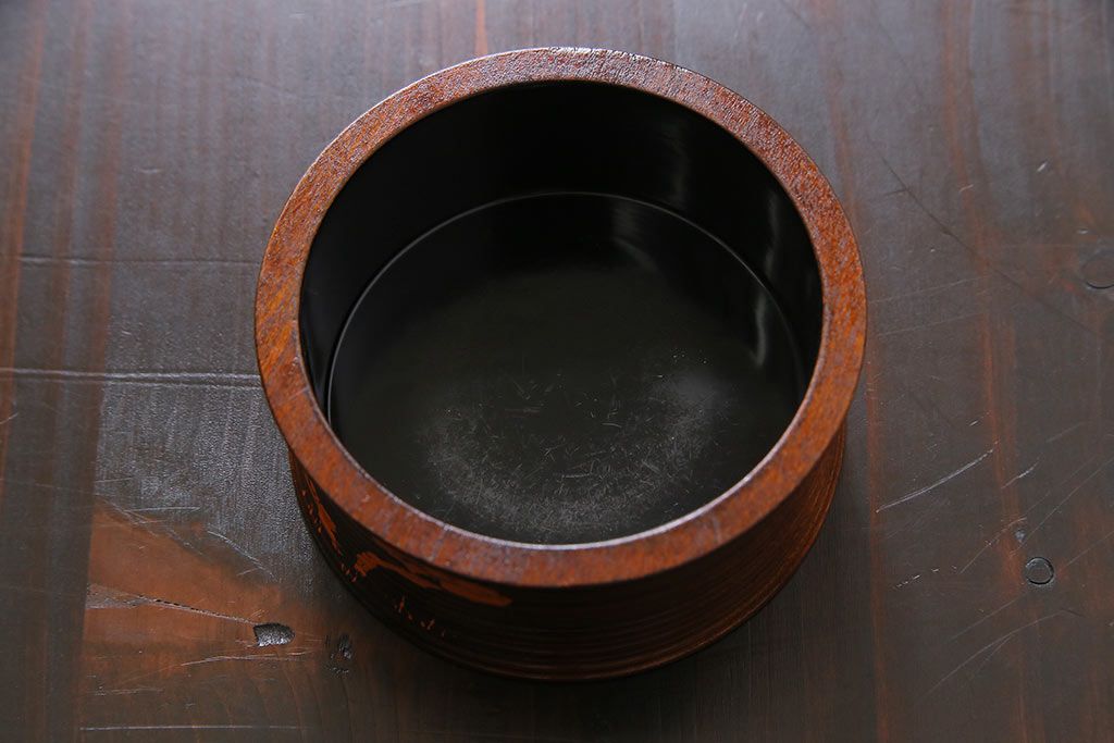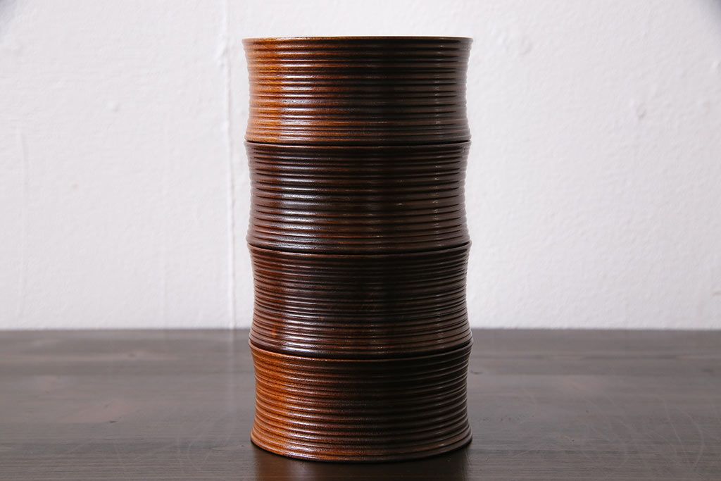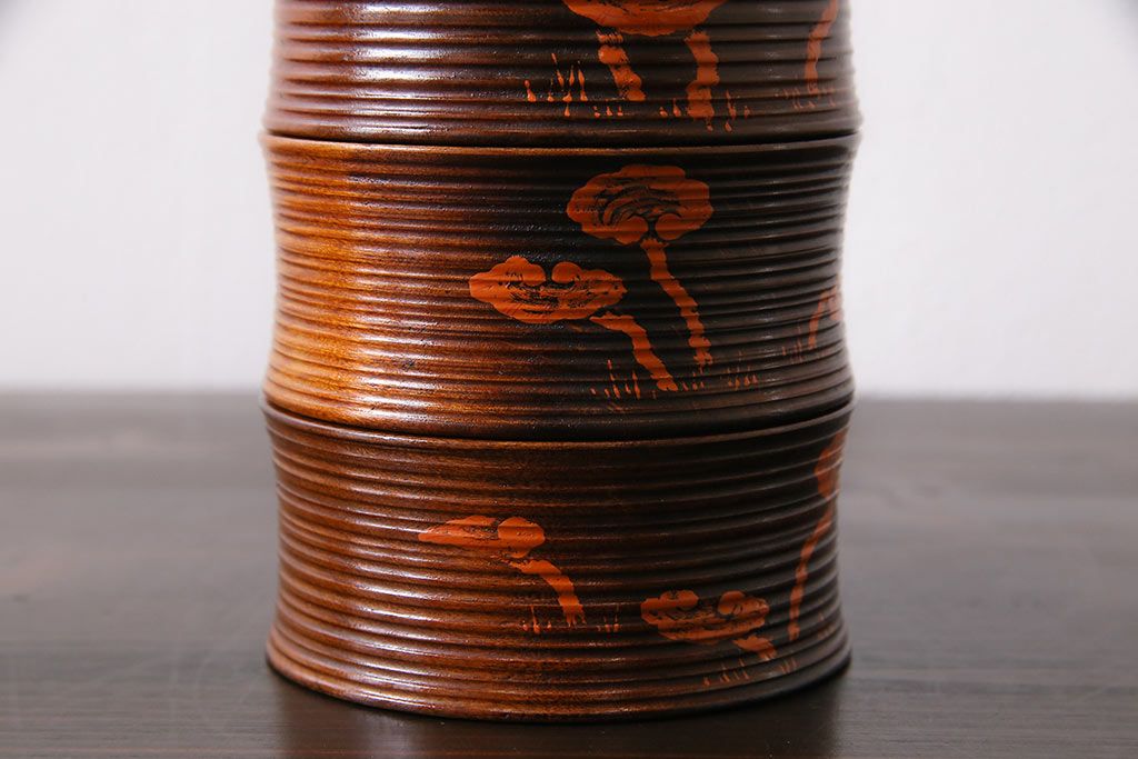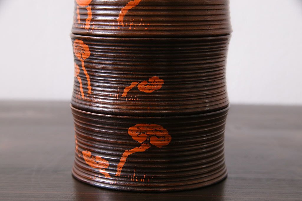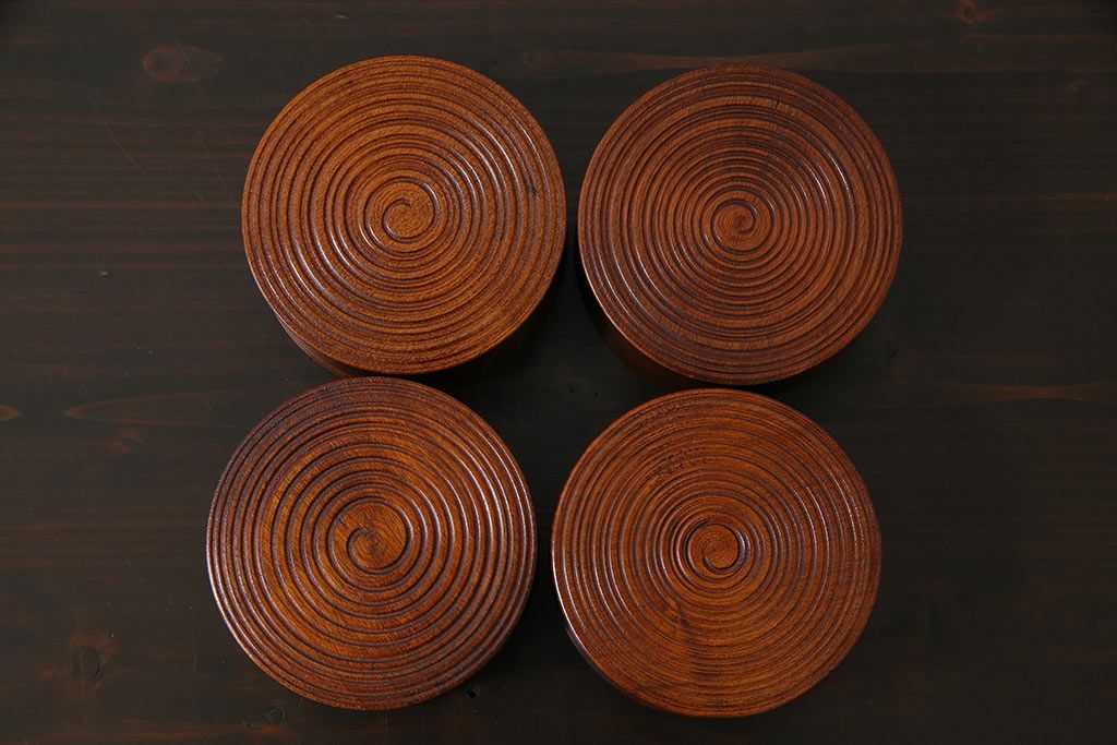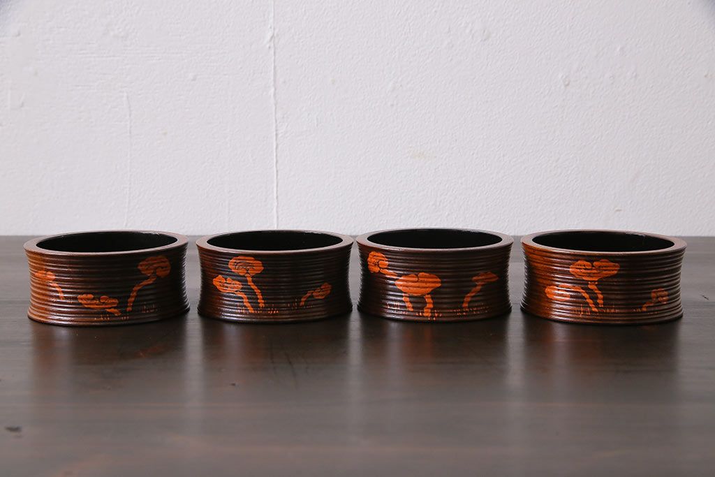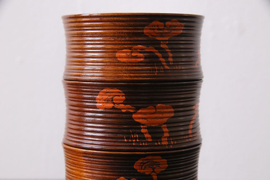 アンティーク雑貨 大正昭和初期 木製漆器 竹をモチーフにした徳利袴4客セット(小物入れ)